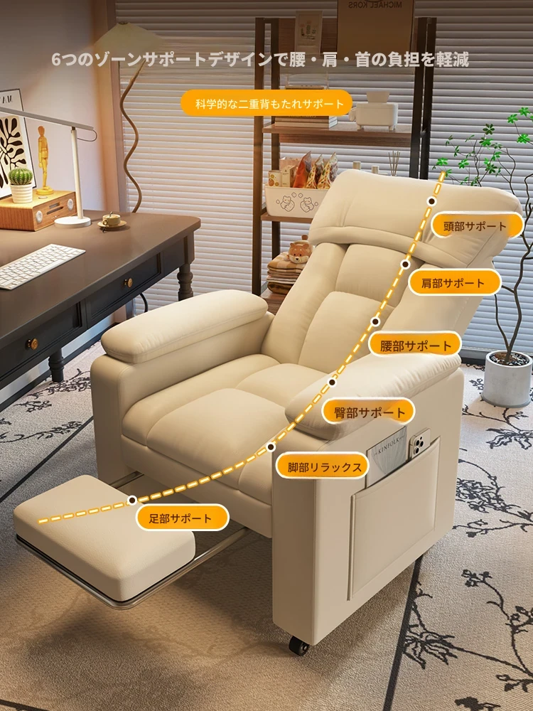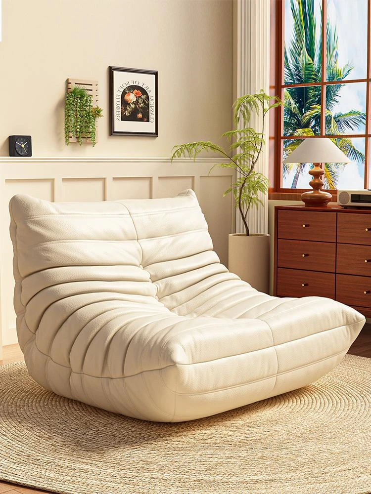 リラックスできる!多機能ラウンジソファ - 寝転んでも、くつろいでもOK!人気のドーパミンビーンバッグ、和室にもぴったりなクリーム風の一人用ソファ。快適なひとときをお楽しみください!