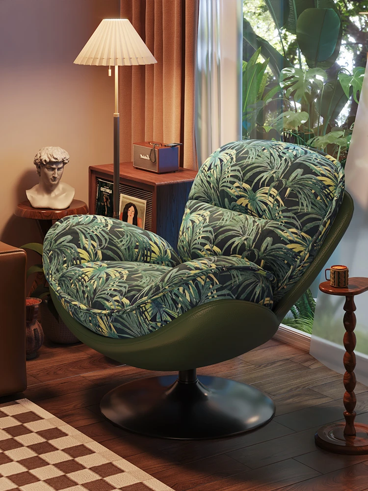 レトロな一人用ソファチェア - バルコニーやリビングに最適なリラックス回転椅子!小型スペースにもフィットする花びら型デザインの怠け者ソファ。居心地抜群で、おしゃれなインテリアにぴったり!