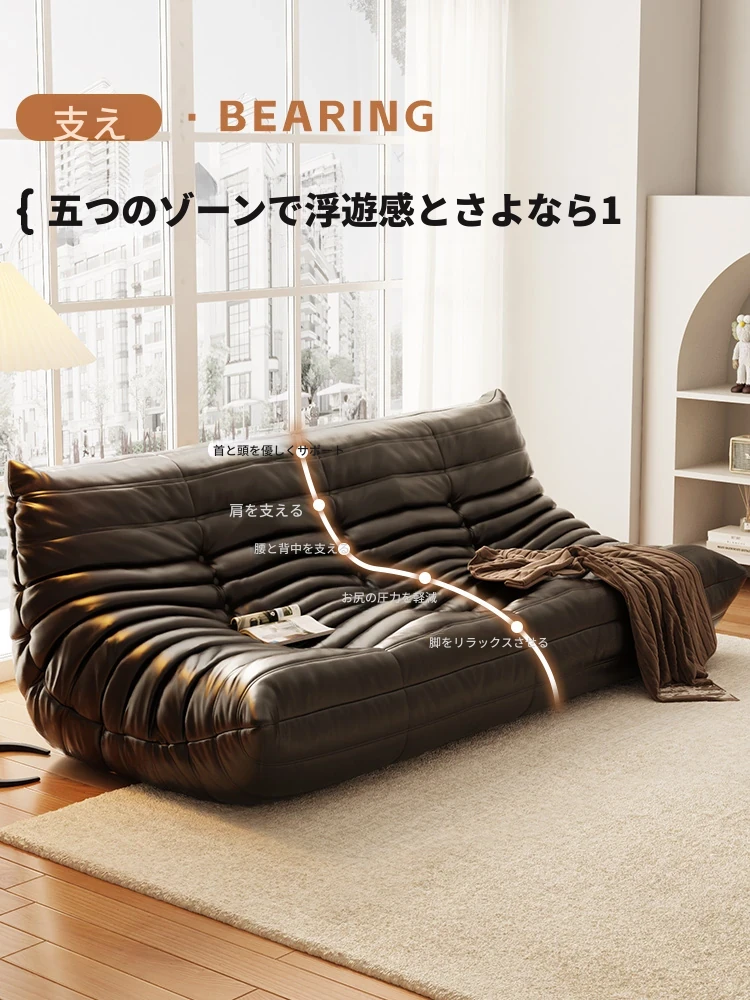 リラックスソファ:寝転んでくつろげる!毛虫デザインの一人用ソファ。寝室やバルコニーにぴったりの豆袋チェアで、タタミスタイルでも使える快適なひとときをお楽しみください。