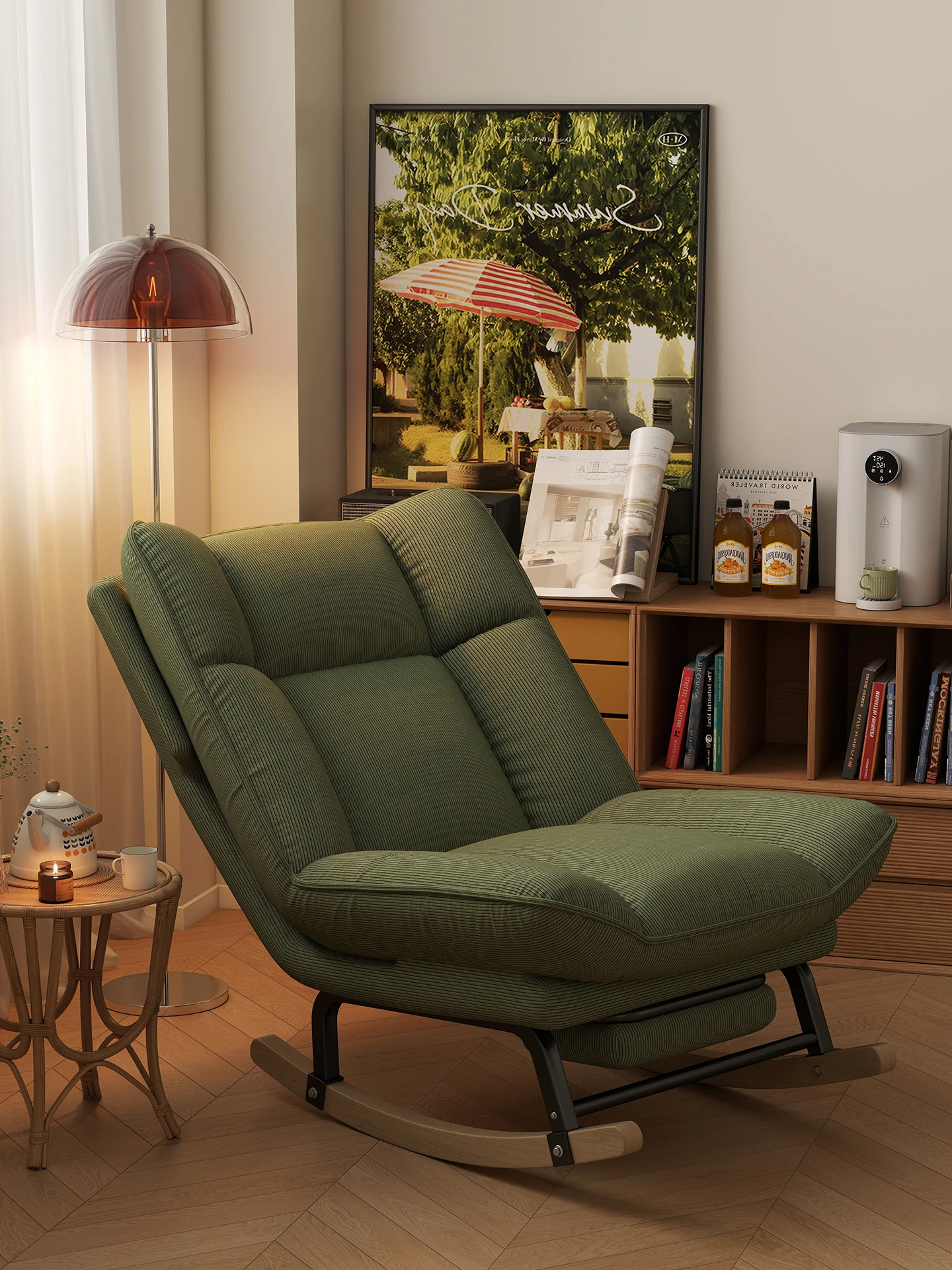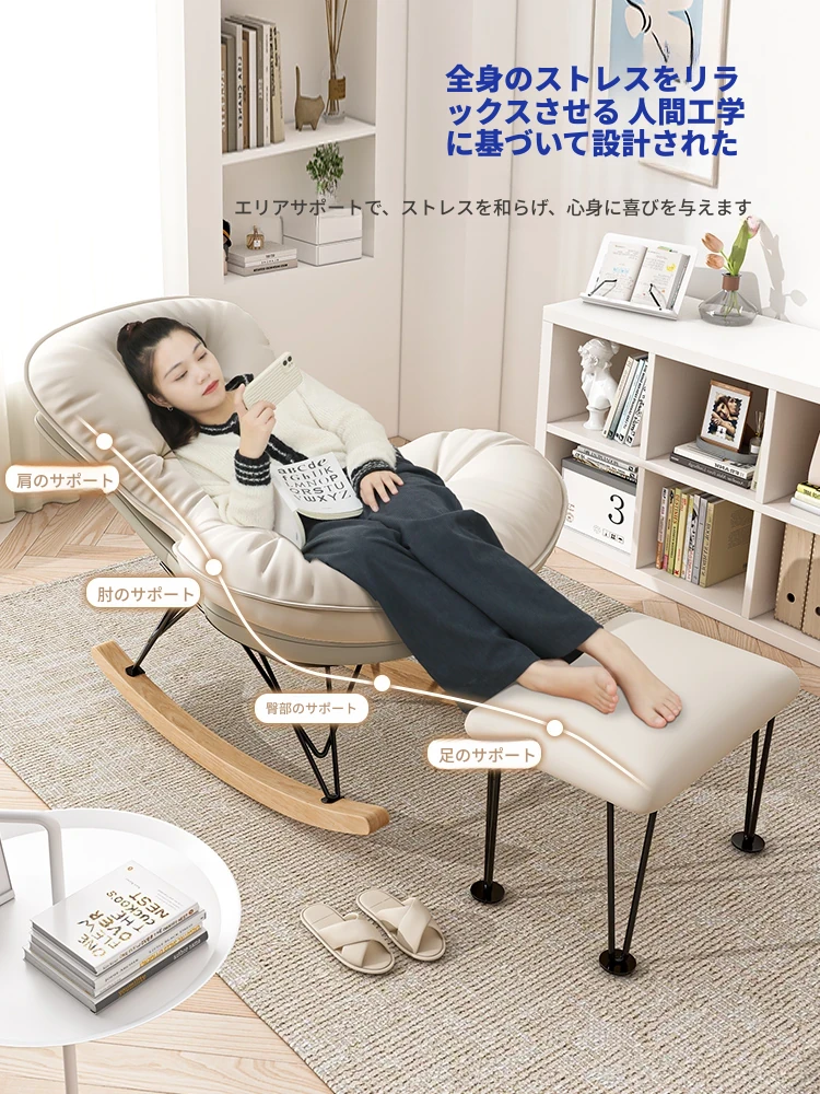 2024年新款!一人用ロッキングチェア、リラックスできるソファ。大人も寝られる快適なデザイン。バルコニーやリビングに最適な、怠け者のためのリラックスチェア!