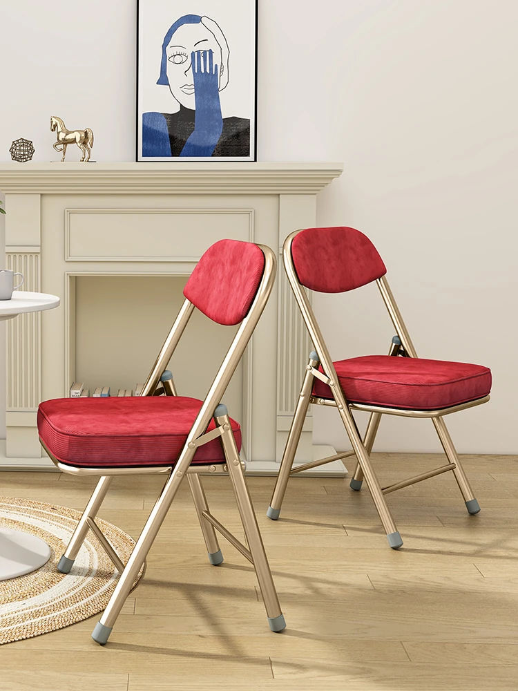 レトロな折りたたみ椅子|家庭用コーデュロイバックレスト|インスタ映えするノスタルジックなデザイン|デスクワークや会議にも最適なオシャレな椅子!