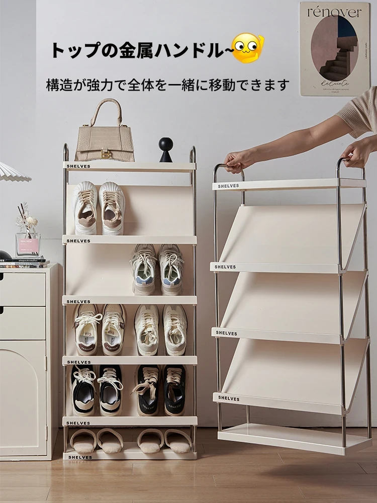 新型玄関用シューズラック!多段式コンパクトシューズキャビネット、簡易家庭用靴収納アイテム。省スペースで角にもピッタリ、整理整頓が簡単に!
