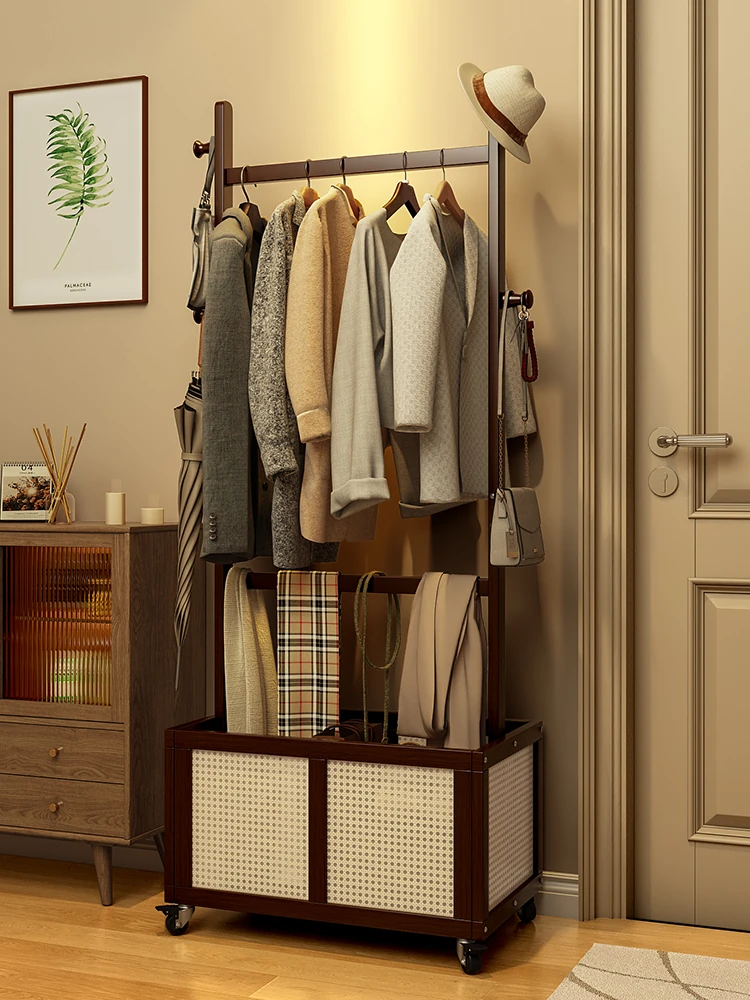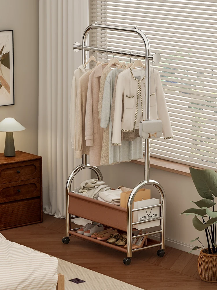軽やかで上品なヴィンテージスタイルの移動可能な衣類ハンガー - キャスター付きでベッドサイドにもぴったり!おしゃれなシンプルデザインで、あなたの寝室を素敵に演出します。