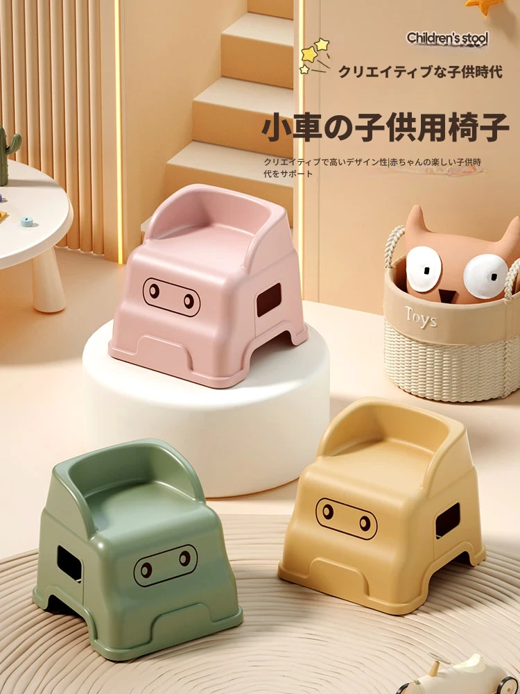 プラスチック製キッズチェア - おしゃれで安全な子供用スツール!背もたれ付きで快適、玄関やトイレでの靴履きにも最適。滑り止め設計で安心してご使用いただけます。お子様の成長をサポートする一品!