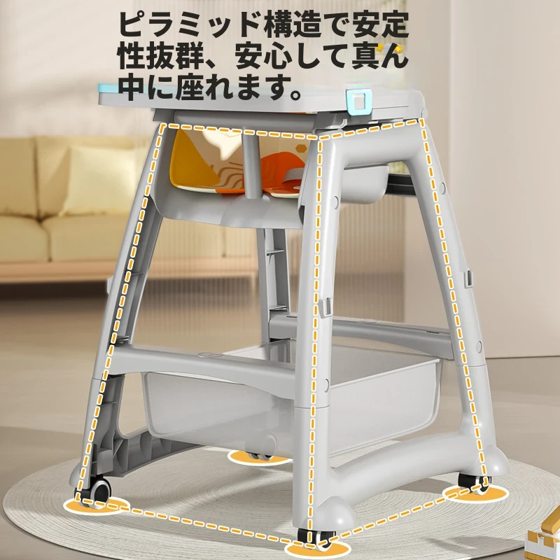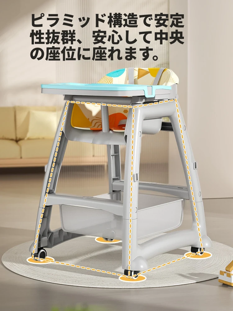 赤ちゃん用多機能ハイチェア|0歳から6歳向け|家庭用|倒れにくい設計|折りたたみ式|子供の成長をサポートする食事用チェア!