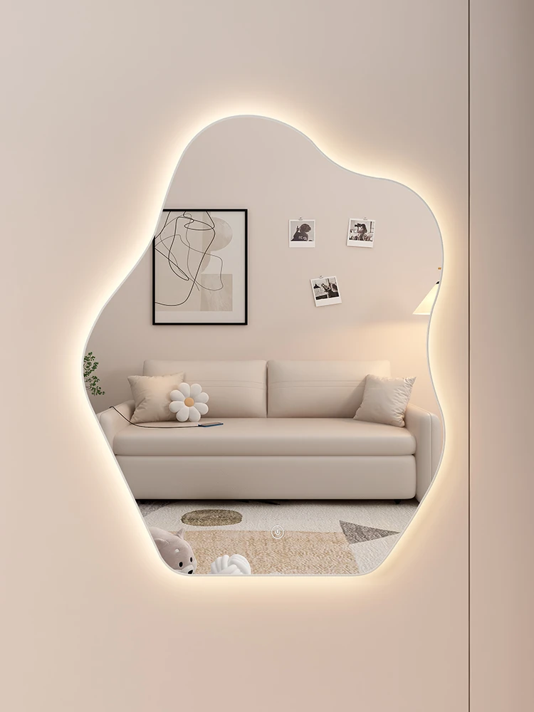 スマート壁掛けクラウドLED化粧鏡 - おしゃれなデザインで、照明付きの異形鏡。お部屋を明るく演出し、毎日のメイクアップを楽しくサポートします。あなたの美しさを引き立てる必需品!