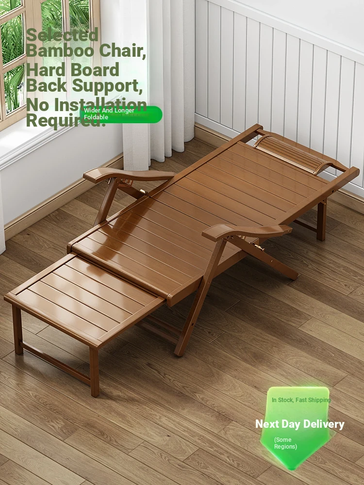 2025 New Folding Nap Bed for Seniors - Sturdy and Reinforced Bamboo Lounge Chair for Home and Balcony, Perfect for Relaxation and Midday Naps