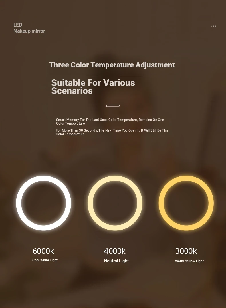 [Most Jimei Choices] Large Screen HD LED Tricolor Lamp Beads-Round Mirror White