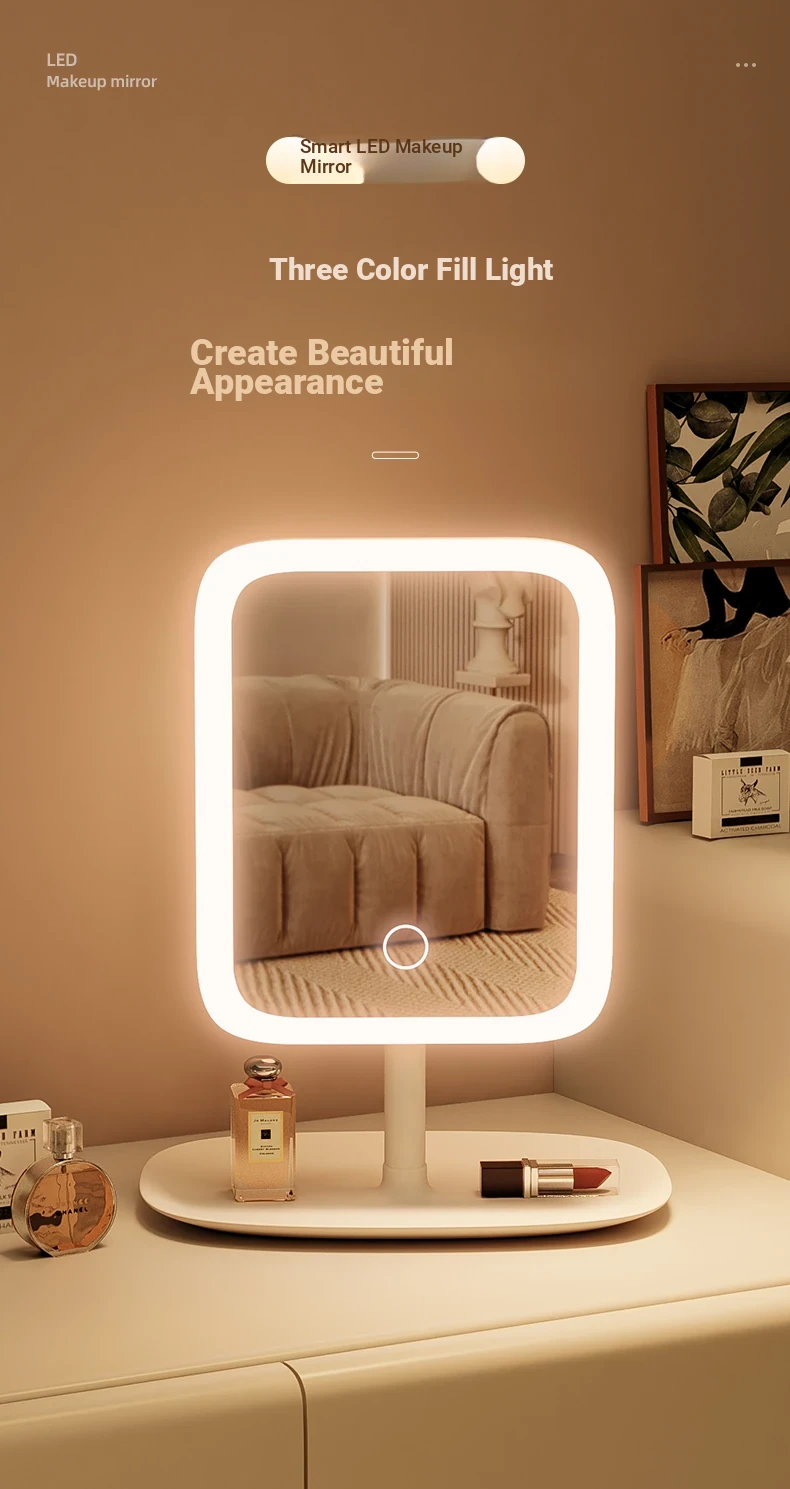2025 New LED Smart Makeup Mirror with Light - Perfect for Bedroom Vanity, Ideal for Students and Dorms, Stylish Desktop Mirror for Effortless Beauty Routine