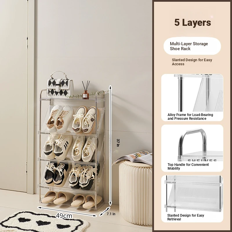 Transparent color -5-layer shoe rack [widening and thickening/saving space behind the door]]