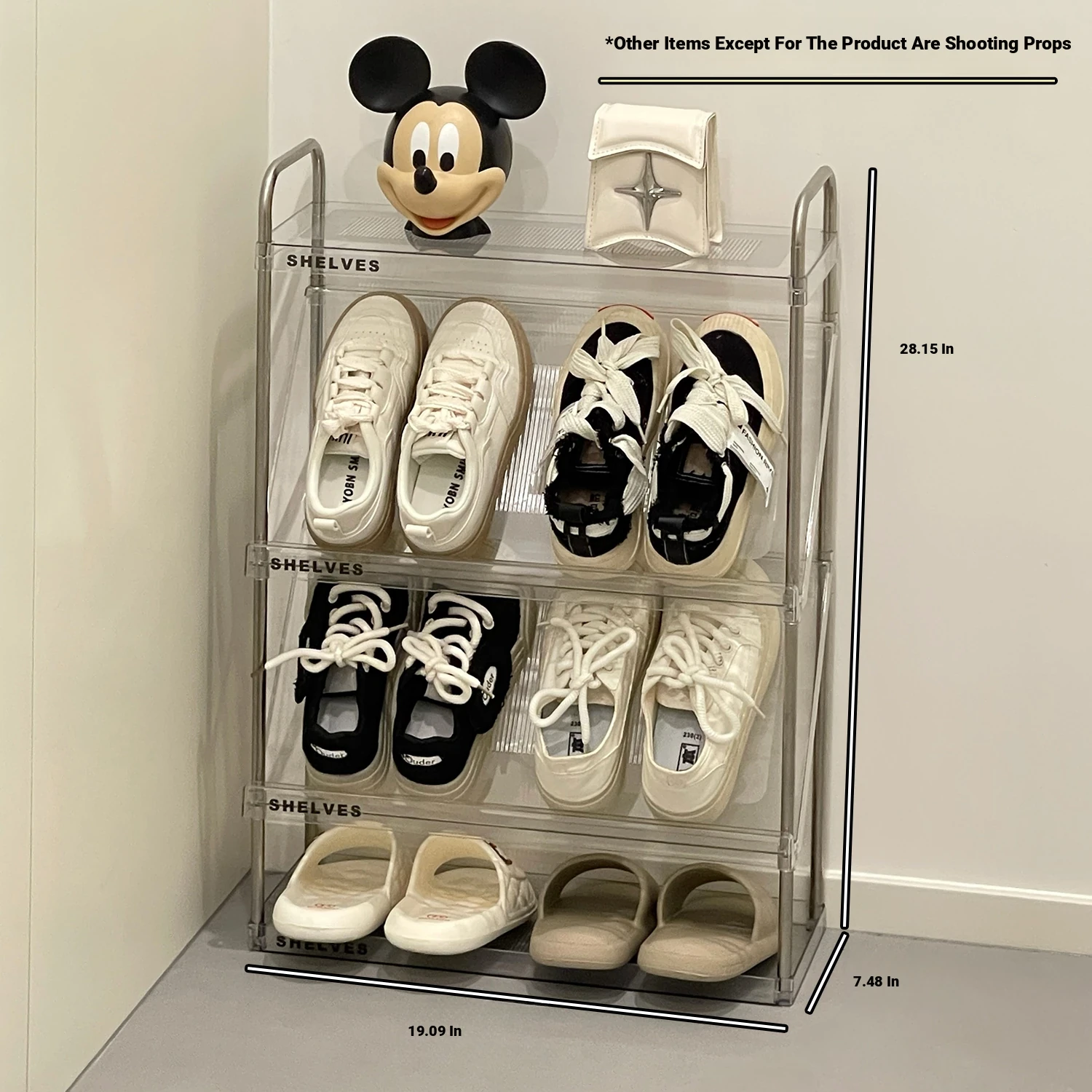 Transparent color -4-layer shoe rack [widening and thickening/saving space behind the door]]