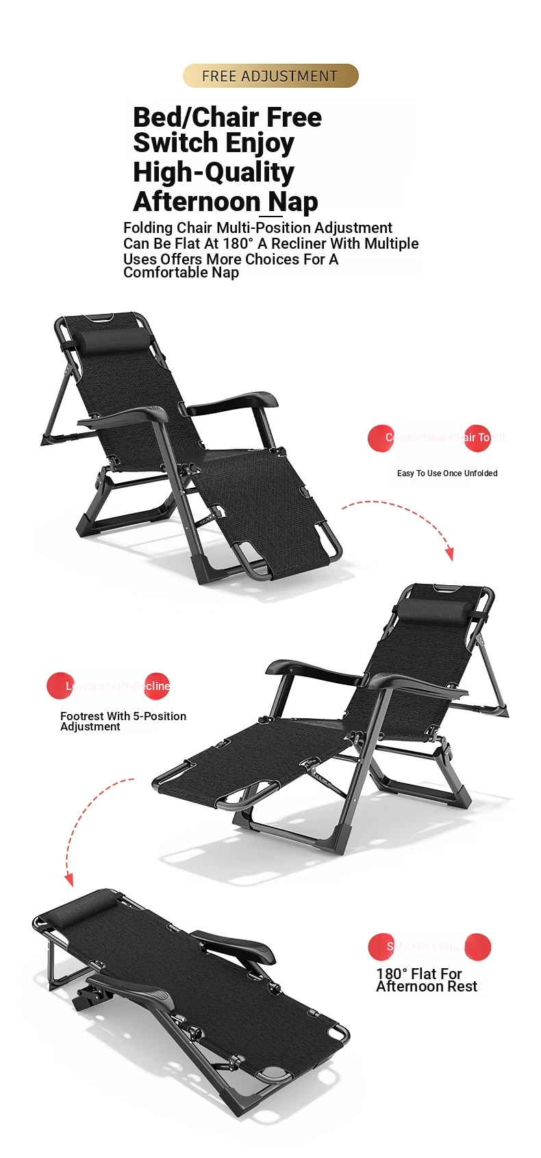 2025 Portable Folding Office Lounge Chair - Perfect for Naps, Beach Days, or Home Relaxation! Versatile Reclining Backrest for Ultimate Comfort - Sit or Lie Down with Ease. Ideal for Lazy Afternoons!