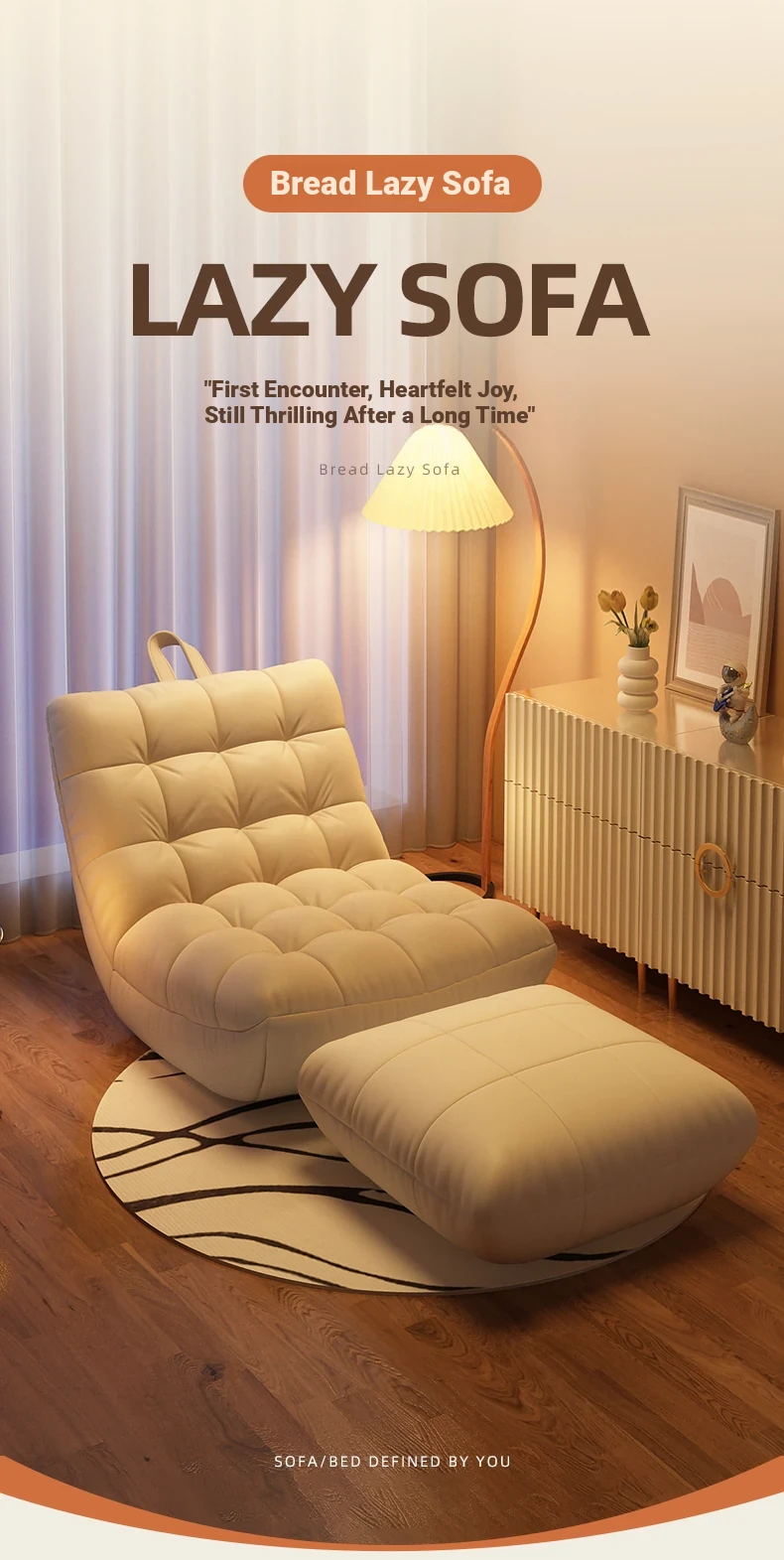 Caterpillar Lazy Sofa - Versatile and Spacious, Perfect for Sleeping and Relaxing. Ideal for Balconies and Small Bedrooms, This Trendy Single Sofa Chair Offers Ultimate Comfort!