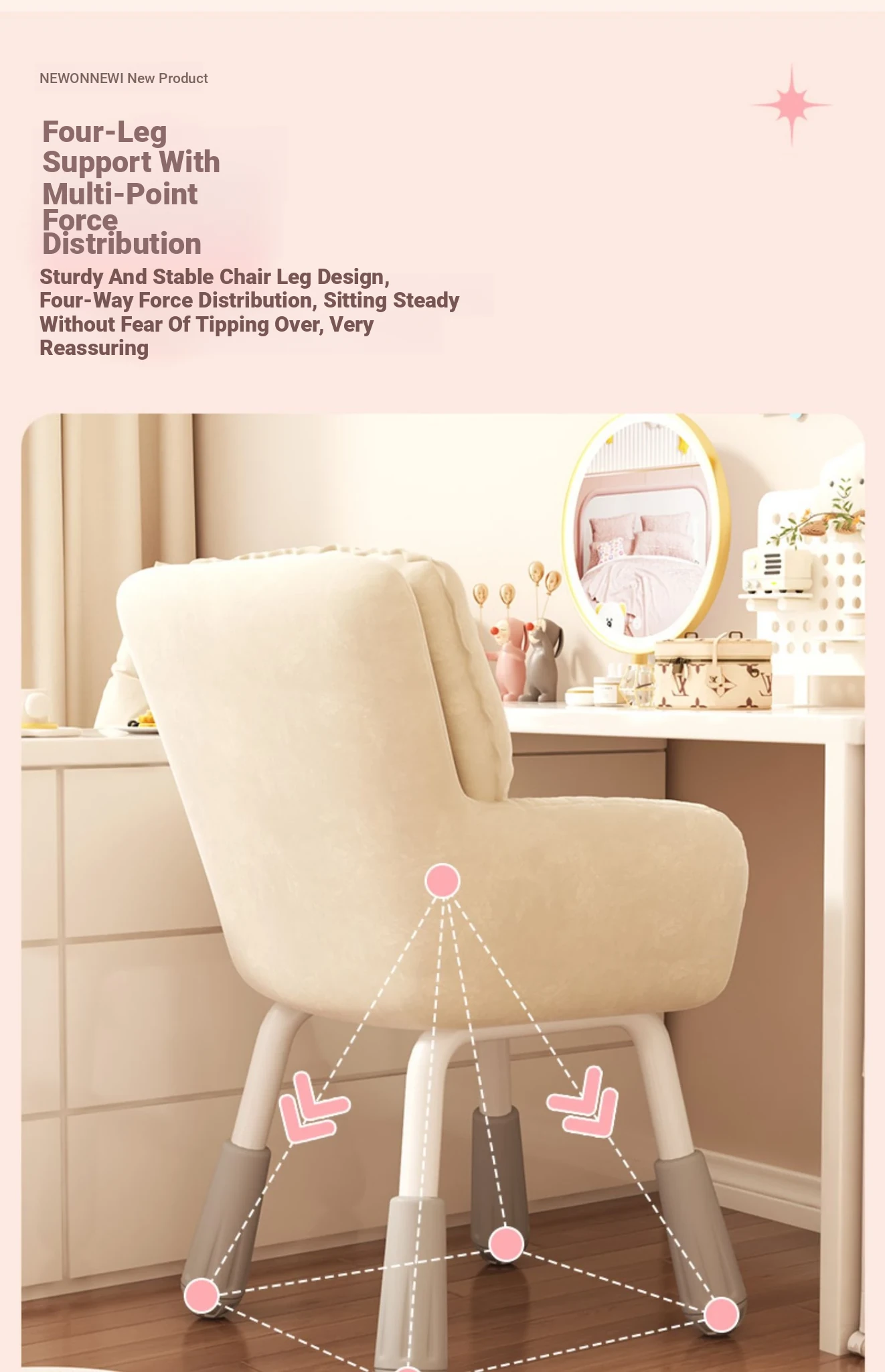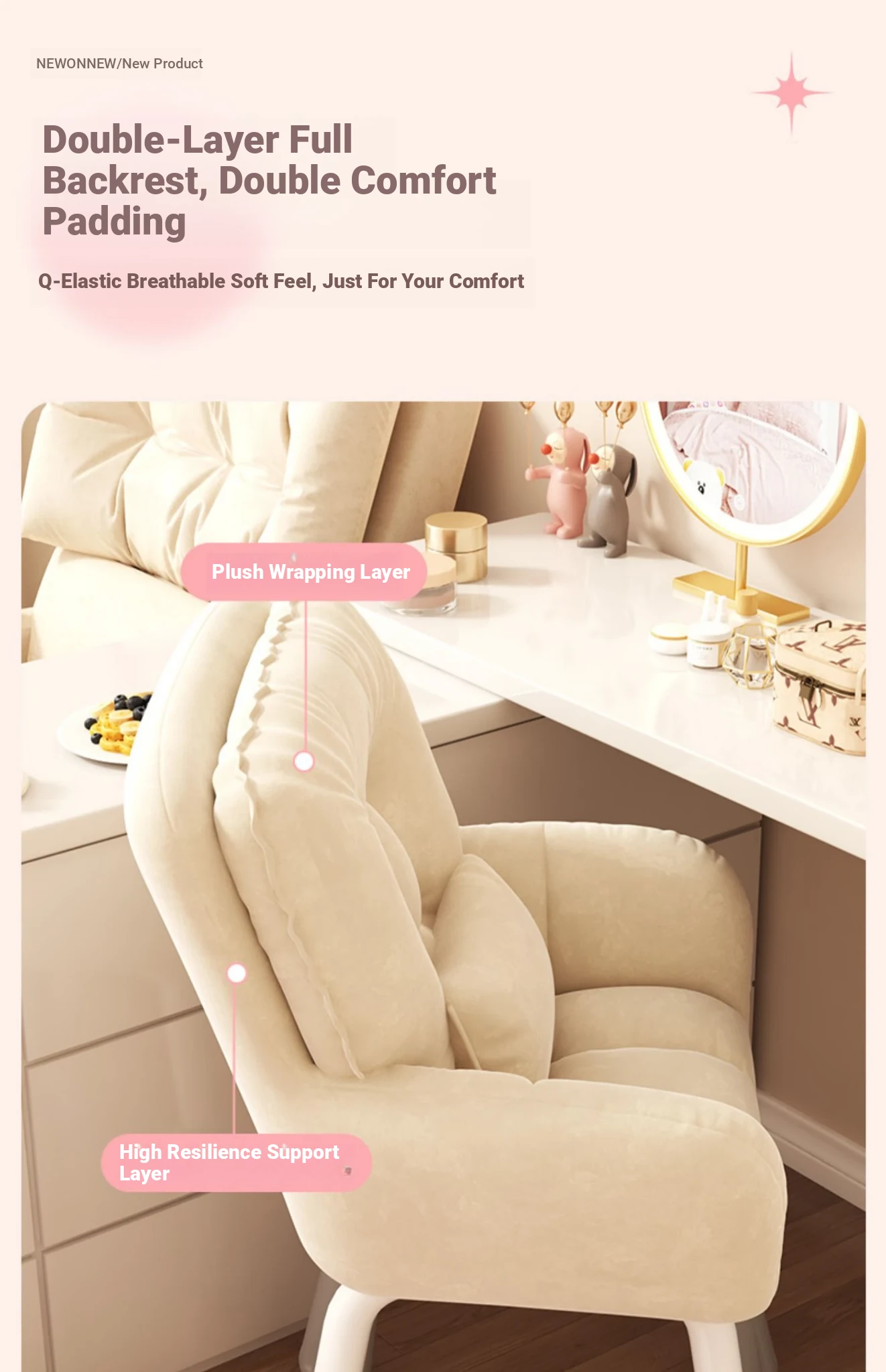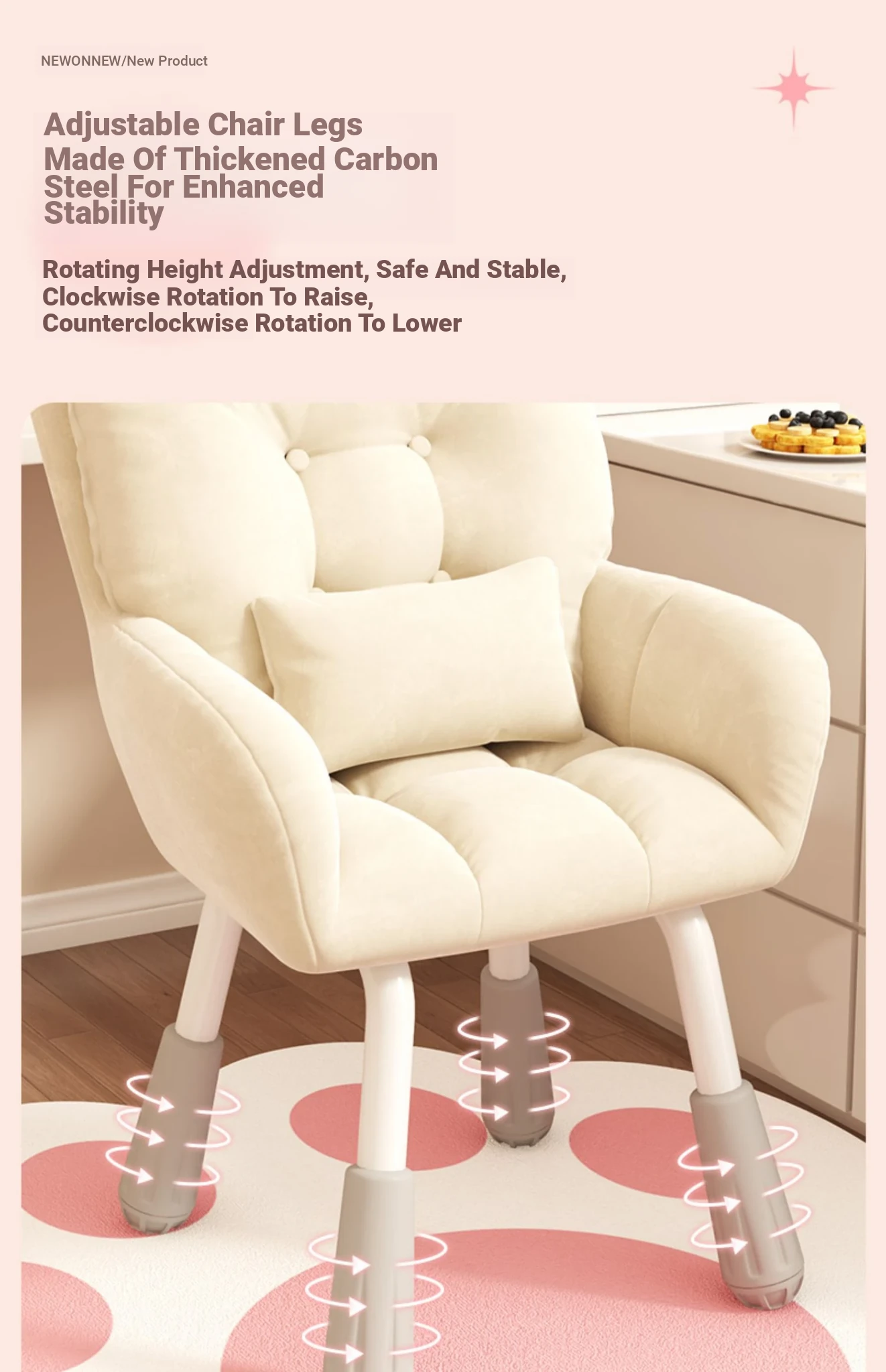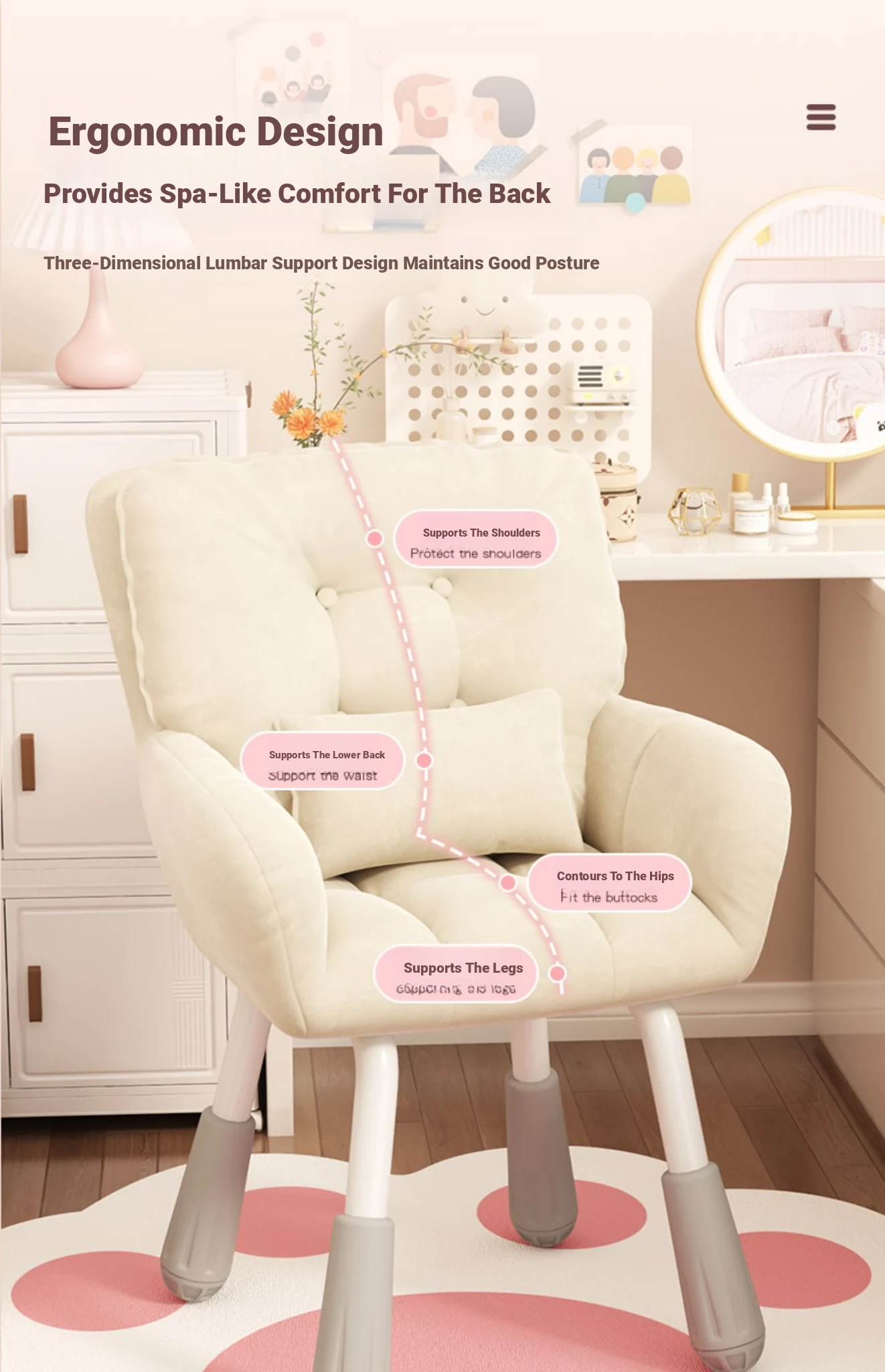 Comfortable Computer Chair for College Students - Ideal for Dorms, Home Use, and Makeup. Ergonomic Backrest Design Perfect for Long Study Sessions and Relaxing in the Bedroom.