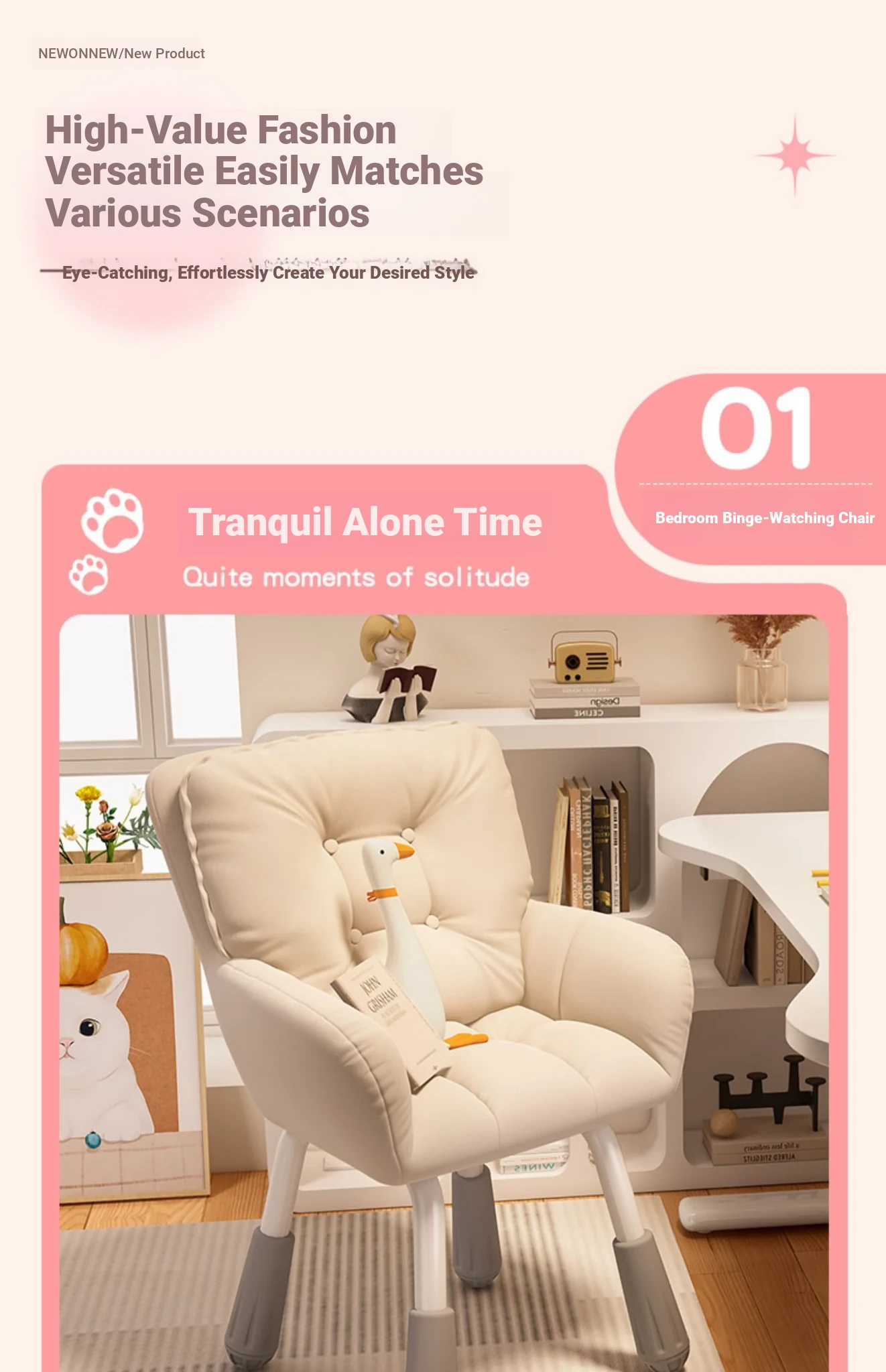 [Double backrest] Rice White + Comfortable flannel-Adjustable leg (send pillow)