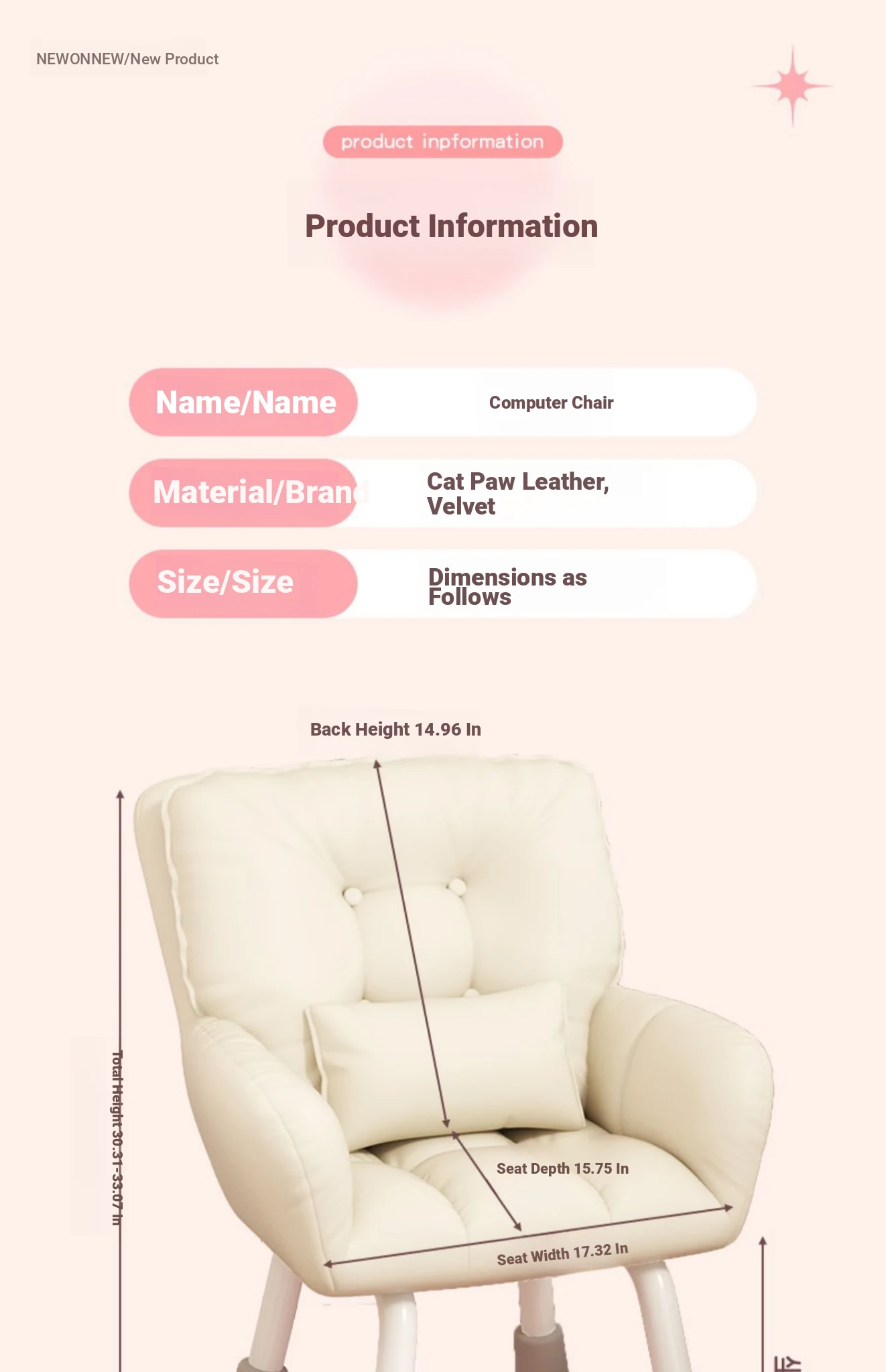 Thick [double backrest] Rice White + Comfortable flannel-Adjustable chair leg (send pillow)