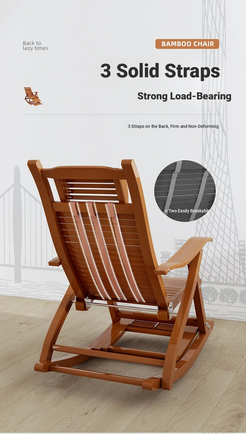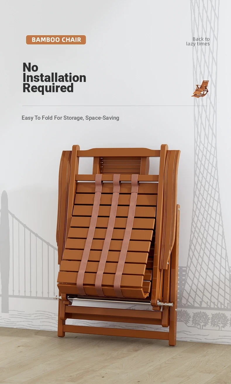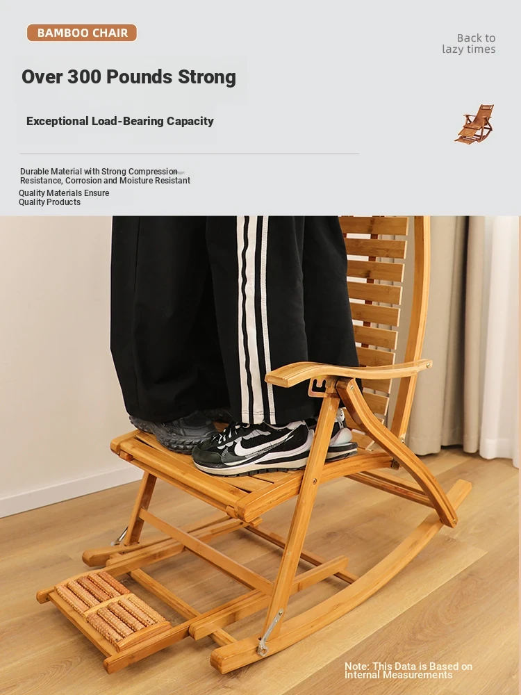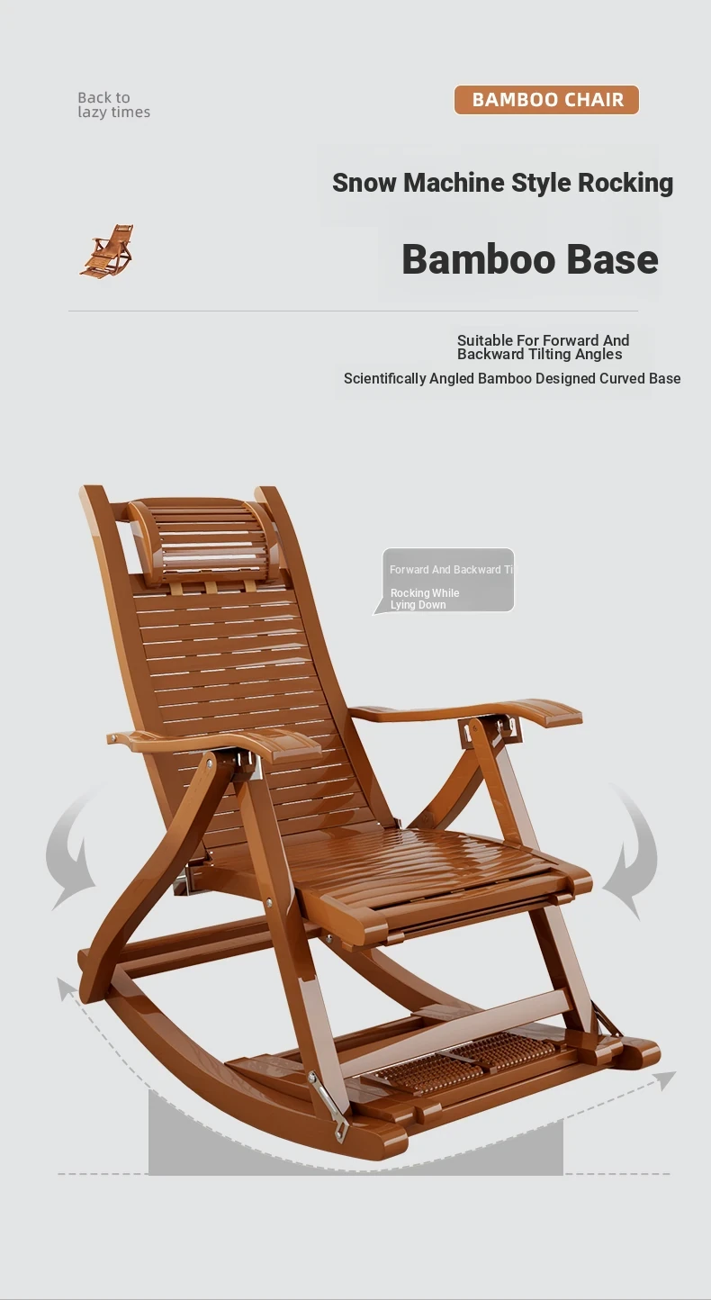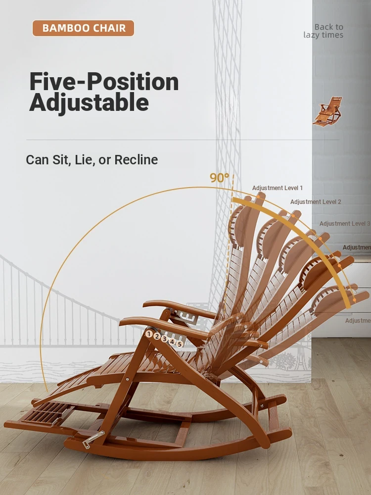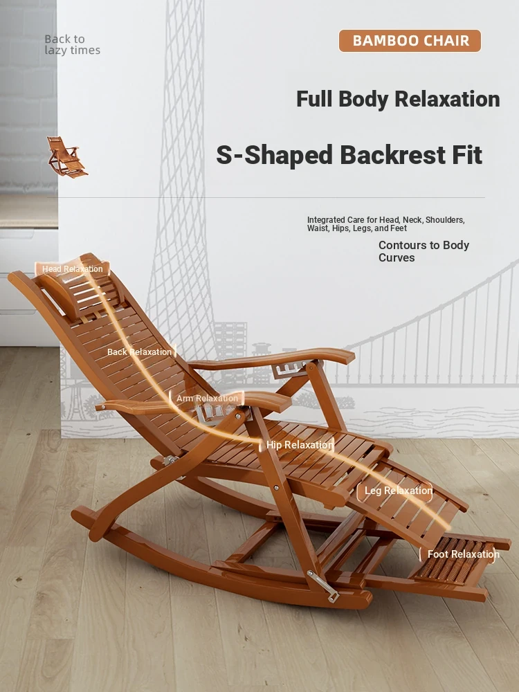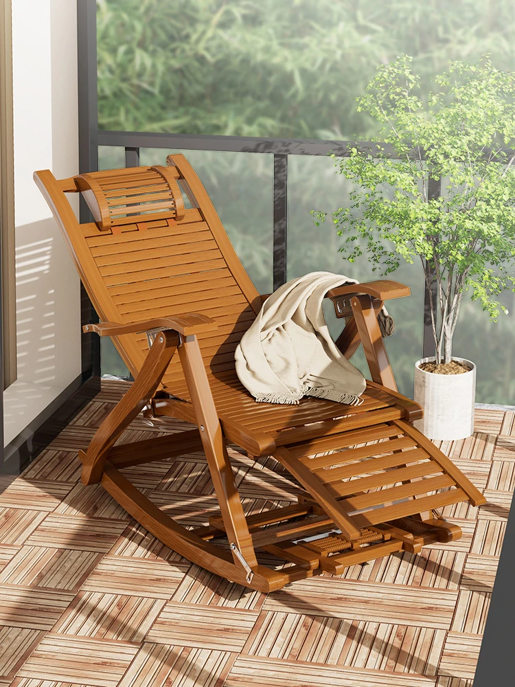 Comfortable Folding Bamboo Rocking Chair for Adults - Perfect for Relaxing, Napping, and Lounging at Home or on the Balcony - Versatile Design for Sitting or Lying Down