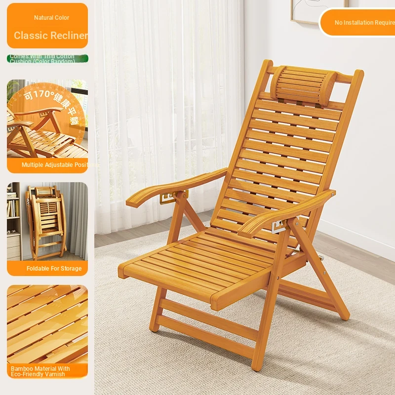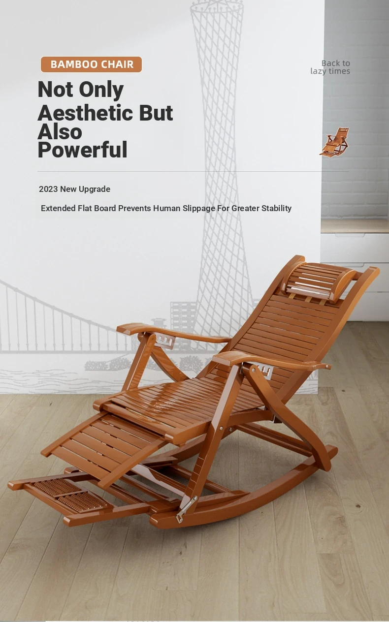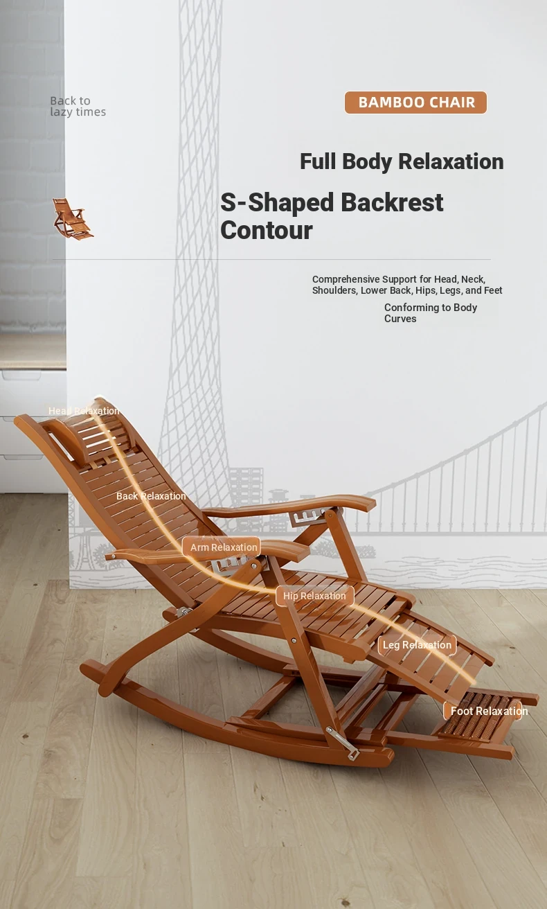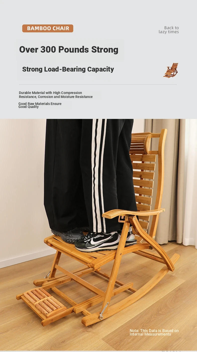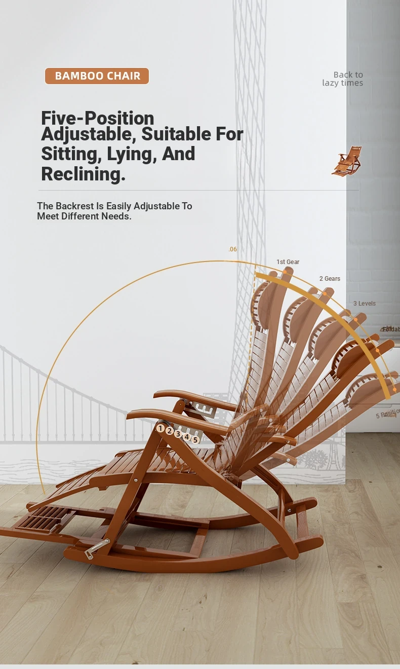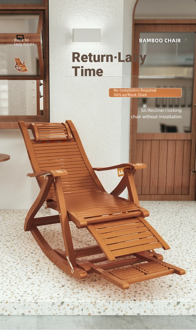 Comfortable Folding Bamboo Rocking Chair for Adults - Perfect for Relaxing, Napping, and Lounging at Home or on the Balcony - Versatile Design for Sitting or Lying Down