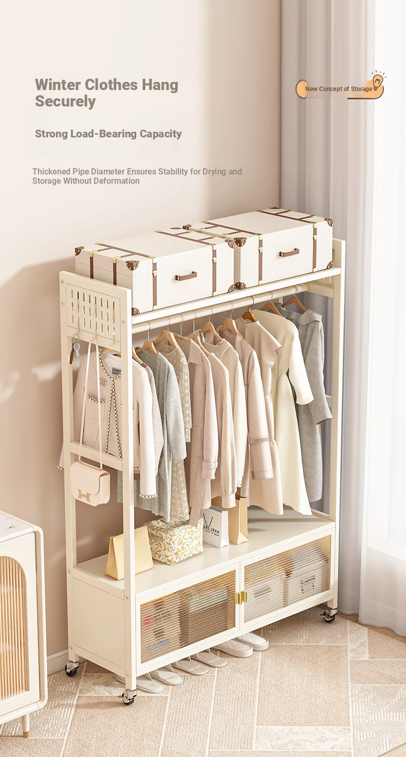 Creamy Hole-Style Coat Rack - Stylish Iron Storage Solution for Girls' Bedrooms and Living Rooms - Perfect for Renters and Organizing Clothes - New Arrival!