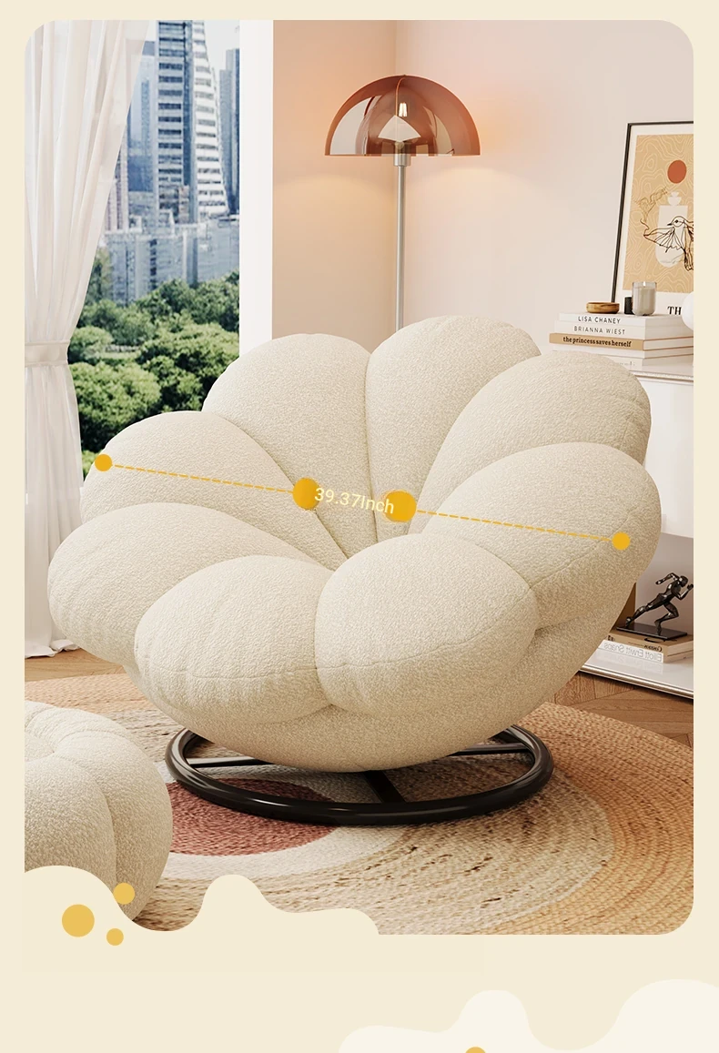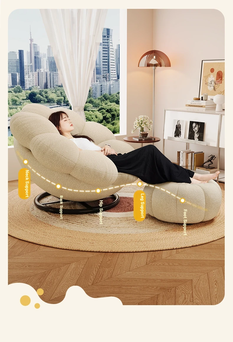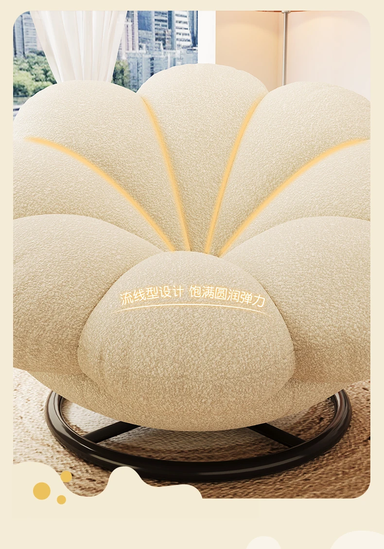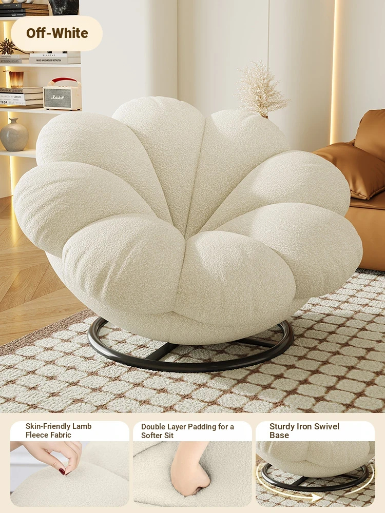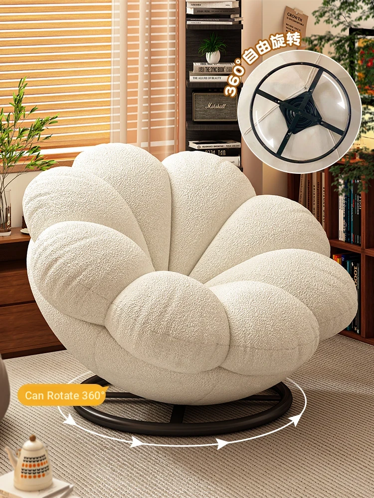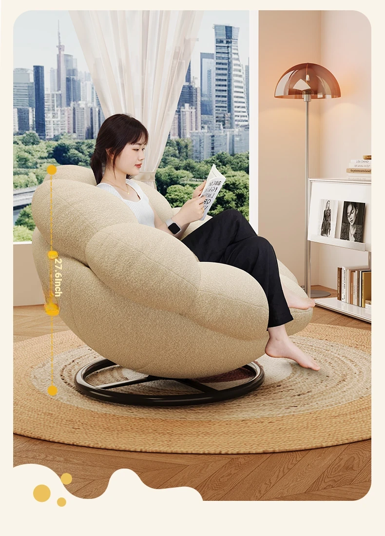 Creamy Lazy Sofa Chair - Versatile and Comfortable for Bedroom, Perfect for Relaxing and Napping. Stylish Rotatable Nook Chair for Balcony and Leisure Spaces. Ideal for Single Users.