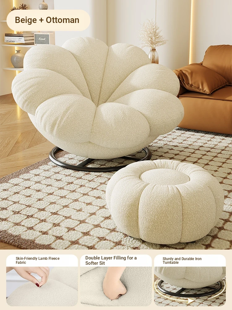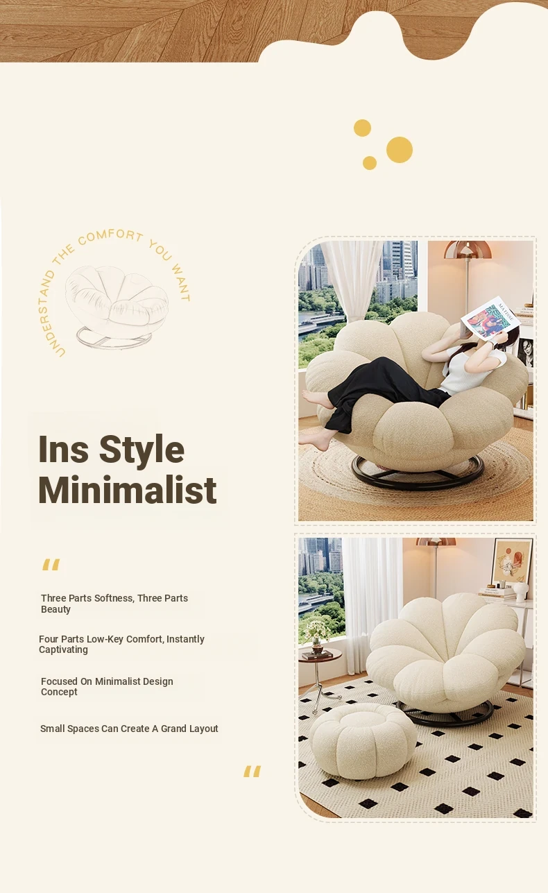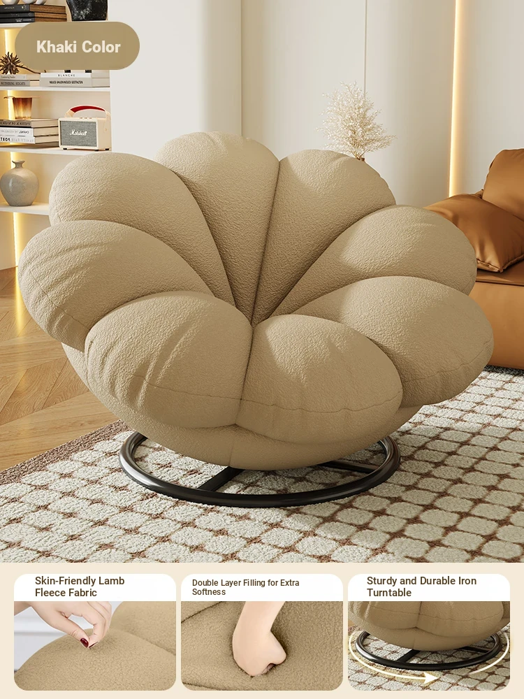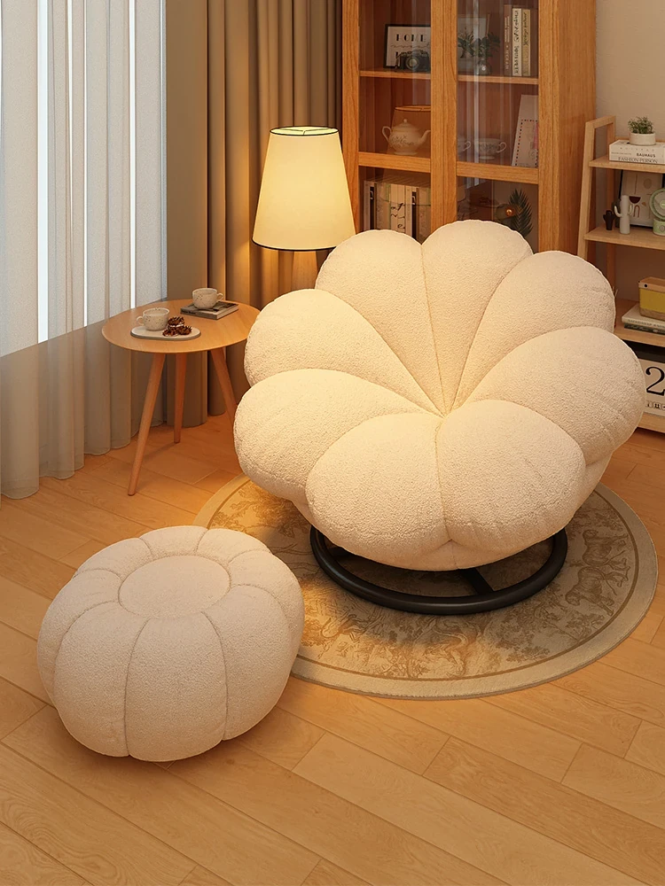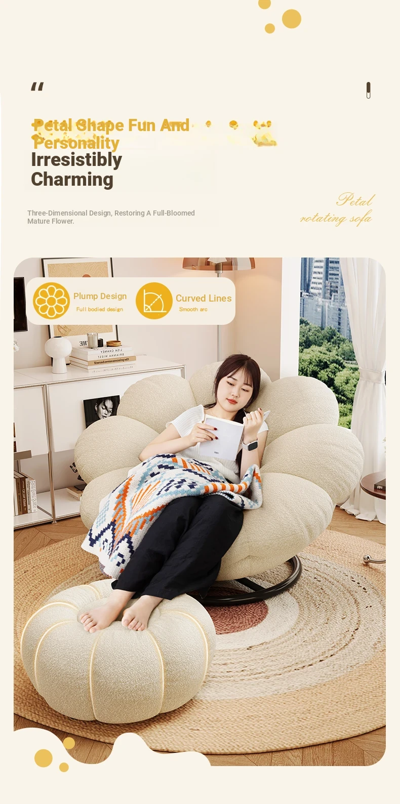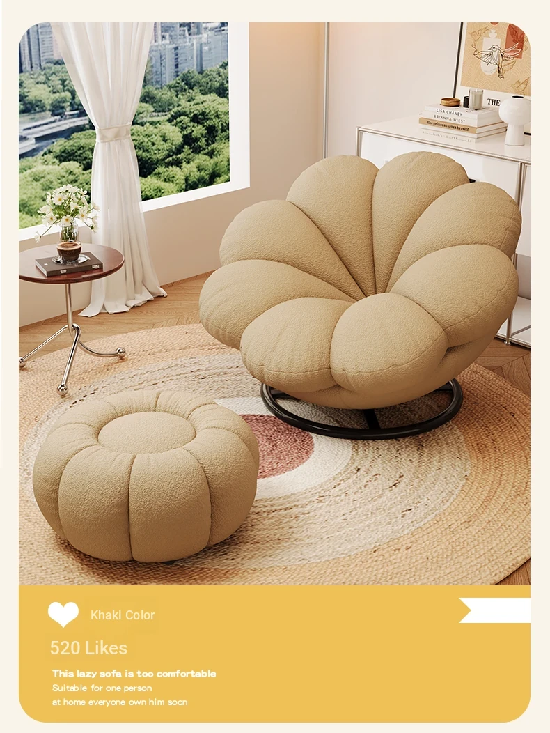 Creamy Lazy Sofa Chair - Versatile and Comfortable for Bedroom, Perfect for Relaxing and Napping. Stylish Rotatable Nook Chair for Balcony and Leisure Spaces. Ideal for Single Users.