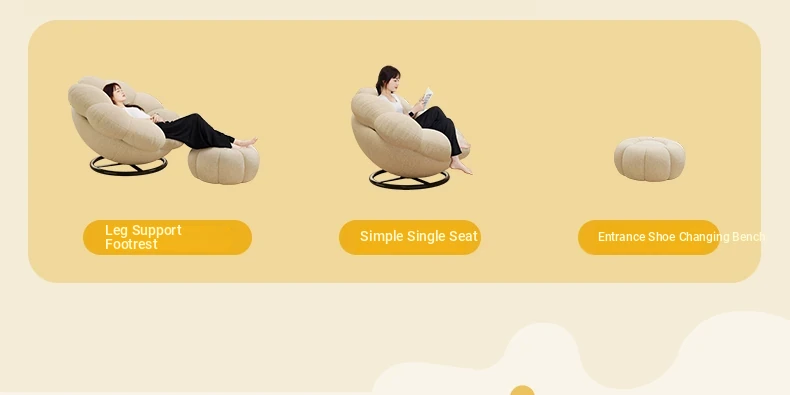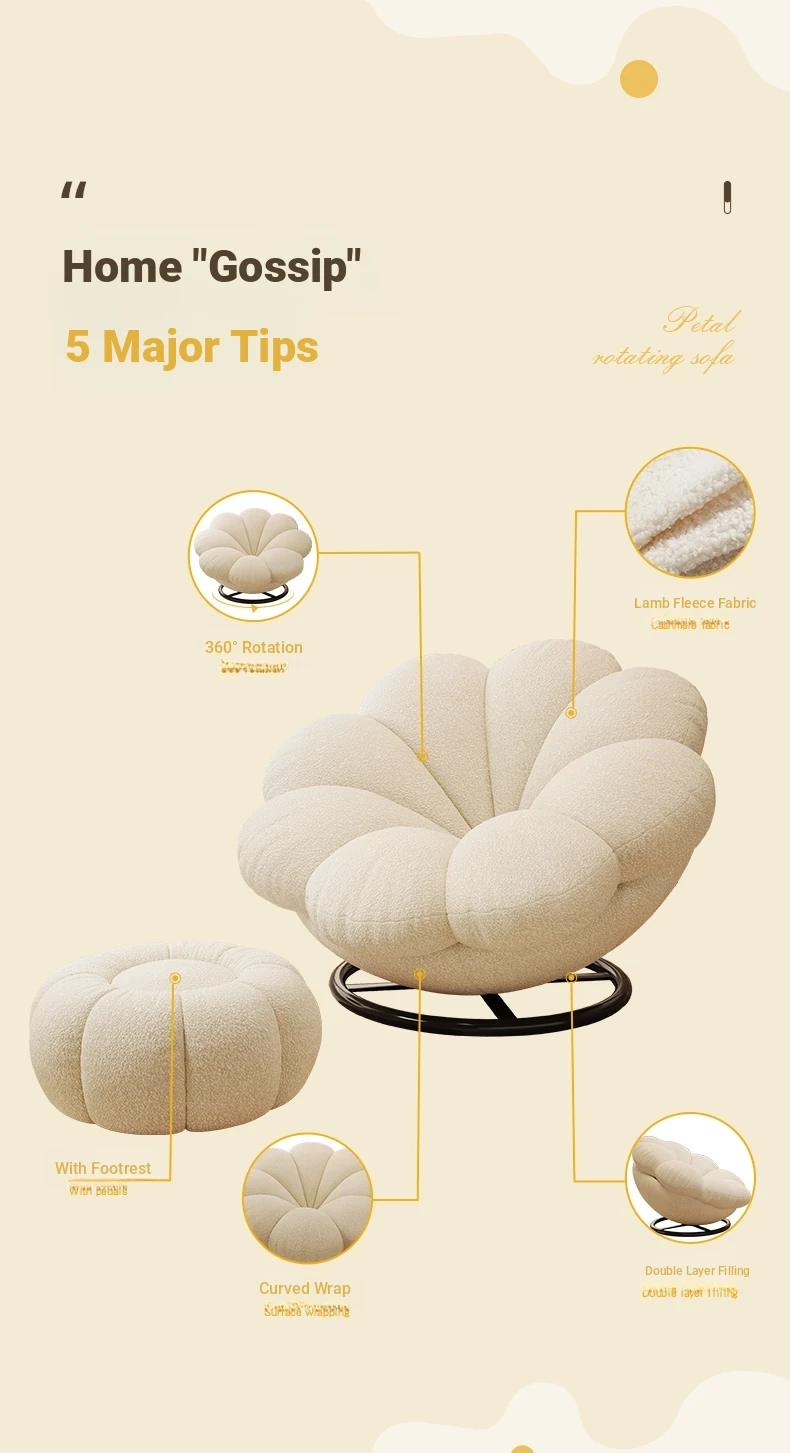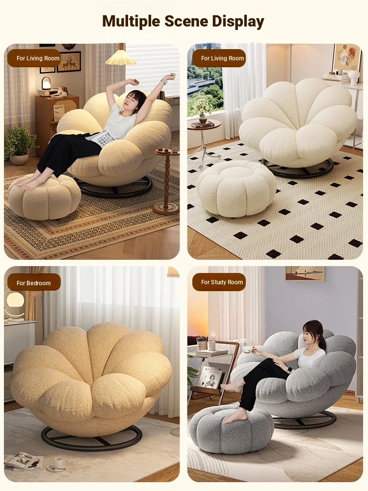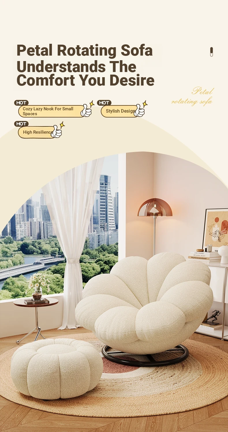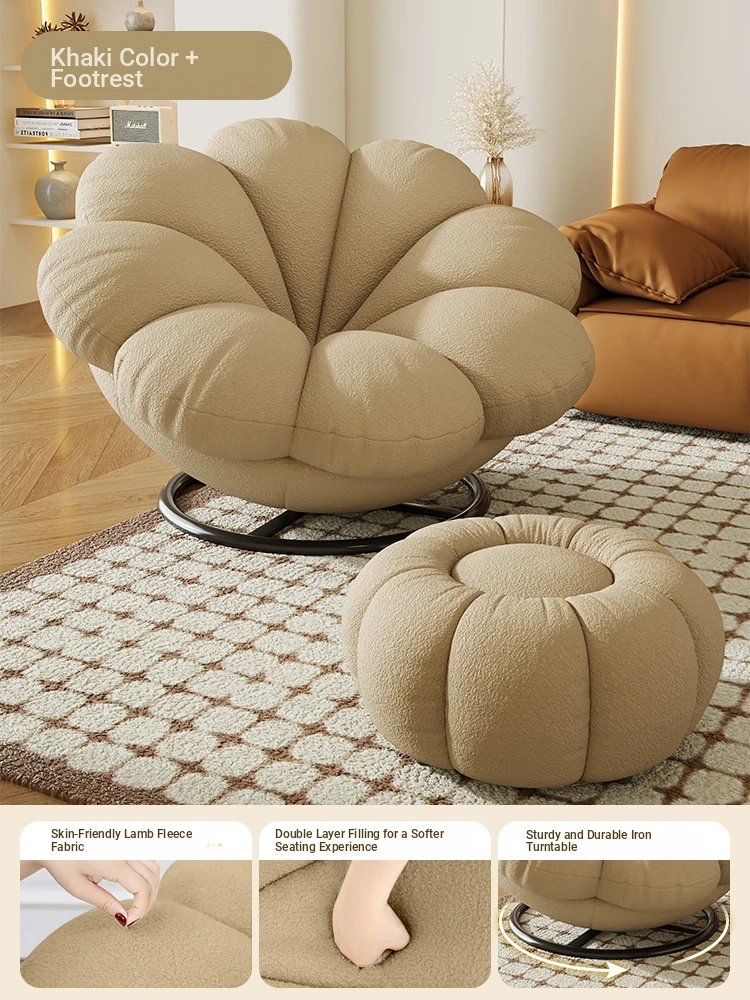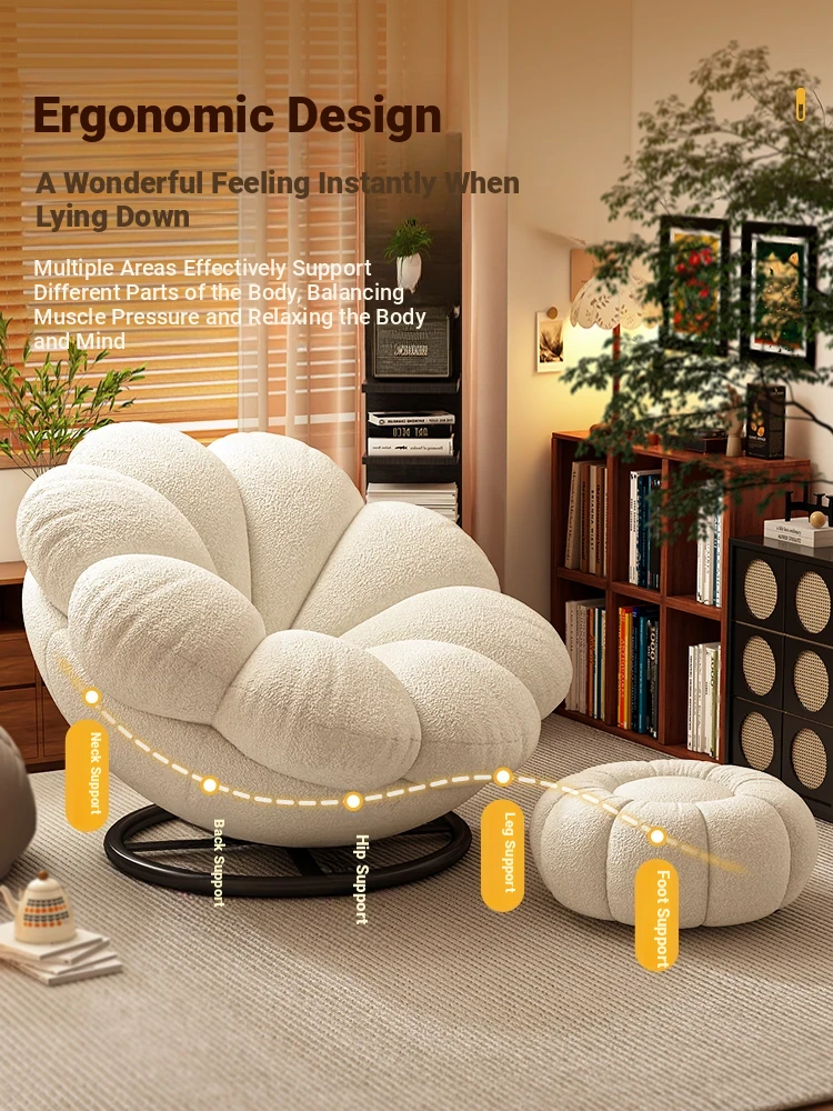 Creamy Lazy Sofa Chair - Versatile and Comfortable for Bedroom, Perfect for Relaxing and Napping. Stylish Rotatable Nook Chair for Balcony and Leisure Spaces. Ideal for Single Users.