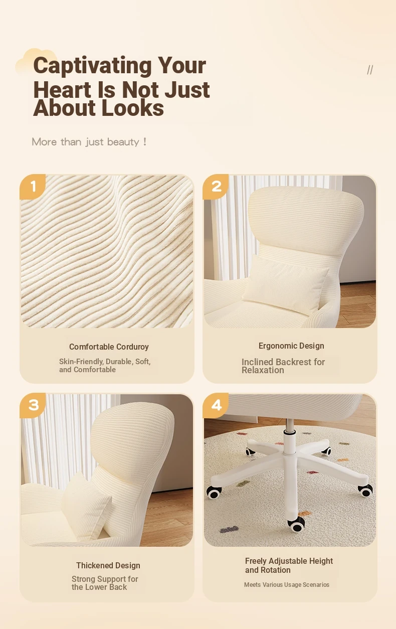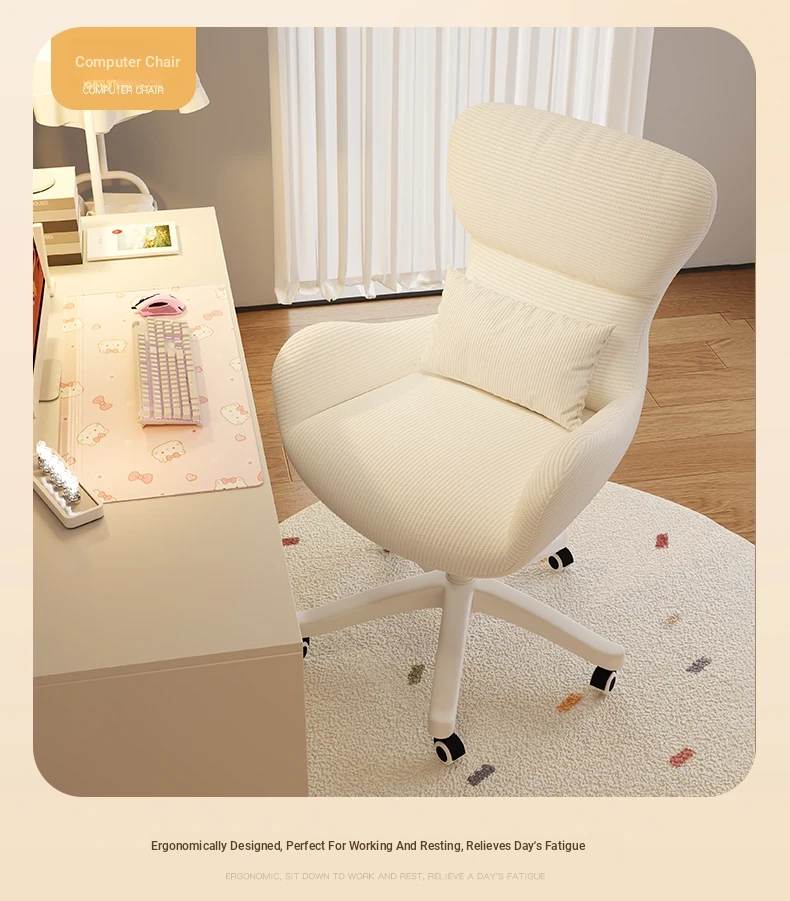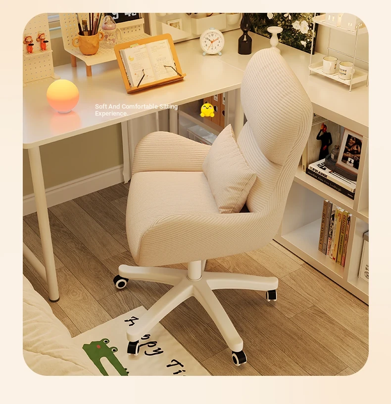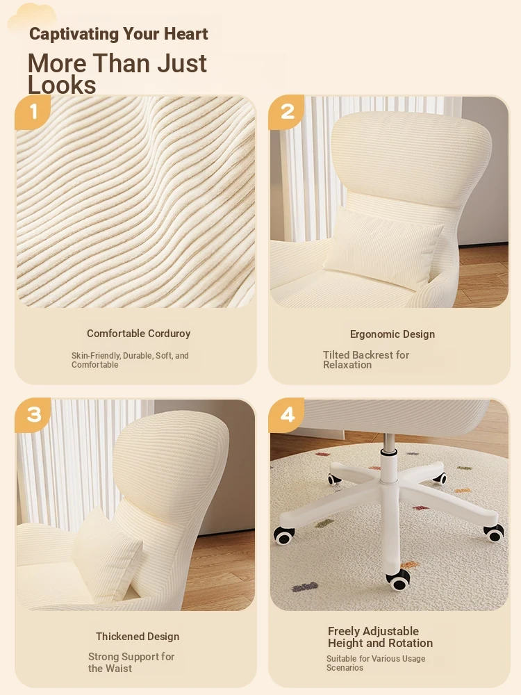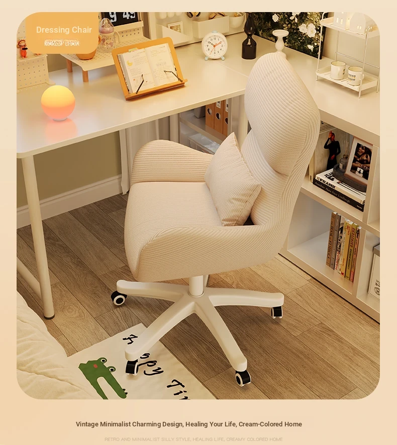 Creamy Makeup Chair for Home - Comfortable and Movable Height Adjustable Chair for Long Sitting, Perfect for Girls' Bedrooms and Dressing Tables, Trendy Backrest Chair