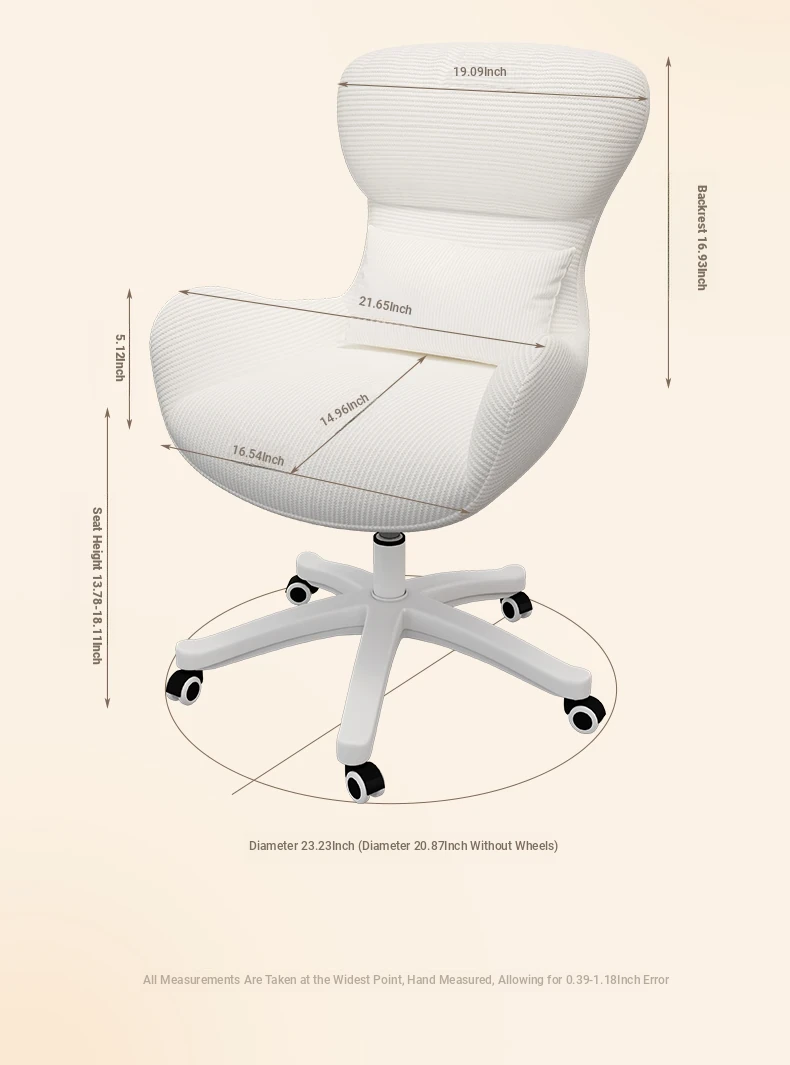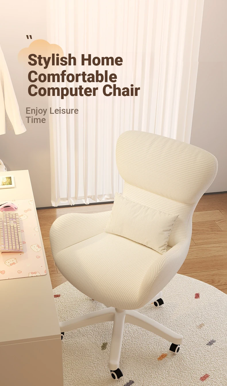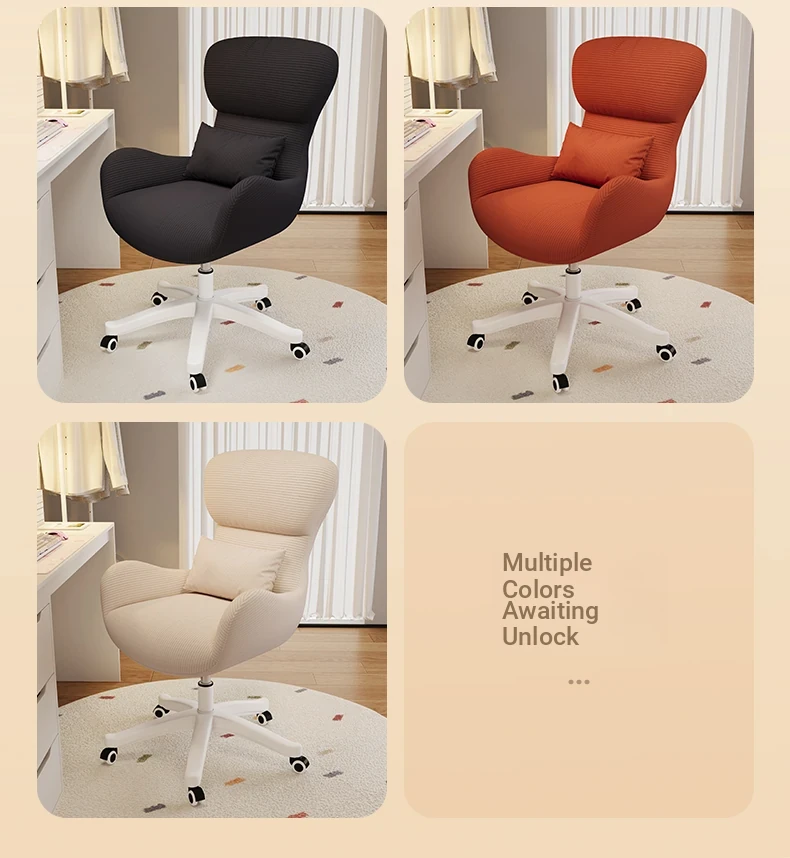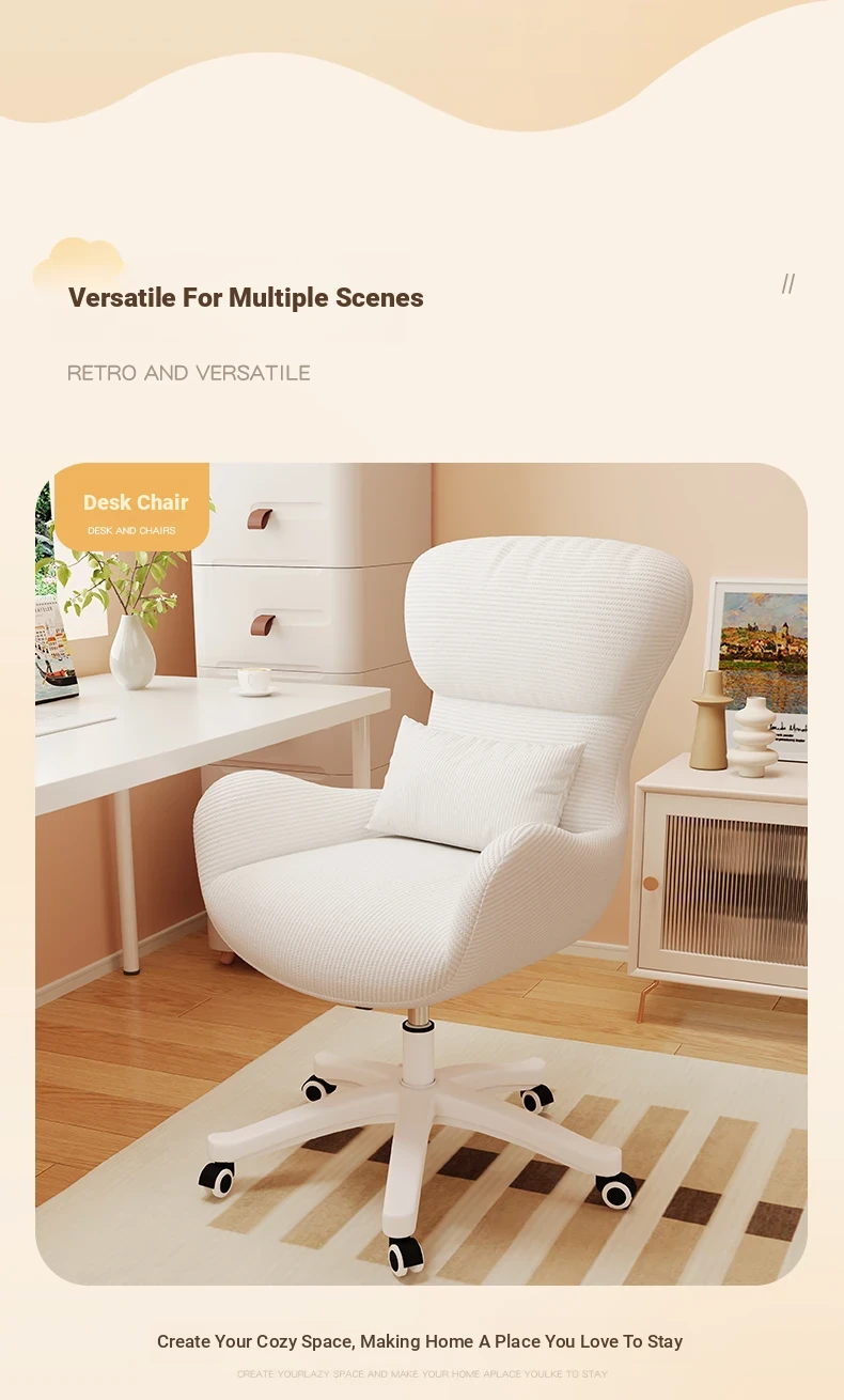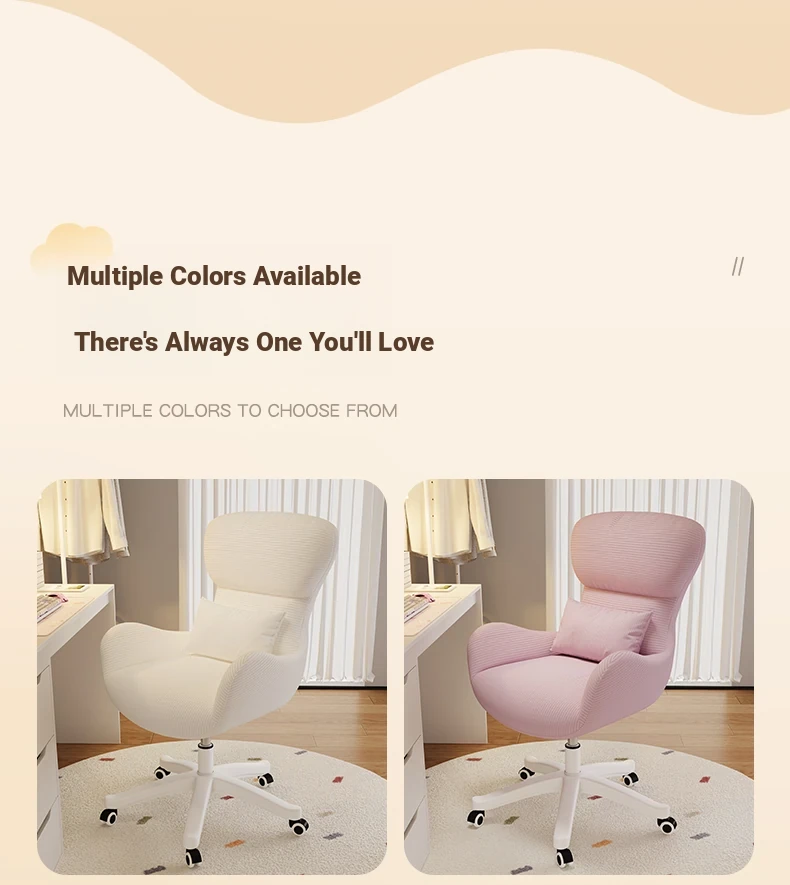 Creamy Makeup Chair for Home - Comfortable and Movable Height Adjustable Chair for Long Sitting, Perfect for Girls' Bedrooms and Dressing Tables, Trendy Backrest Chair