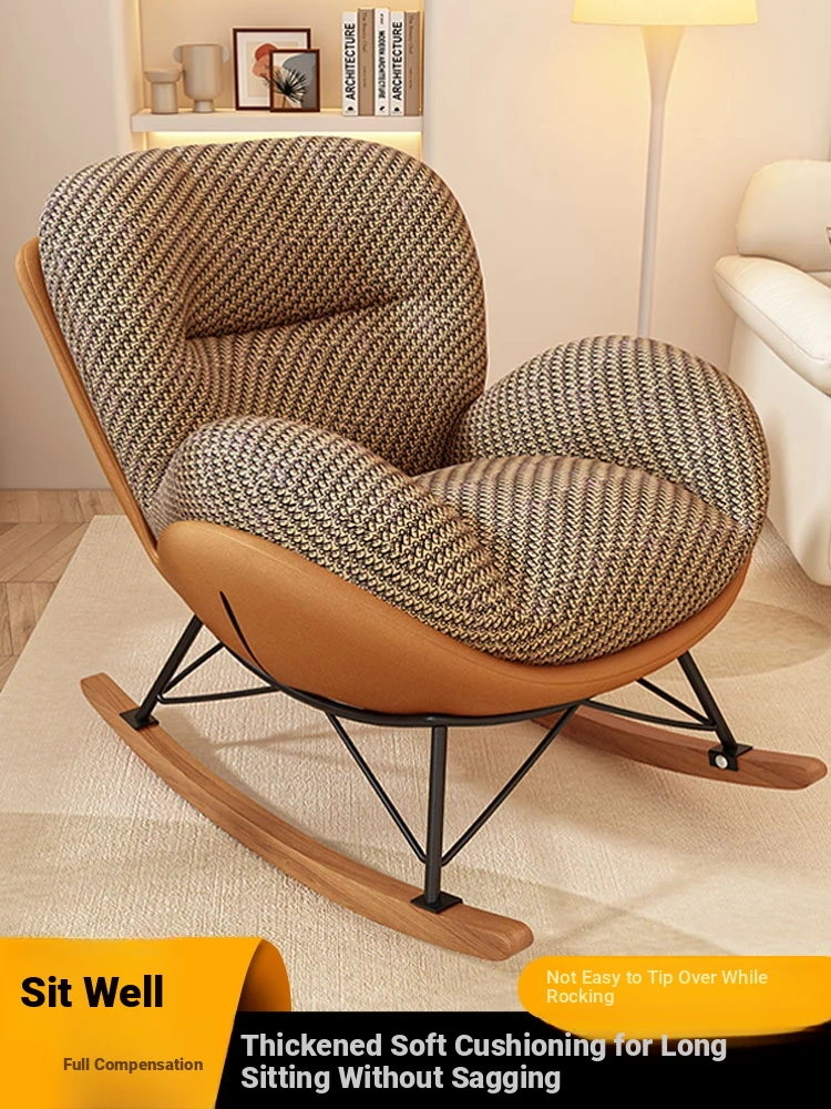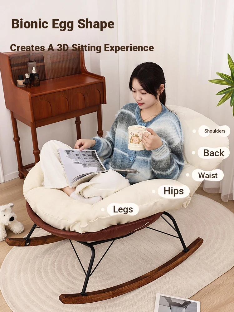 Eggshell Rocking Chair - Stylish Single Lounge Chair for Adults, Perfect for Home, Balcony or Living Room. Relax in Luxury with This Comfortable Lazy Sofa Chair. Ideal for Leisure and Unwinding.