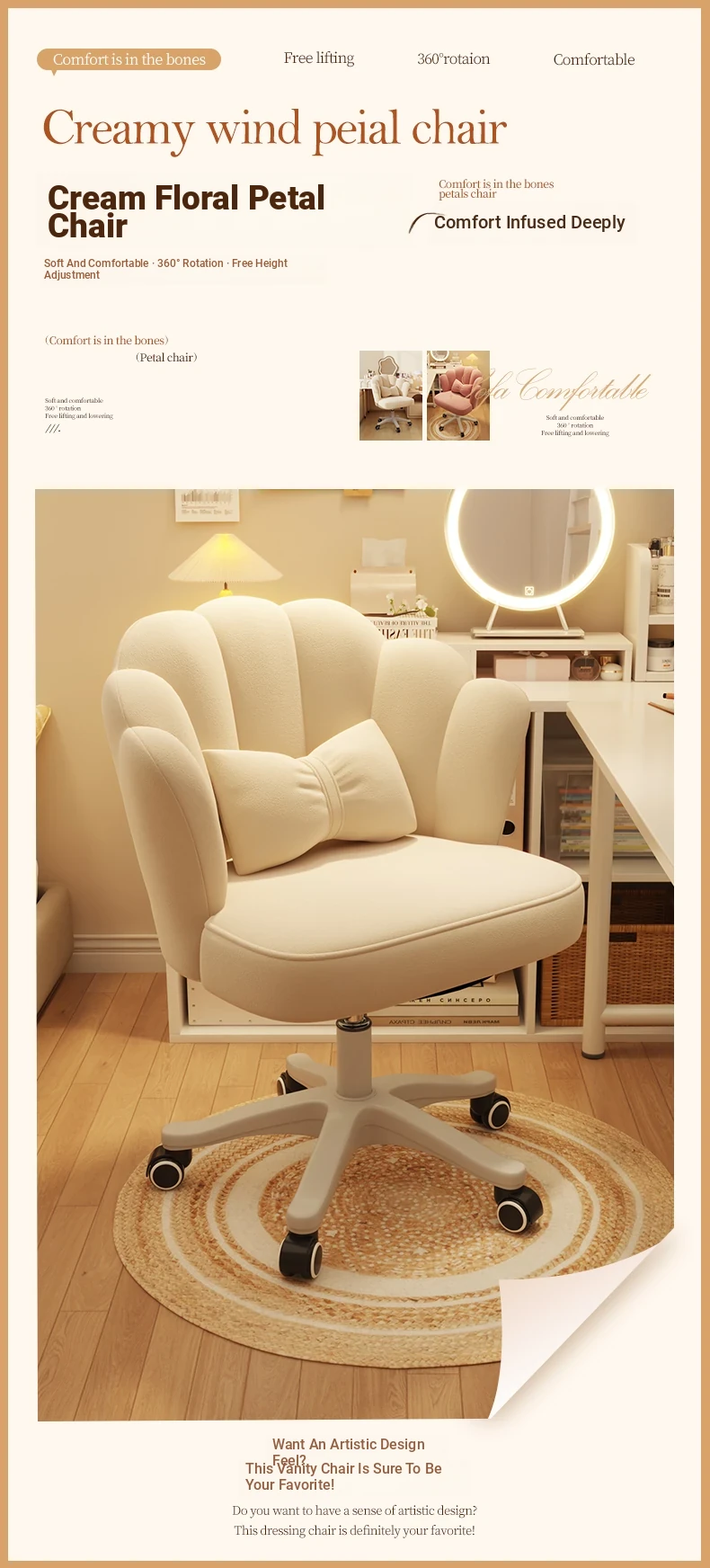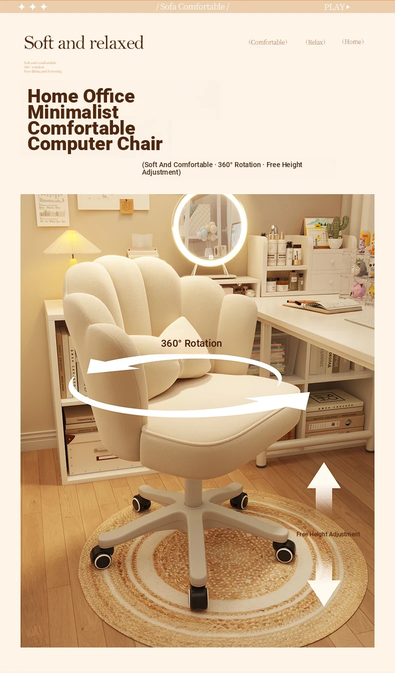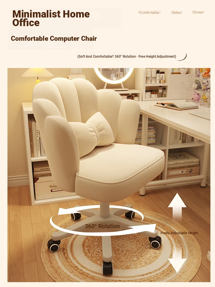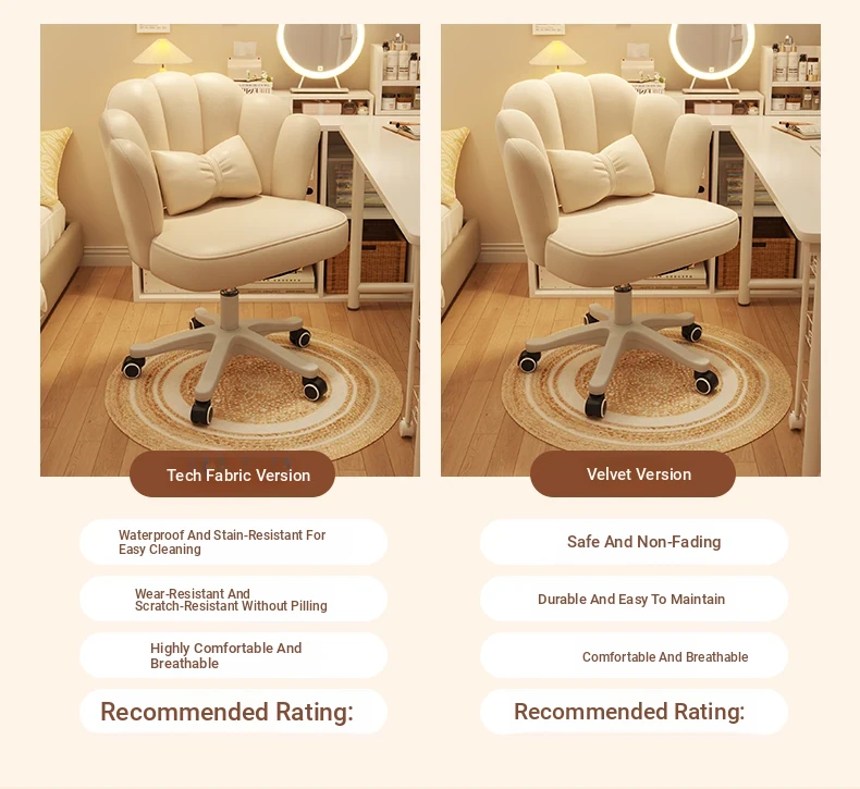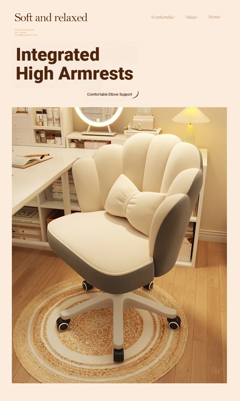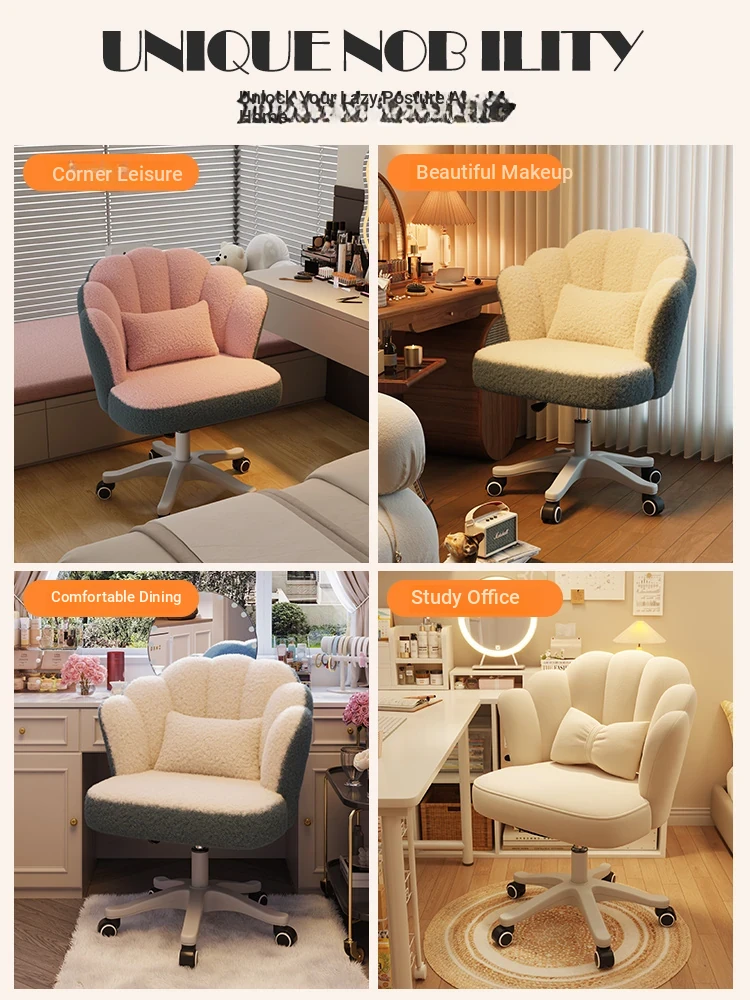 Elegant Makeup Chair with Backrest - Stylish Petal Design for Vanity, Adjustable Height, Swivel & Rolling Features, Perfect for Bedrooms and Nail Art!