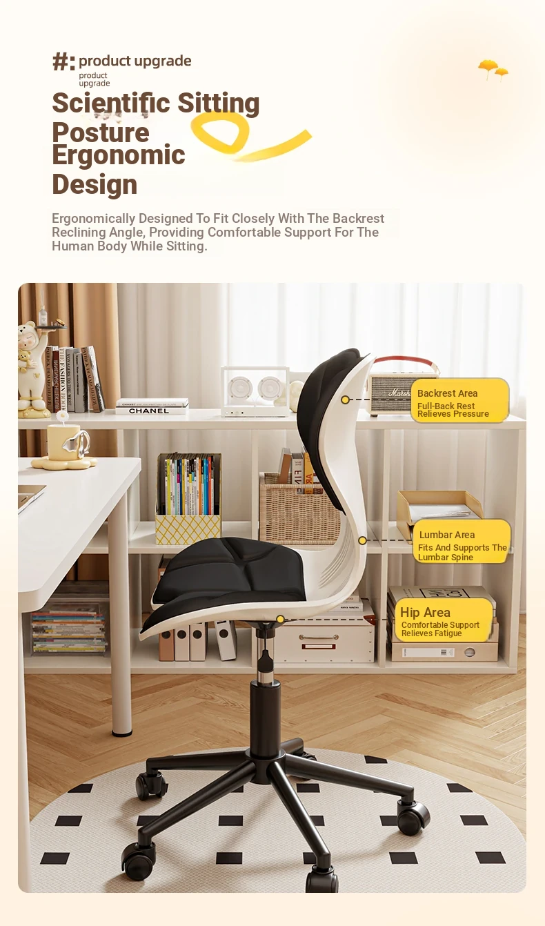 Ergonomic Adjustable Office Chair with Lumbar Support - Comfortable Rolling Desk Chair for Home, Dormitory, and Long Hours of Sitting