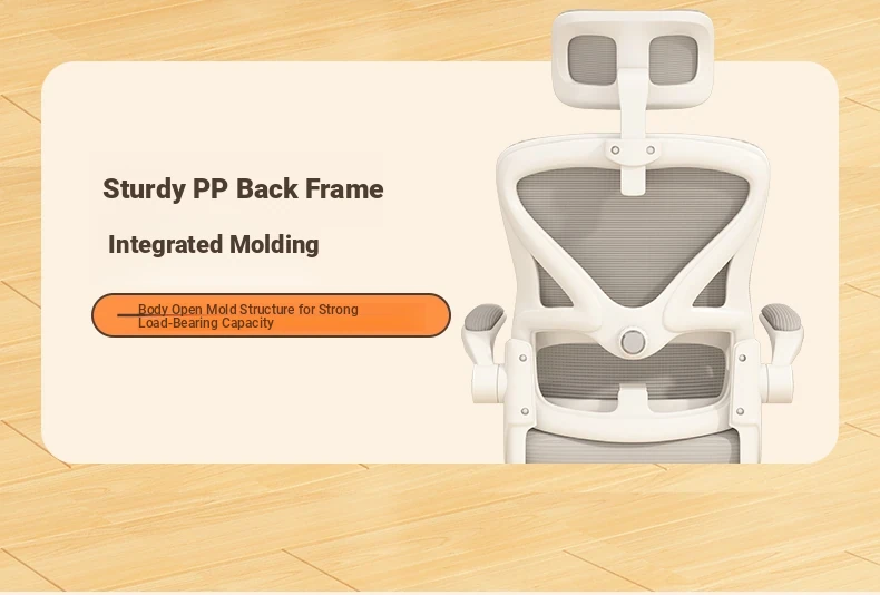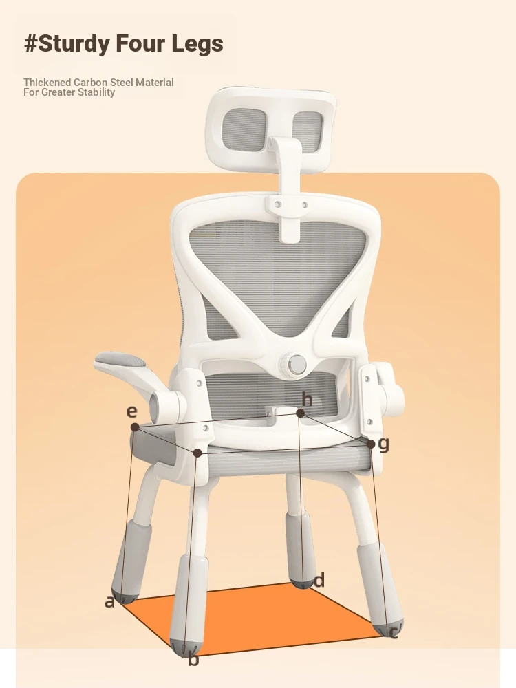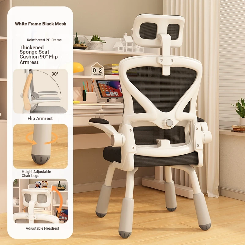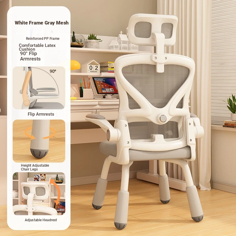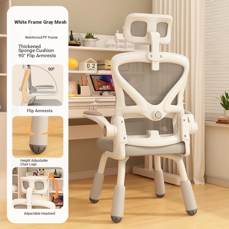 (White frame gray net + liftable headrest) suspended waist support, thickened sponge cushion, firm and thick Adjustable legs