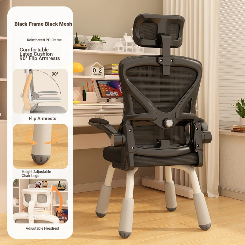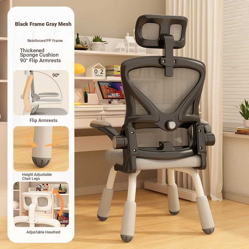 (Black Frame gray net + liftable headrest) suspended waist support, thickened sponge cushion, firm and thick Adjustable legs