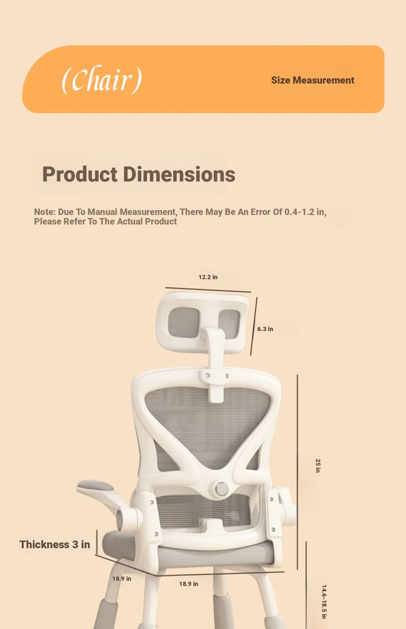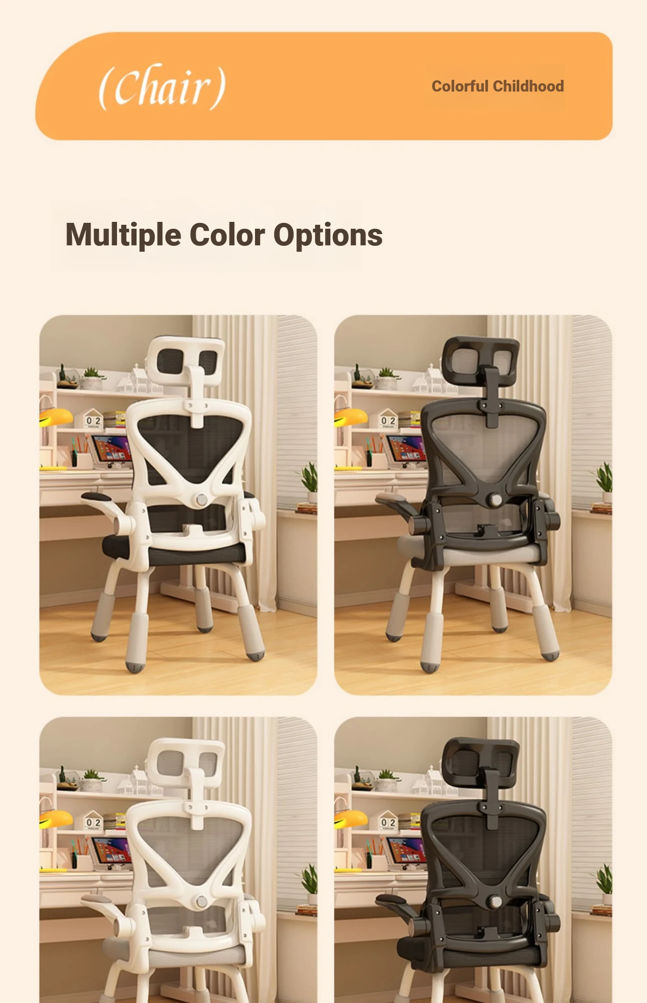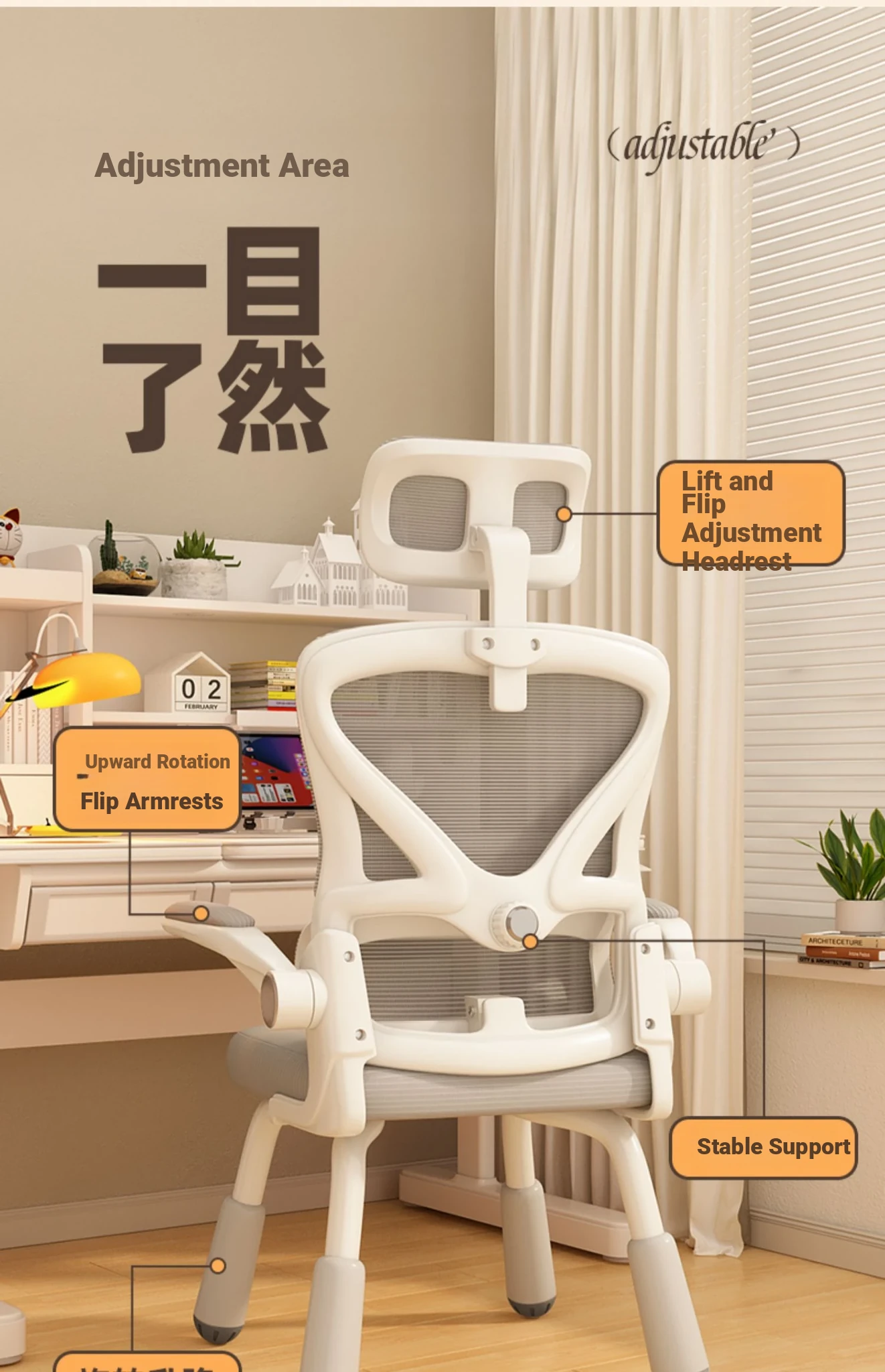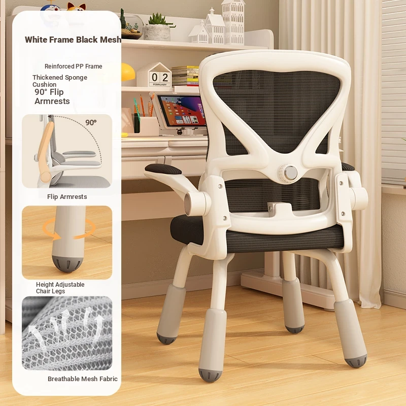 (White frame, black net + liftable headrest) suspended waist support, thickened sponge cushion, firm and thick Adjustable legs