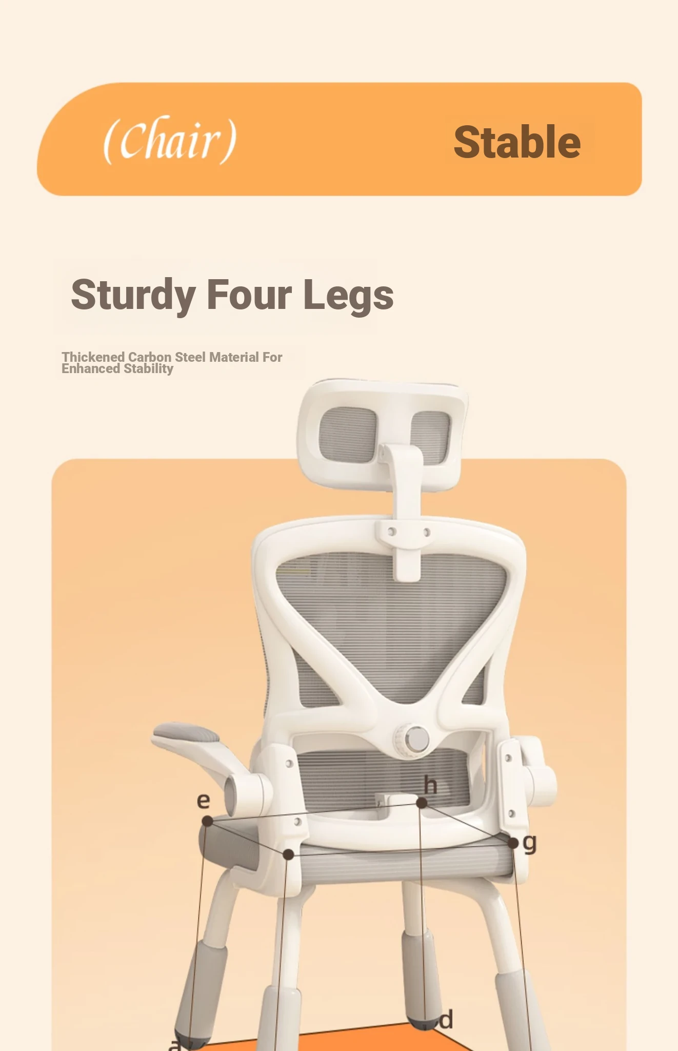 (White frame and gray net) Suspended waist support, thickened sponge cushion, firm and bold Adjustable legs