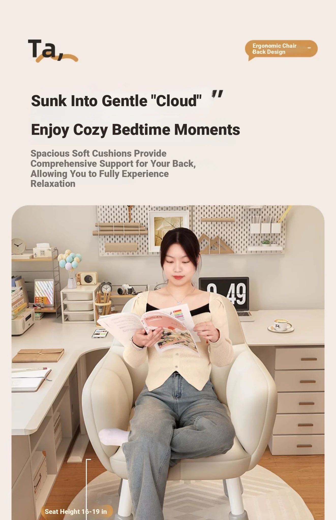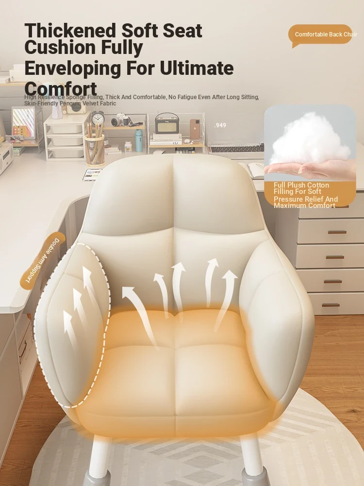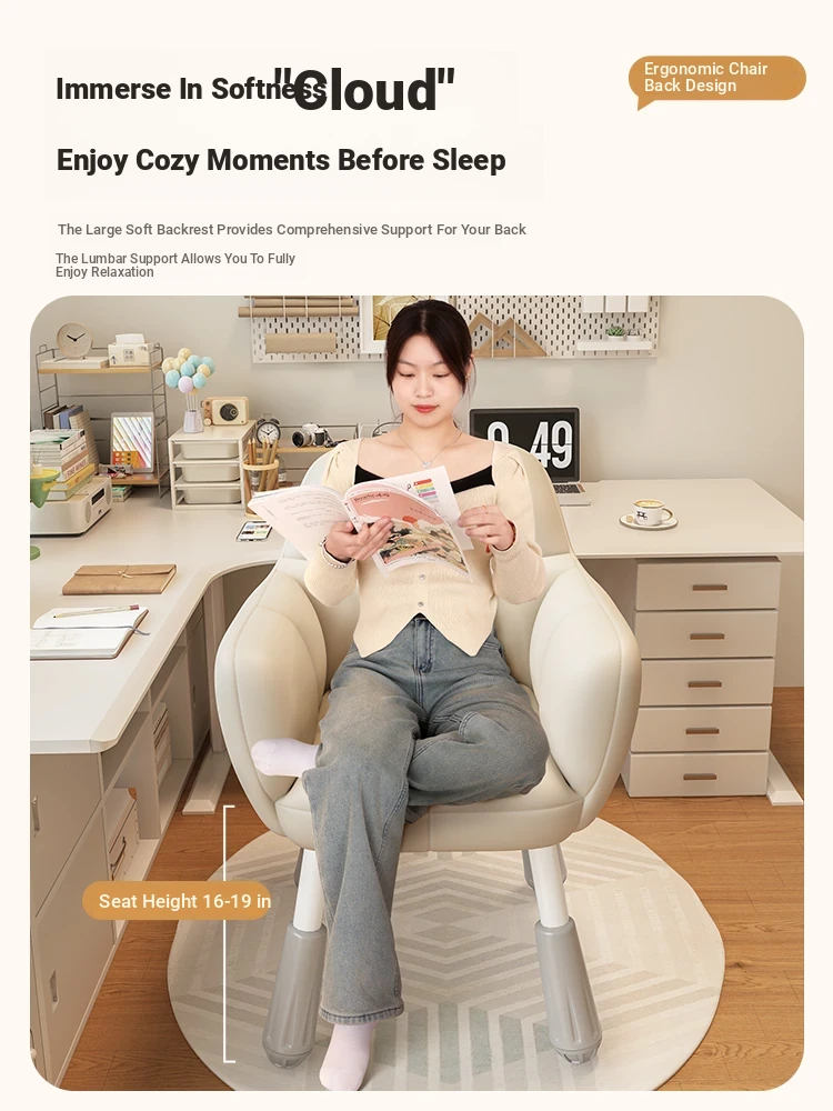 Ergonomic Computer Chair for College Students - Stylish Study Desk and Office Sofa Chair for Girls, Perfect for Bedroom and Home Use, Comfortable Makeup Backrest Chair