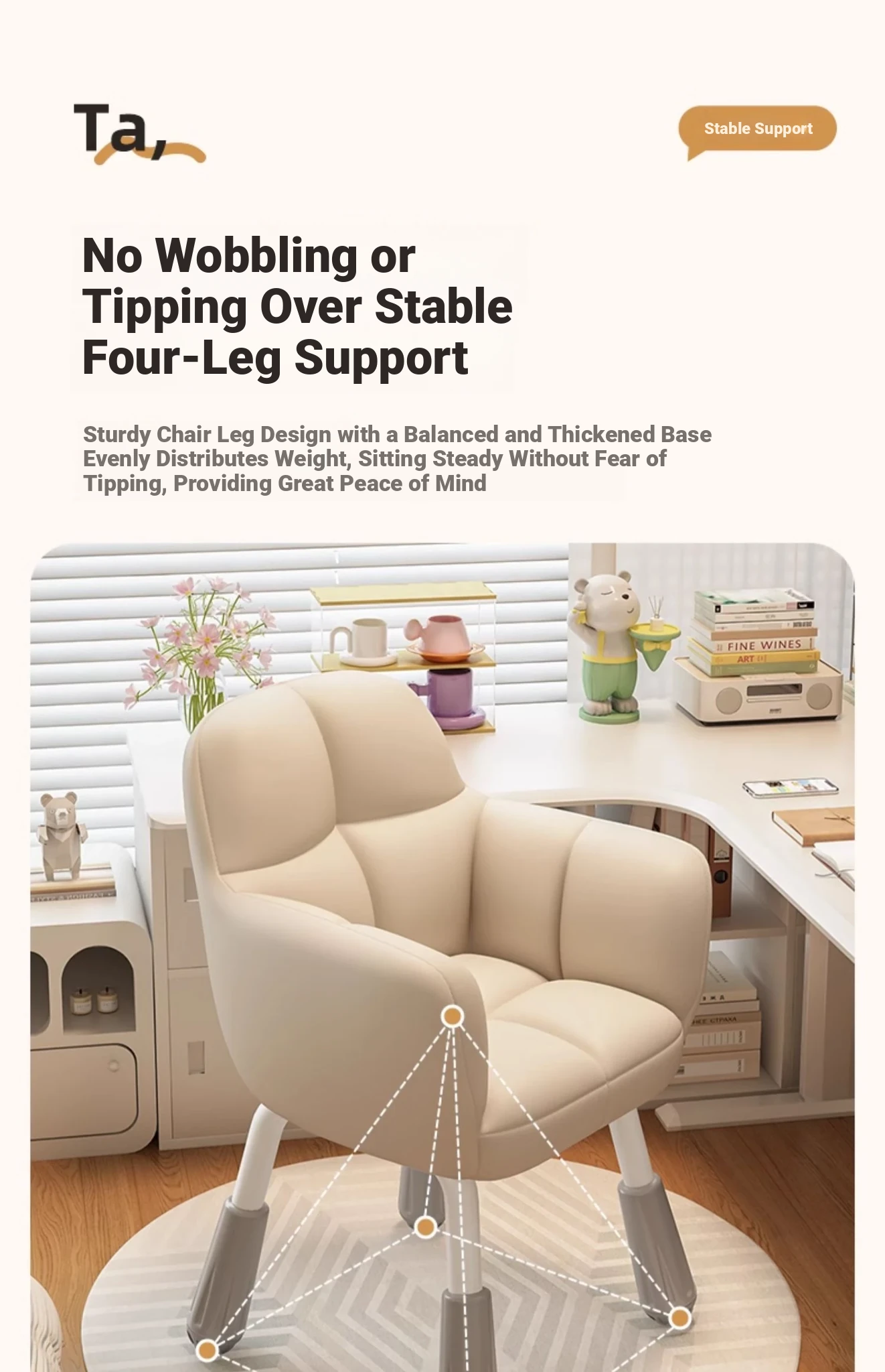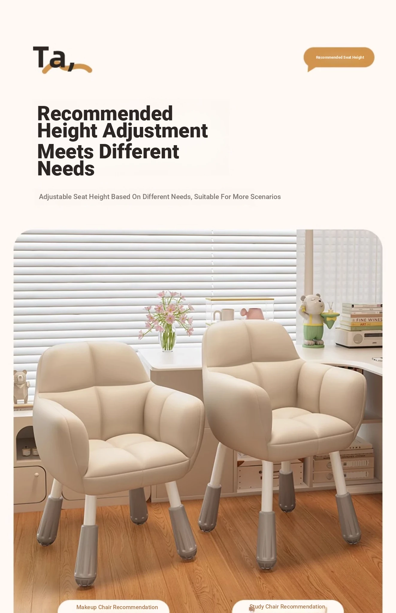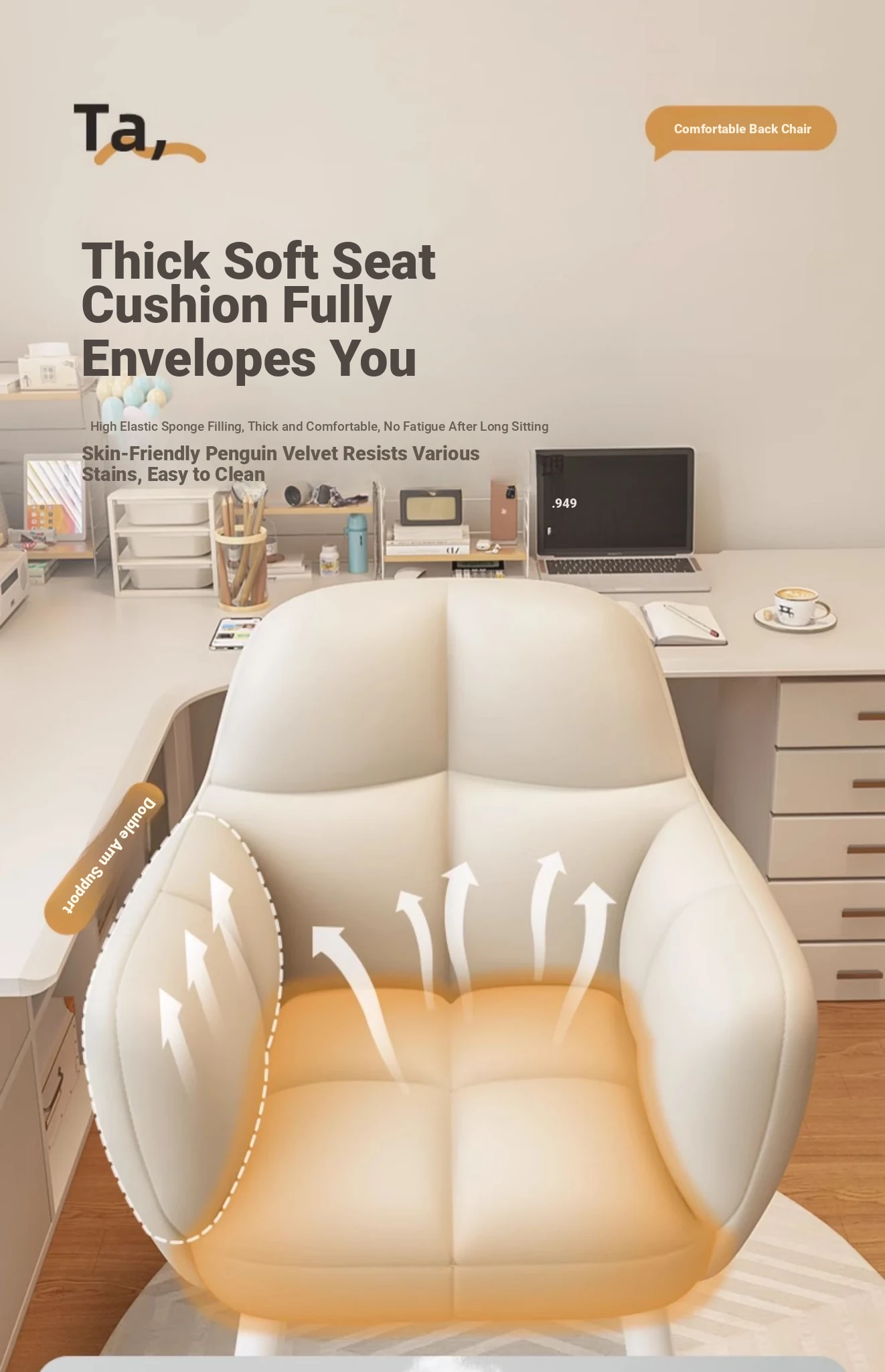 Ergonomic Computer Chair for College Students - Stylish Study Desk and Office Sofa Chair for Girls, Perfect for Bedroom and Home Use, Comfortable Makeup Backrest Chair