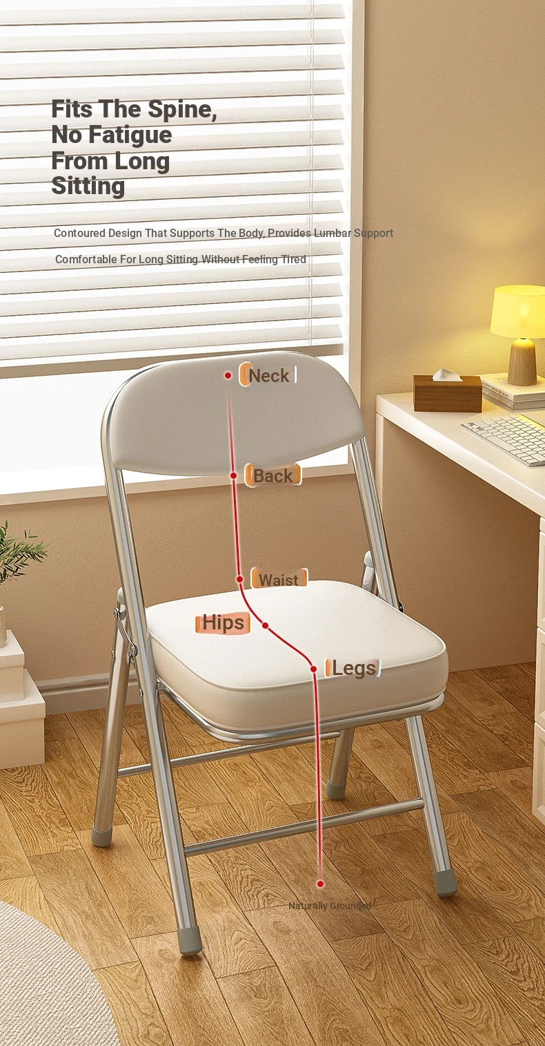 Foldable Chair with Backrest - Comfortable Office and Study Chair for Home Use, Perfect for Girls' Bedrooms, Ideal for Long Hours of Sitting at the Computer, Training, and Desk Work.