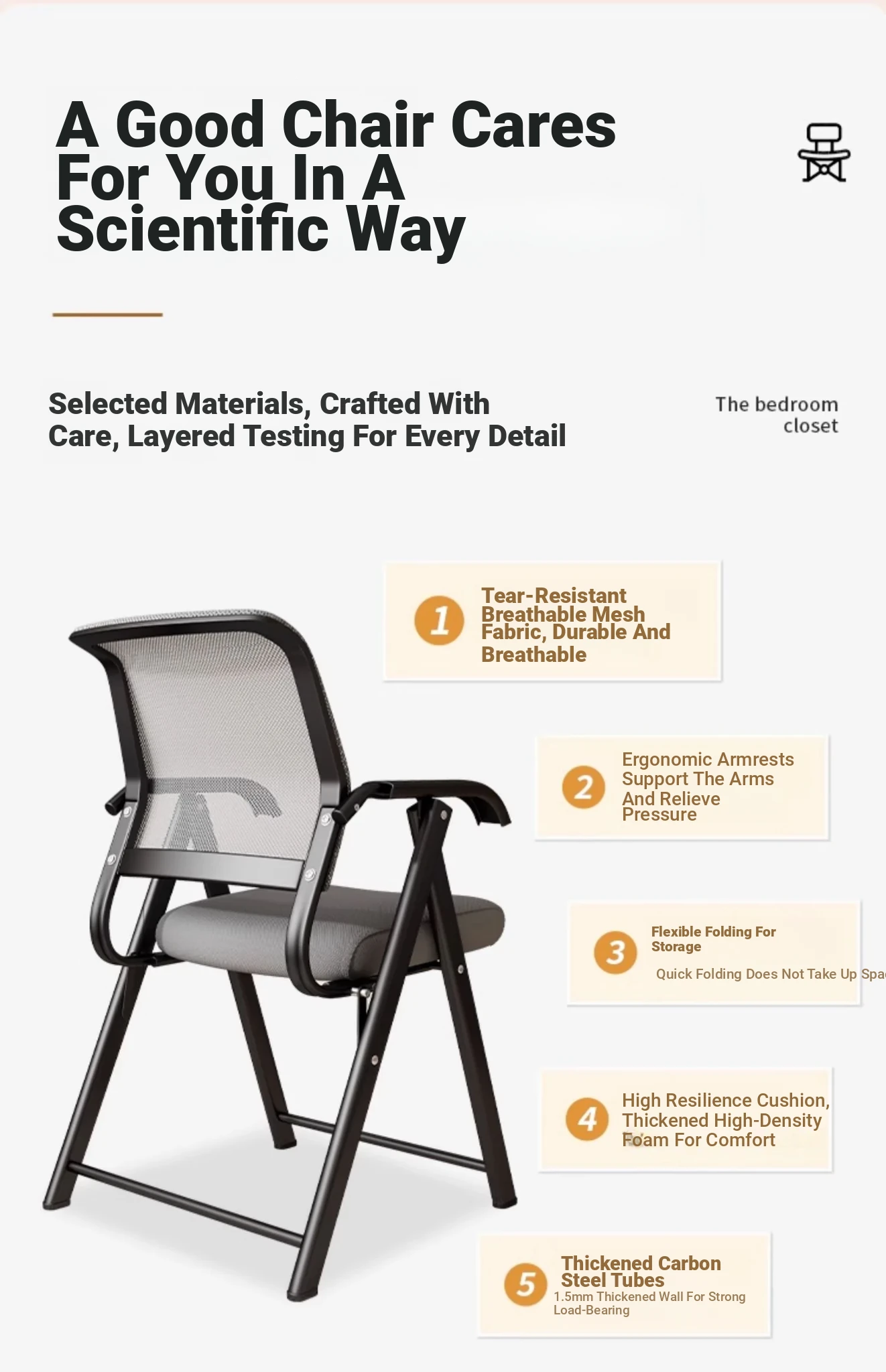Foldable Comfortable Chair for Home - Durable Backrest Computer Chair, Perfect for Meeting Rooms, Training Sessions, and Student Dorms