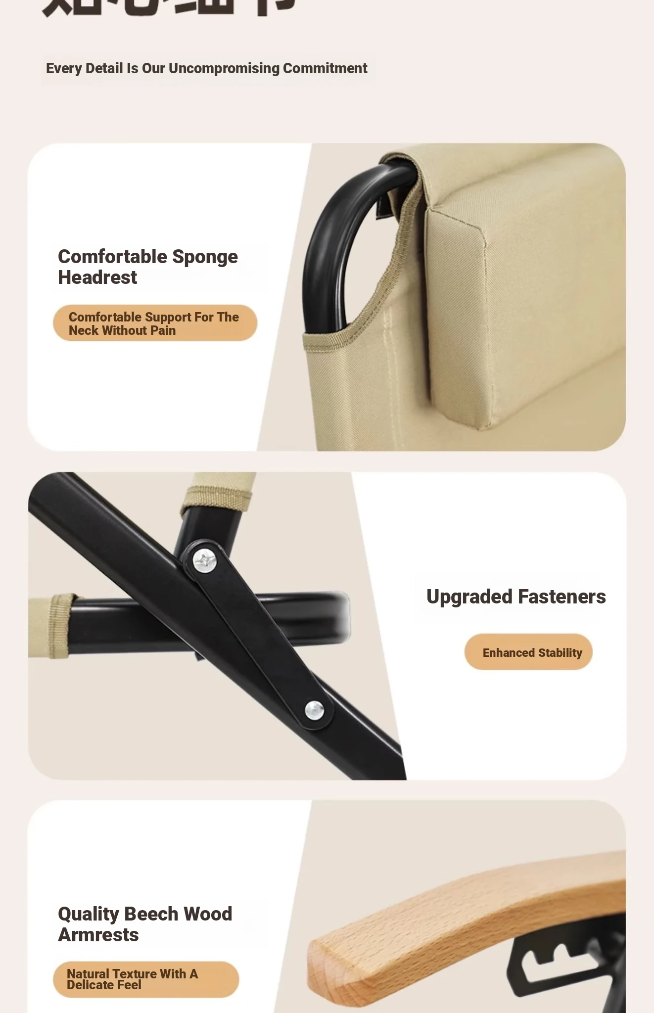 [Five gear adjustment] Double Oxford cloth (metal armrest + memory headrest) khaki