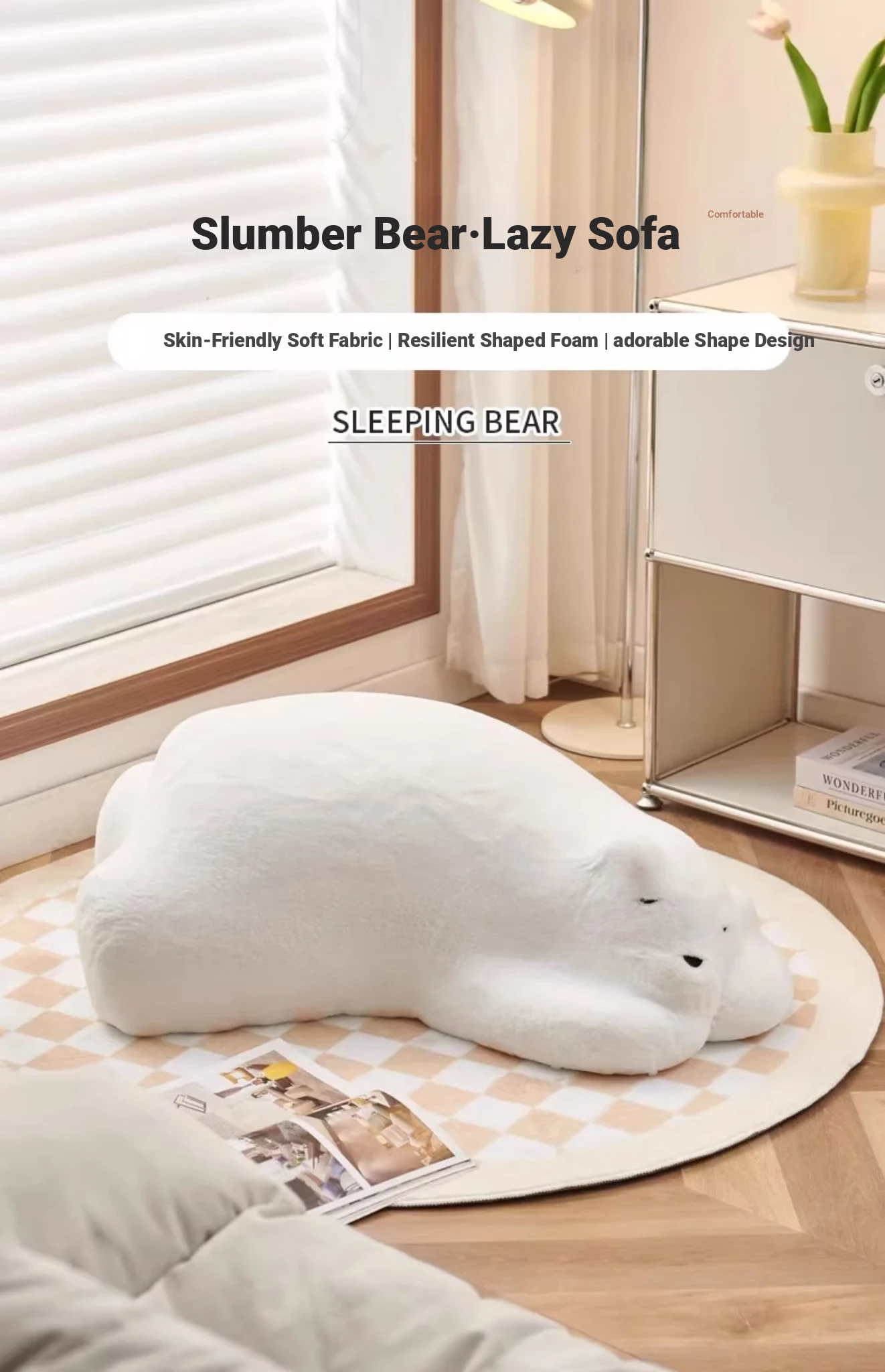 Lazy Bear Sofa Chair - Creative Floor Cushion for Bedroom, Cozy Animal Design with Trendy Polar Bear Style, Perfect for Relaxation and Napping!