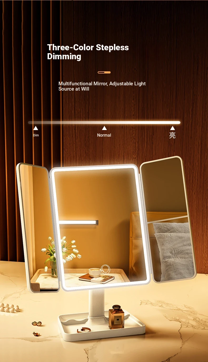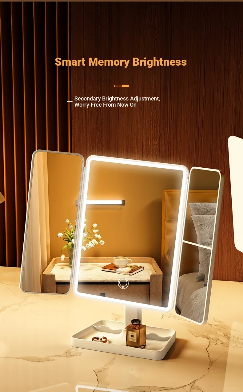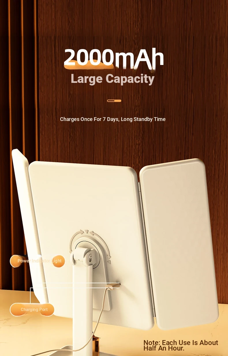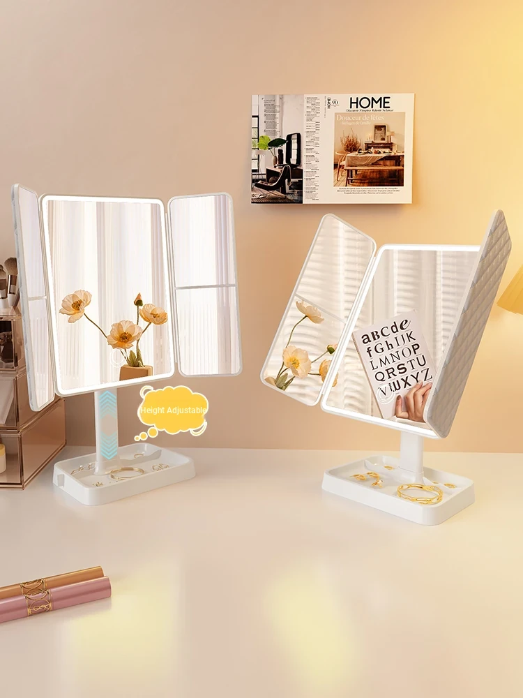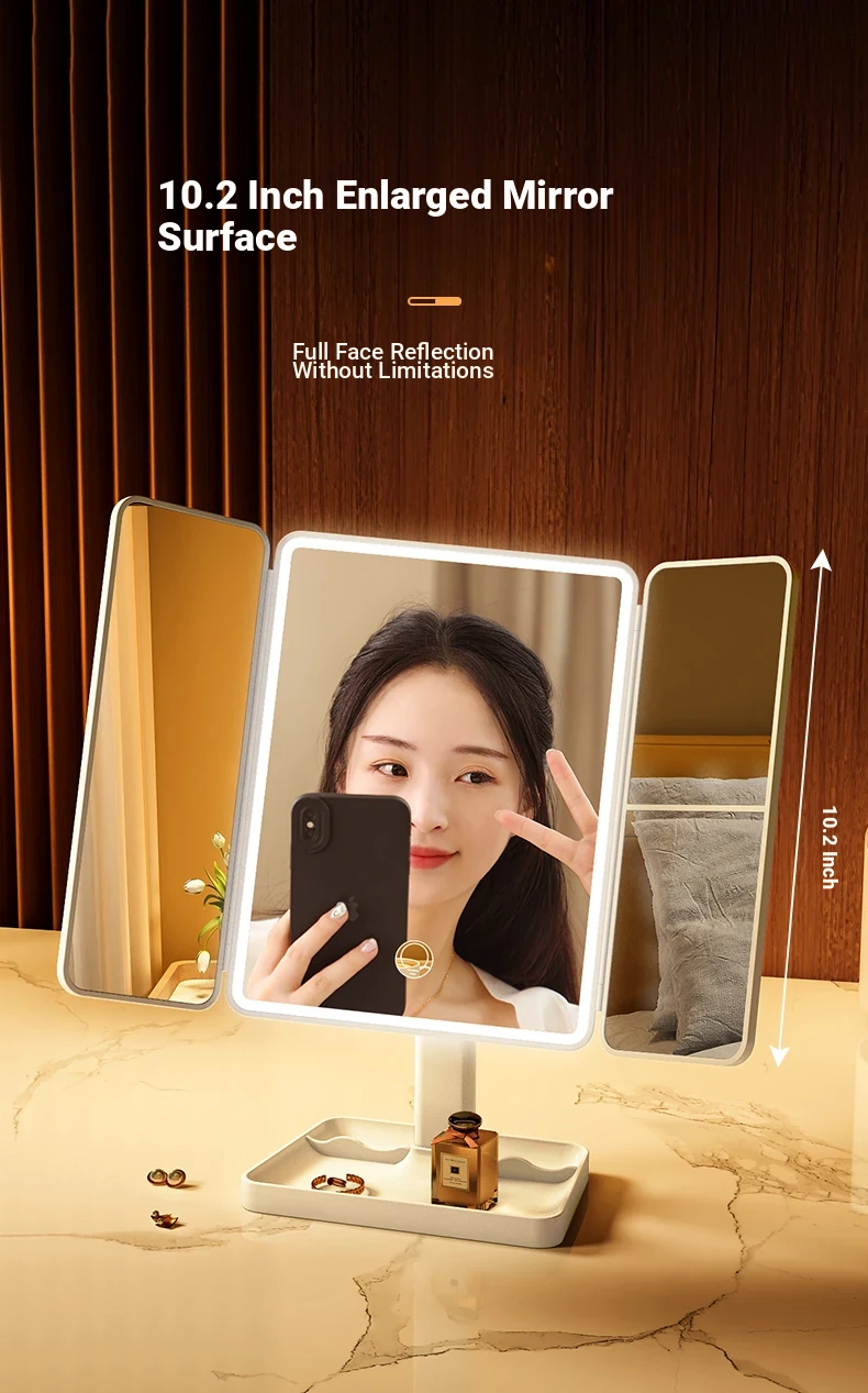 LED Makeup Mirror with Folding Design - Tabletop Vanity Mirror for Home, Dorms & Students, Features 3-Fold Design and Magnification for Flawless Makeup Application