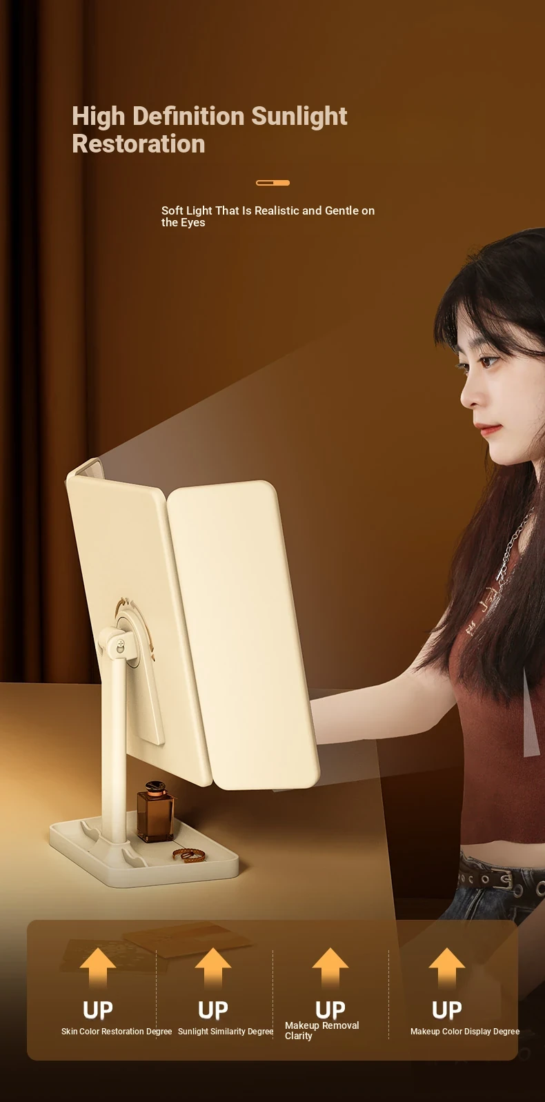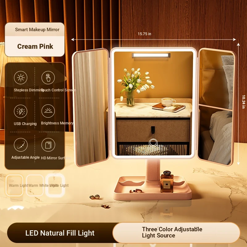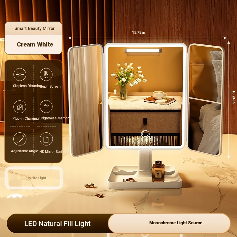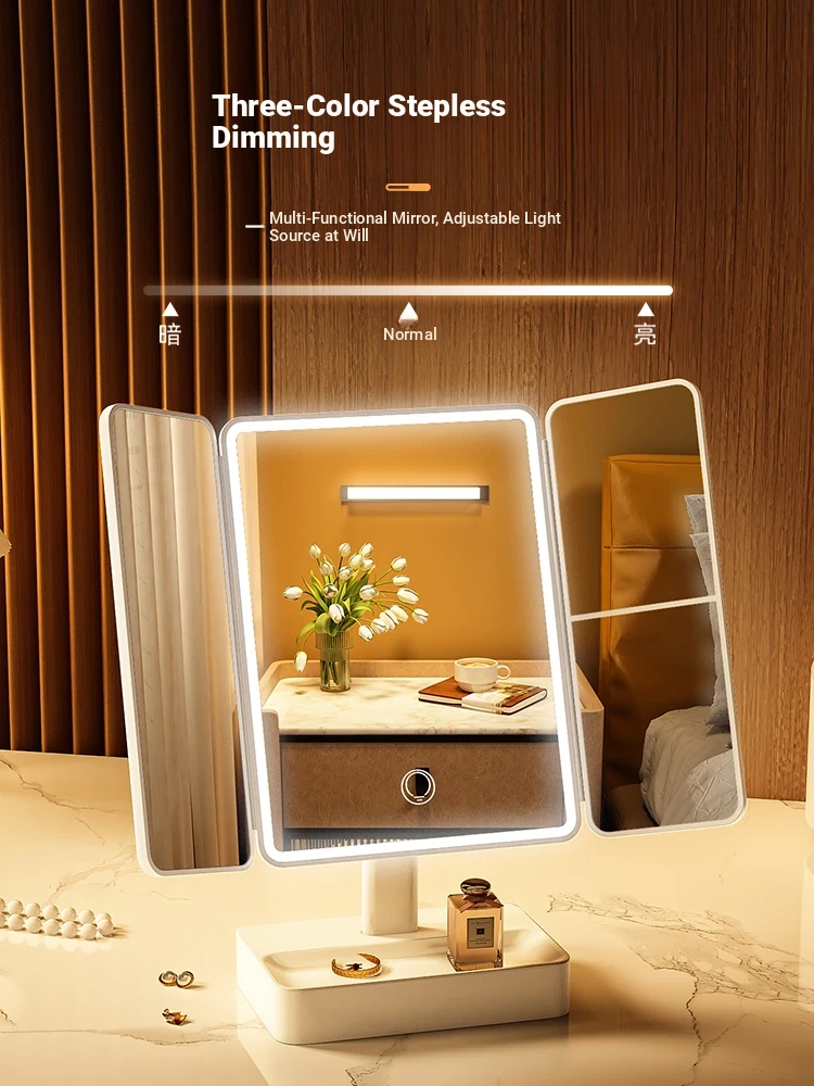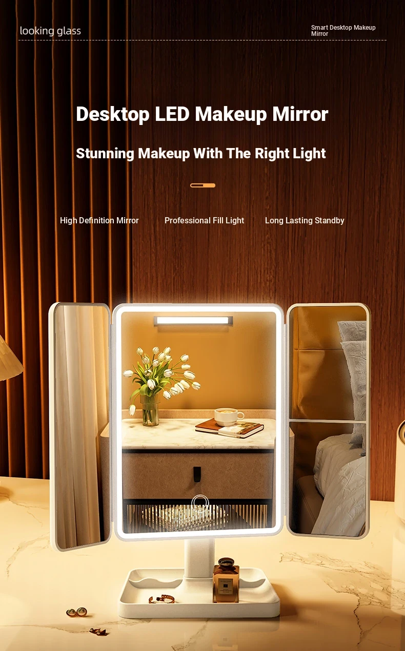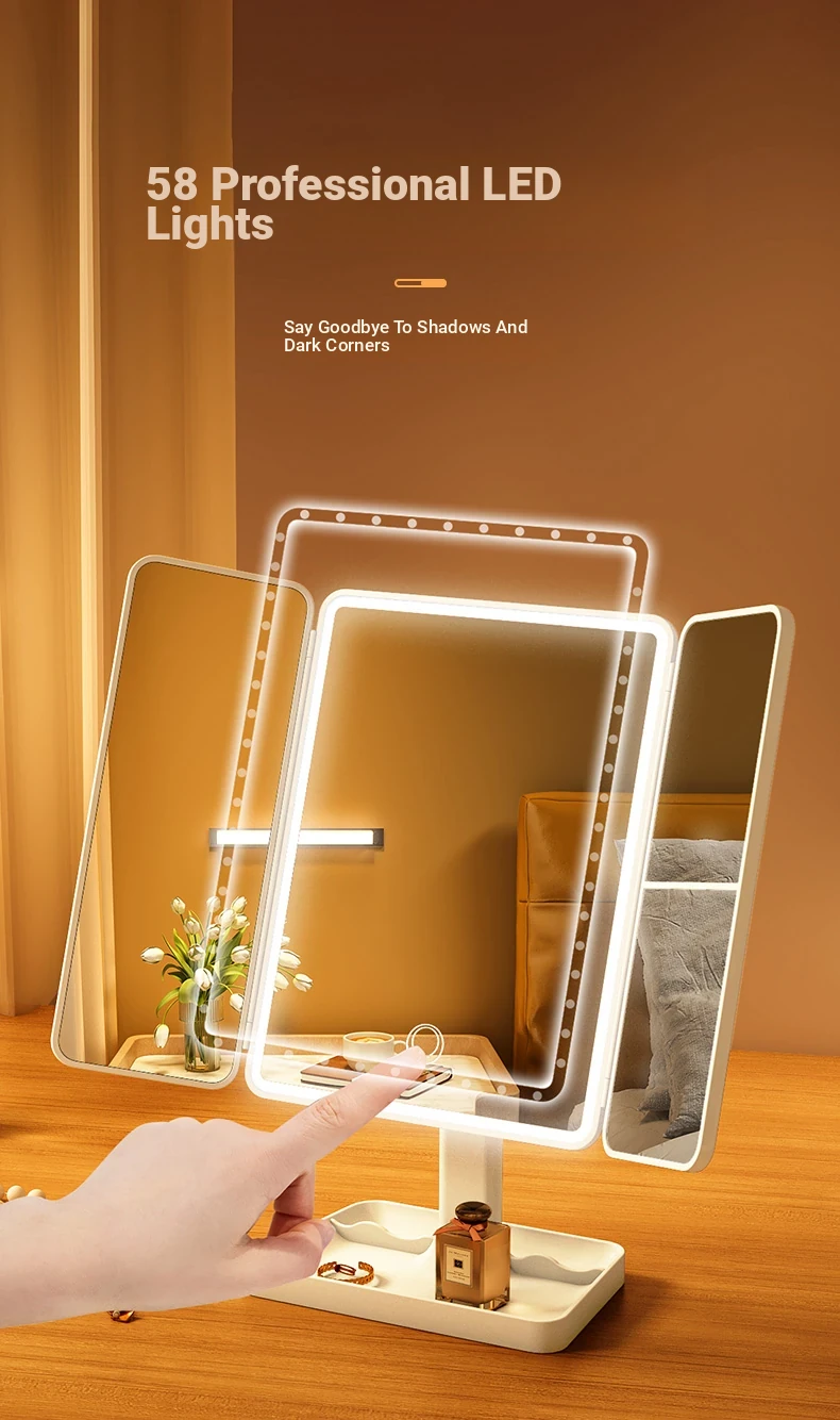 LED Makeup Mirror with Folding Design - Tabletop Vanity Mirror for Home, Dorms & Students, Features 3-Fold Design and Magnification for Flawless Makeup Application