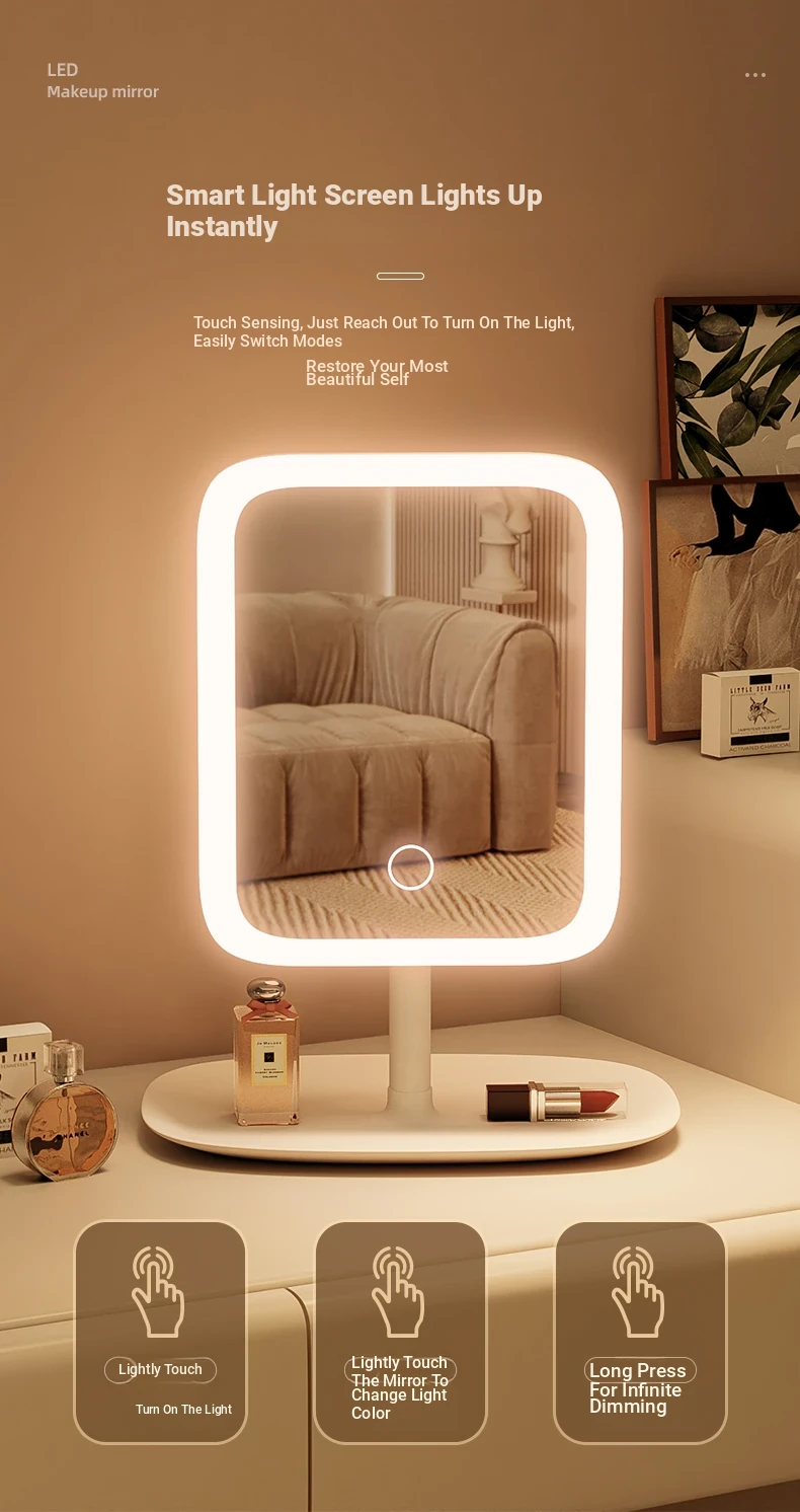 LED Makeup Mirror with Lights - Portable and Ultra HD Vanity Mirror for Home, Student Dorms, and Office Desktops - Perfect for Flawless Makeup Application