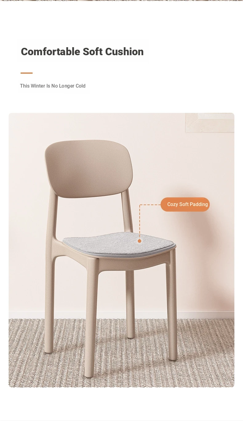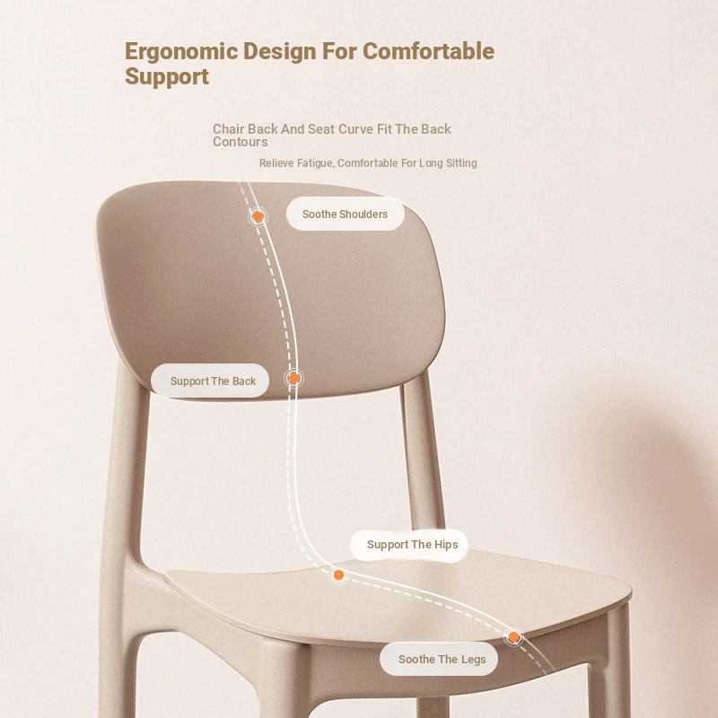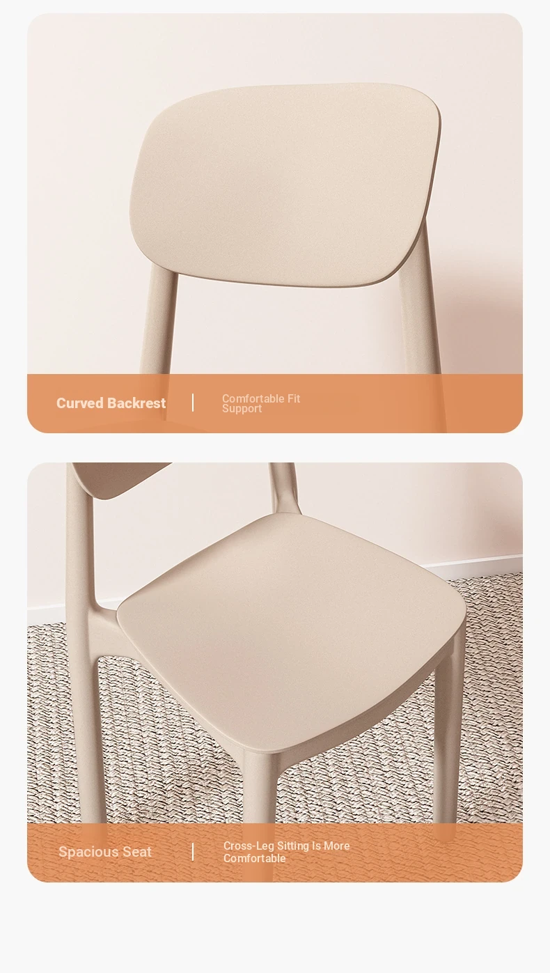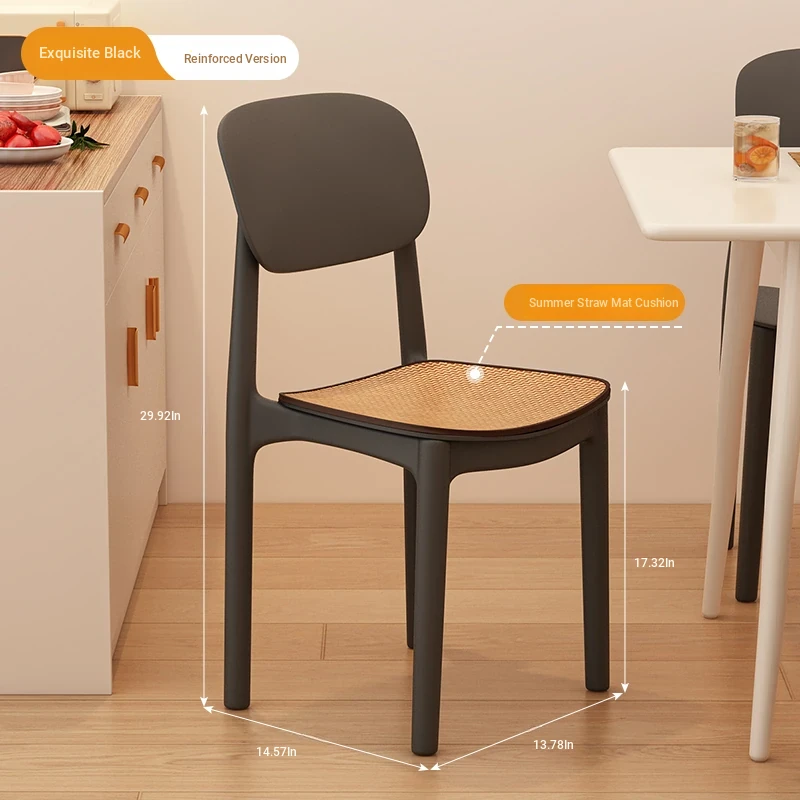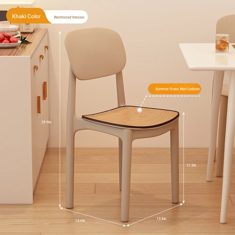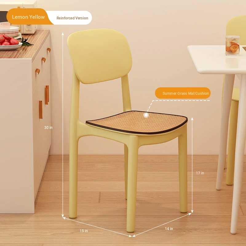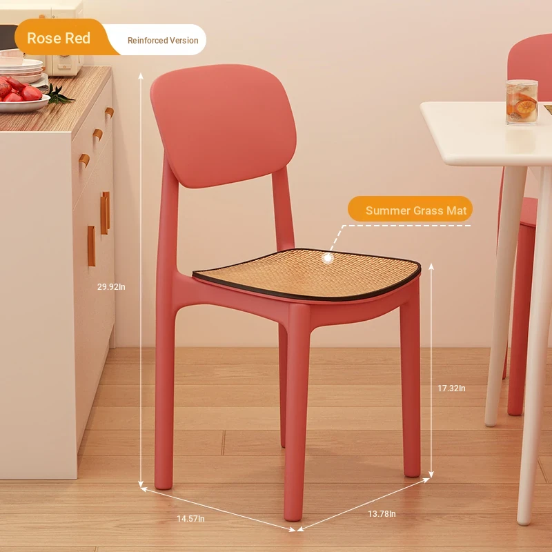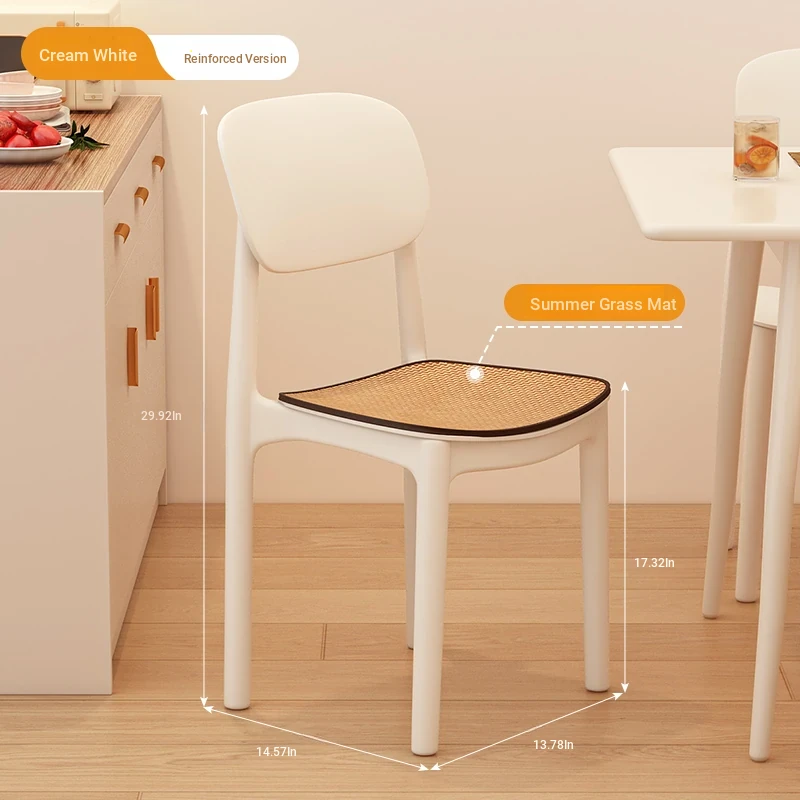 Lightweight Plastic Dining Chair with Backrest - Modern Minimalist Design for Home and Restaurant Use, Comfortable and Economical Small Chair with Cooling Mat