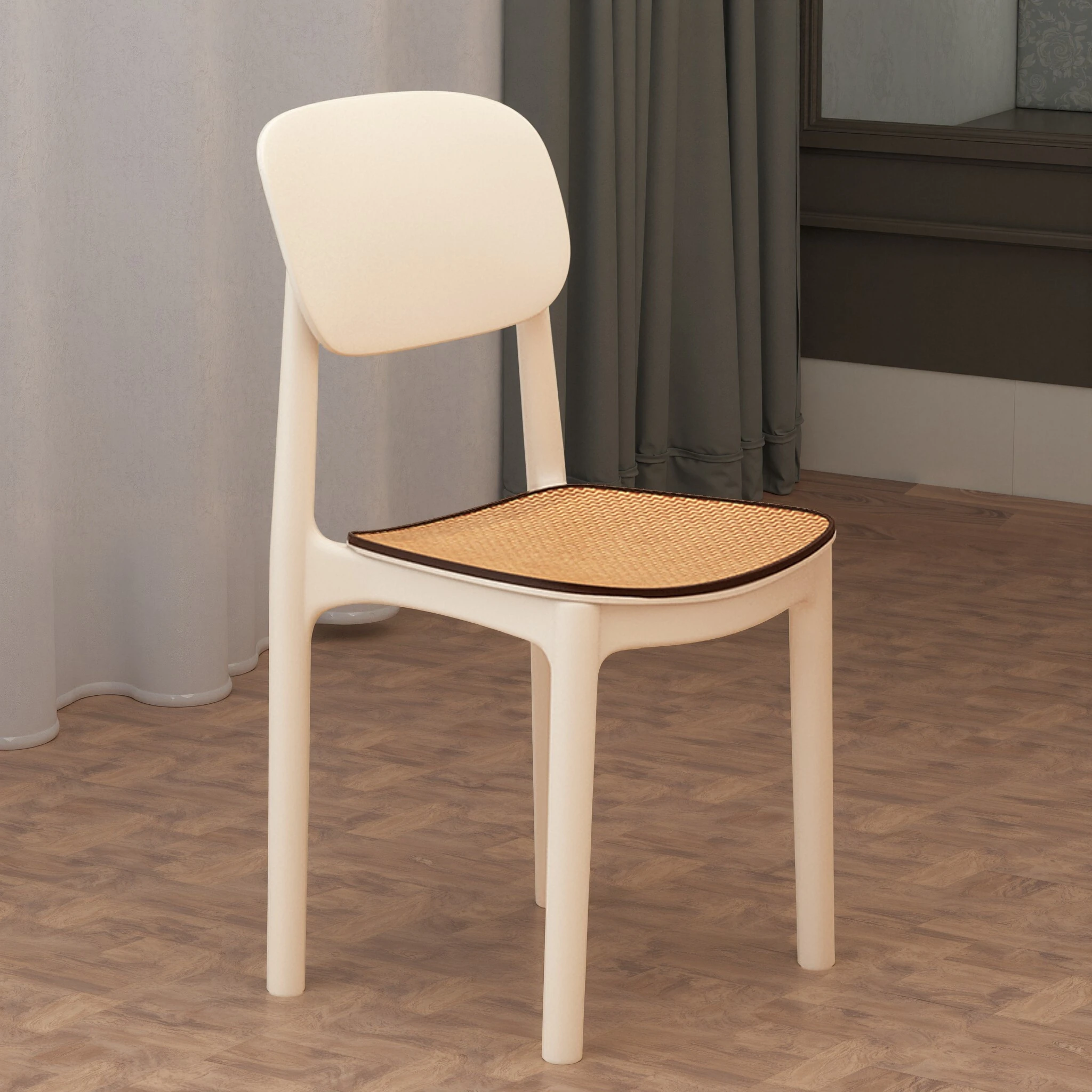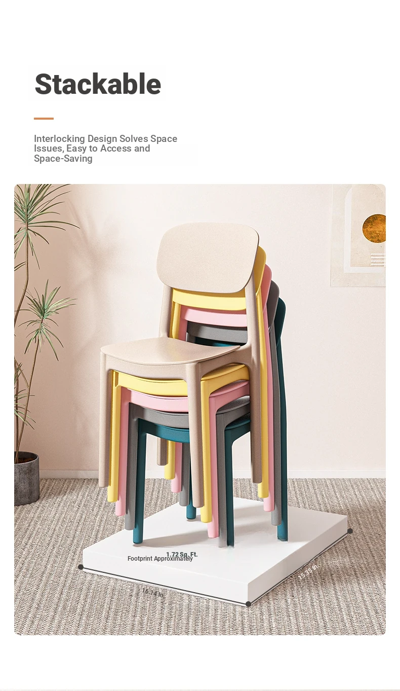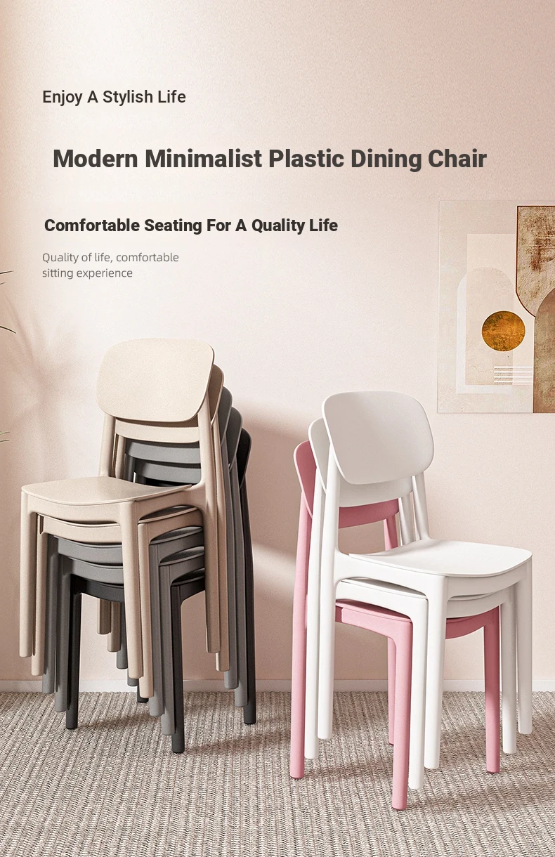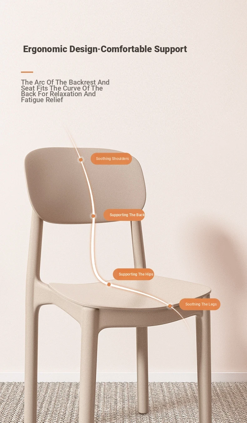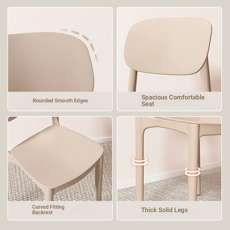 Lightweight Plastic Dining Chair with Backrest - Modern Minimalist Design for Home and Restaurant Use, Comfortable and Economical Small Chair with Cooling Mat