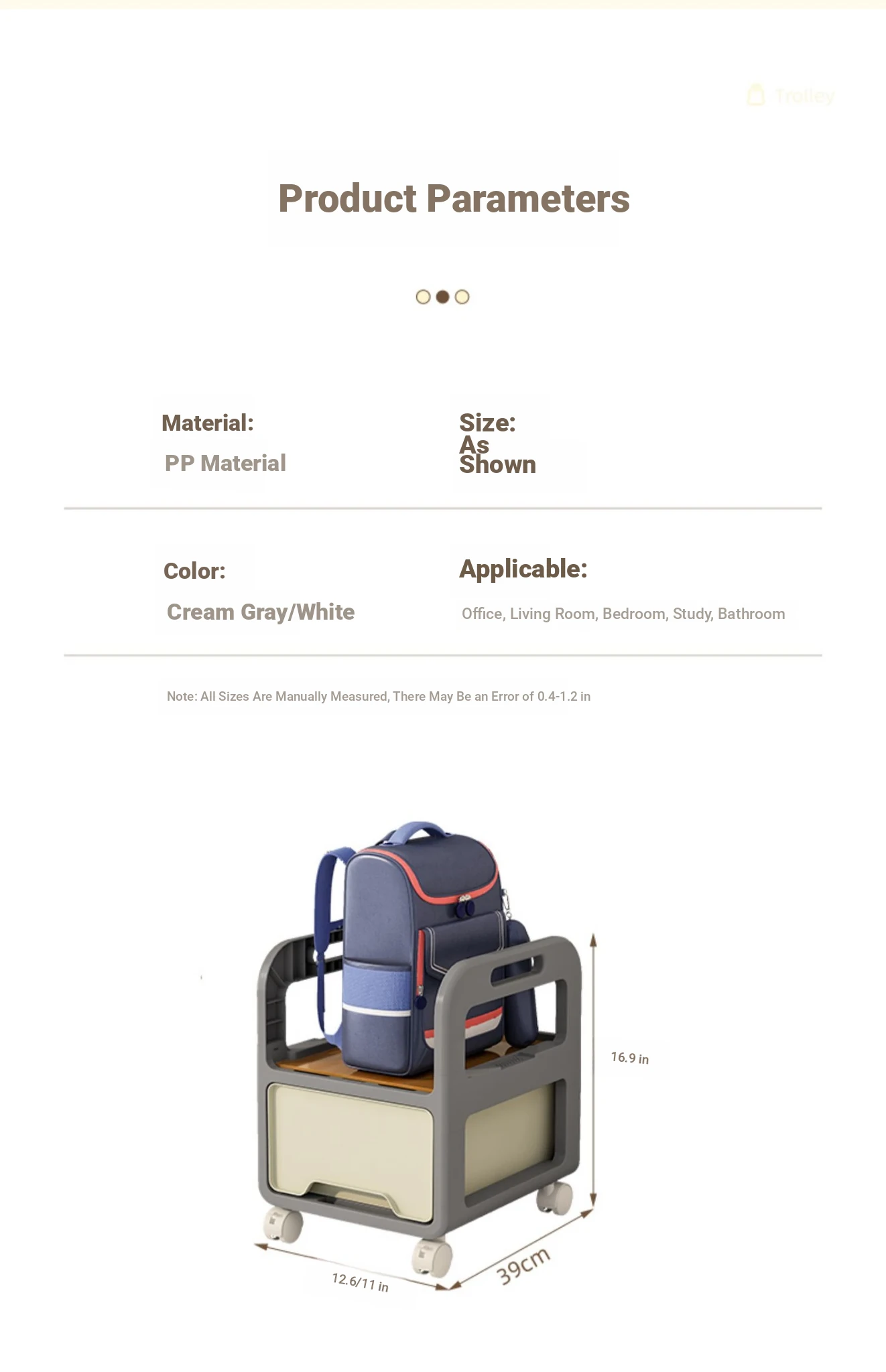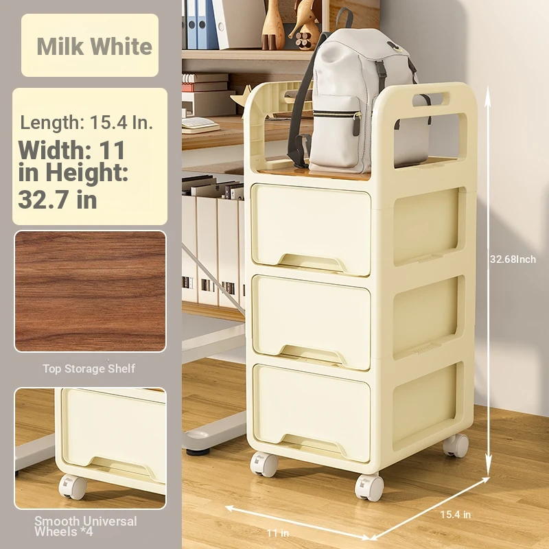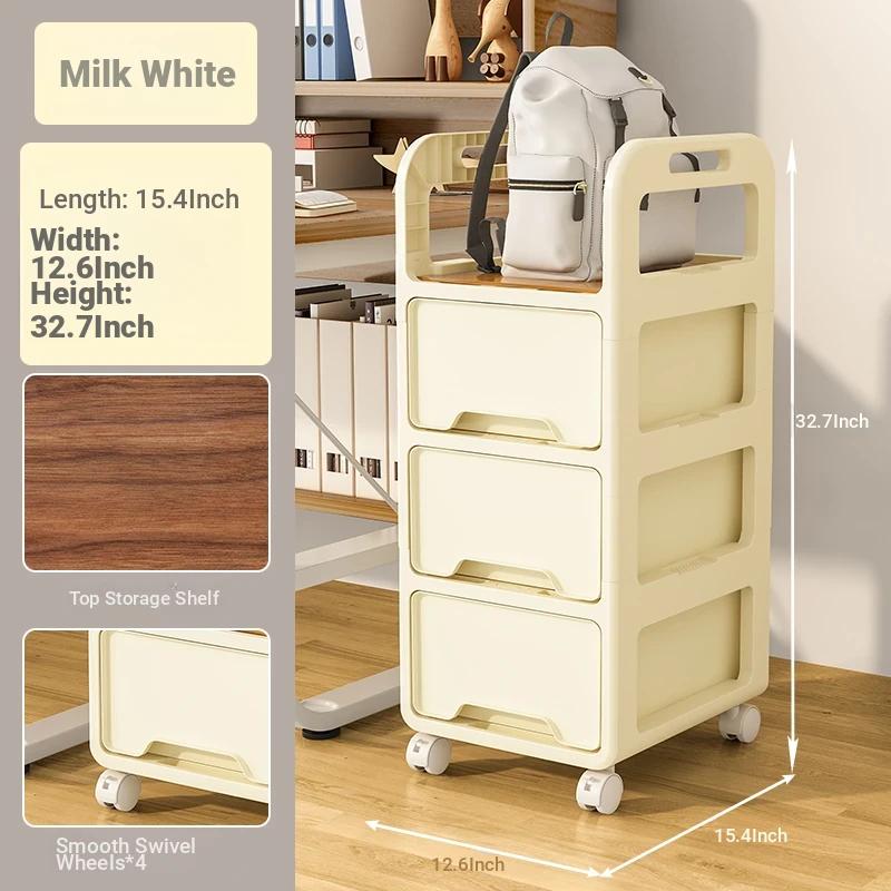 [Drawer type bag rack] 12.60in cream white-four layers of wheels
