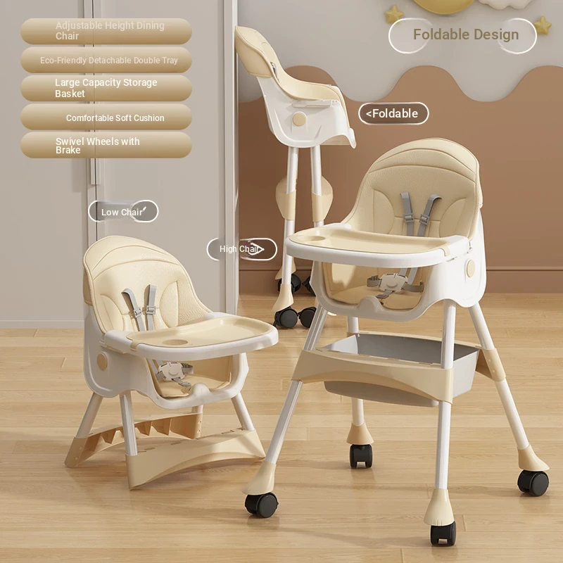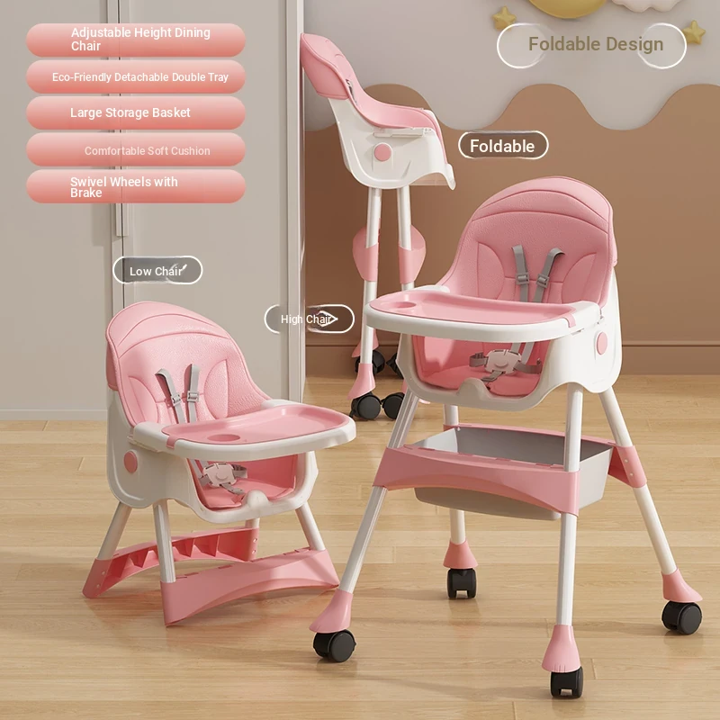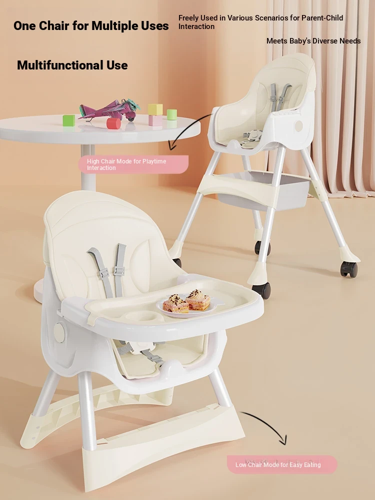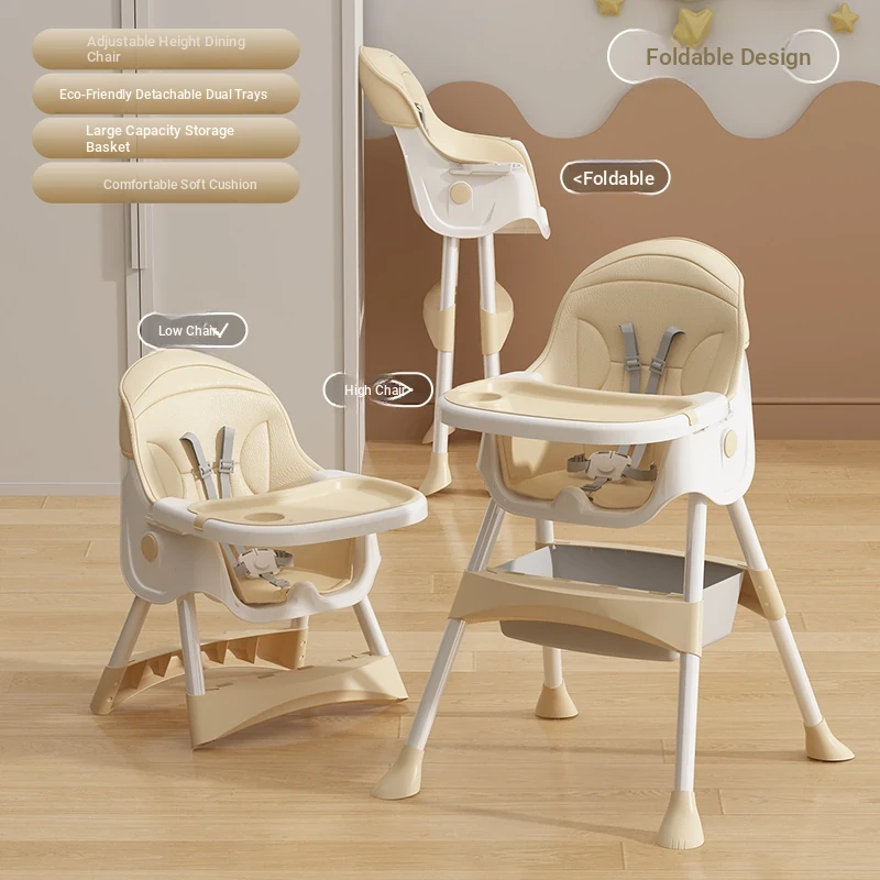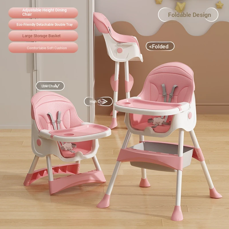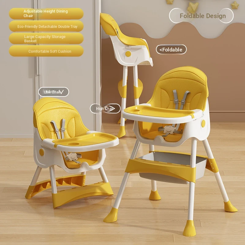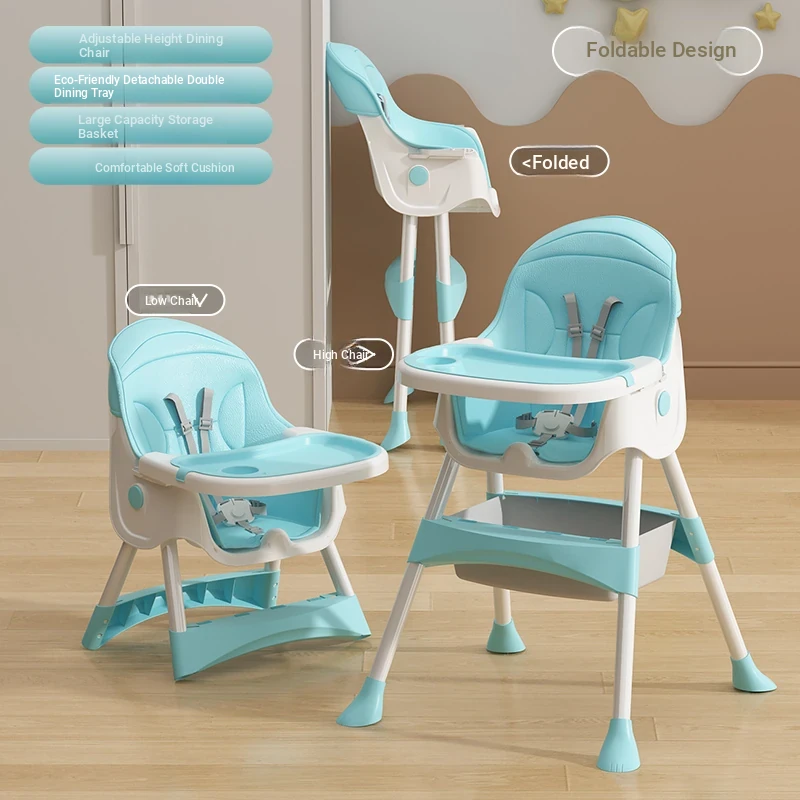 Multi-Functional Foldable Kids Dining Chair - Portable Baby High Chair for Home and Restaurant Use, Perfect for Mealtime!