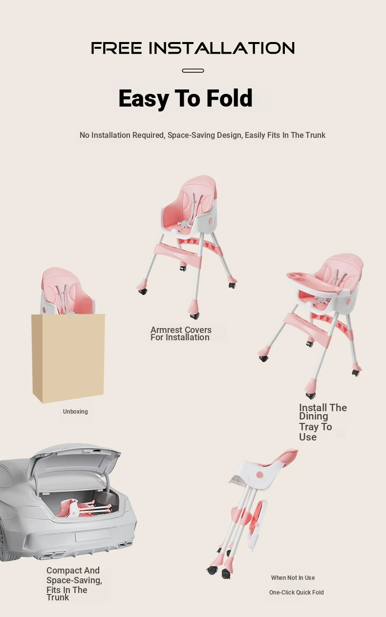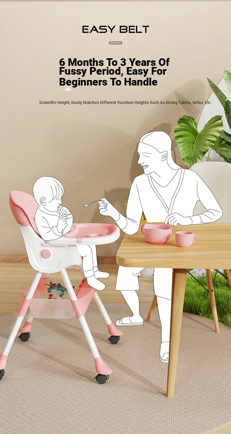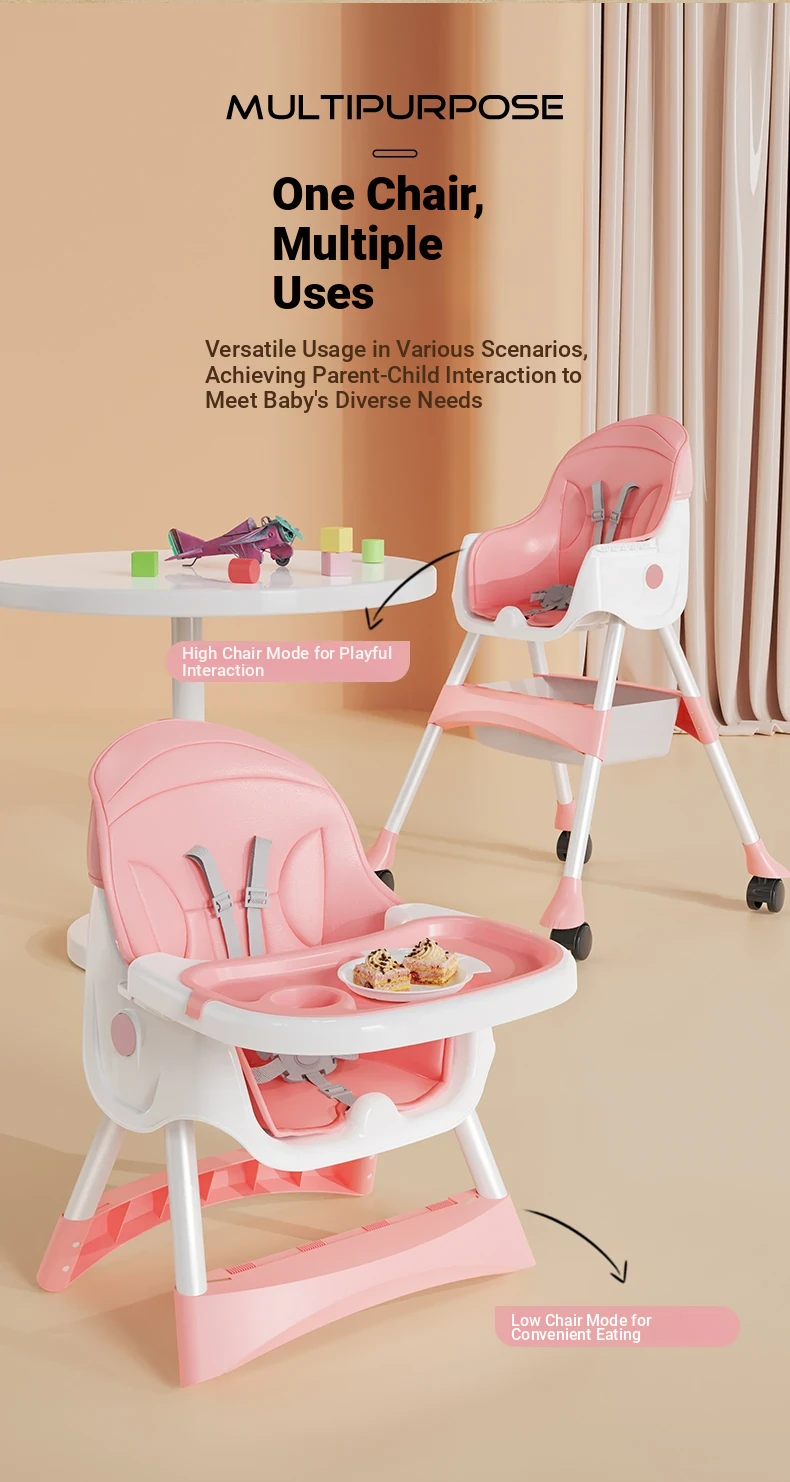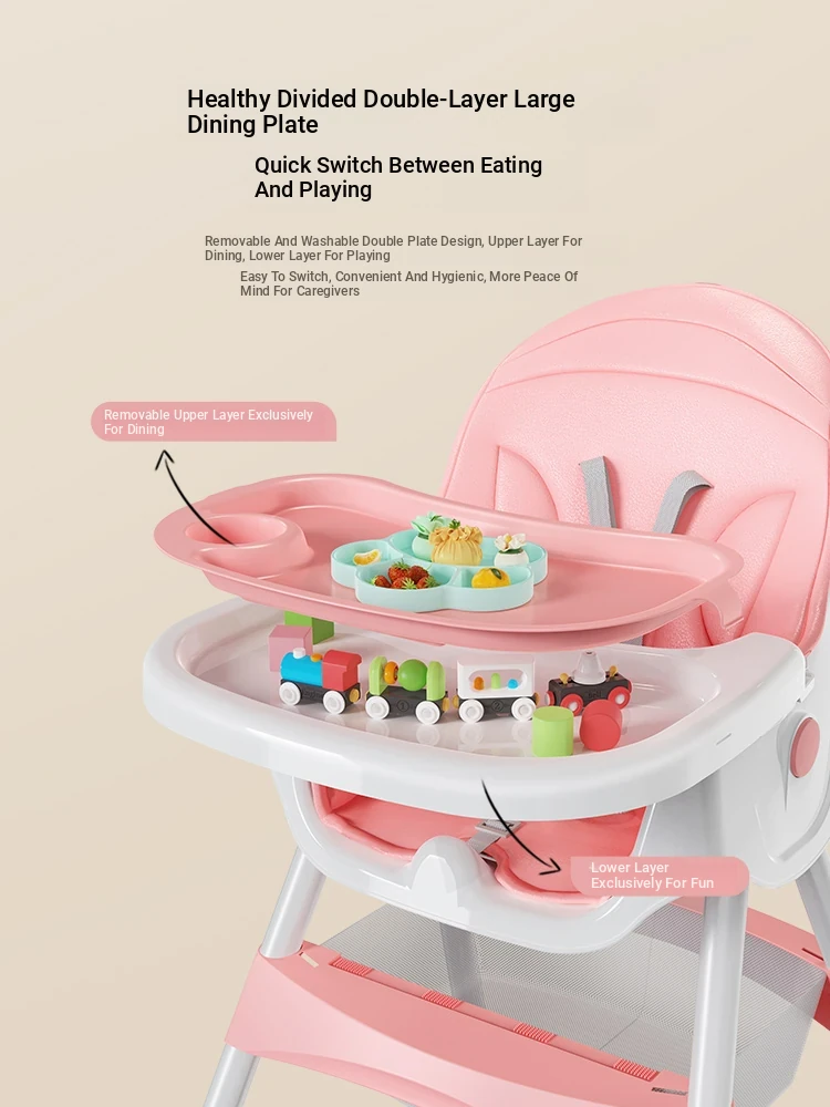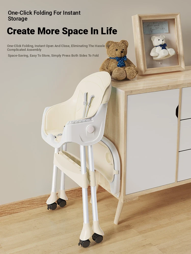 Multi-Functional Foldable Kids Dining Chair - Portable Baby High Chair for Home and Restaurant Use, Perfect for Mealtime!