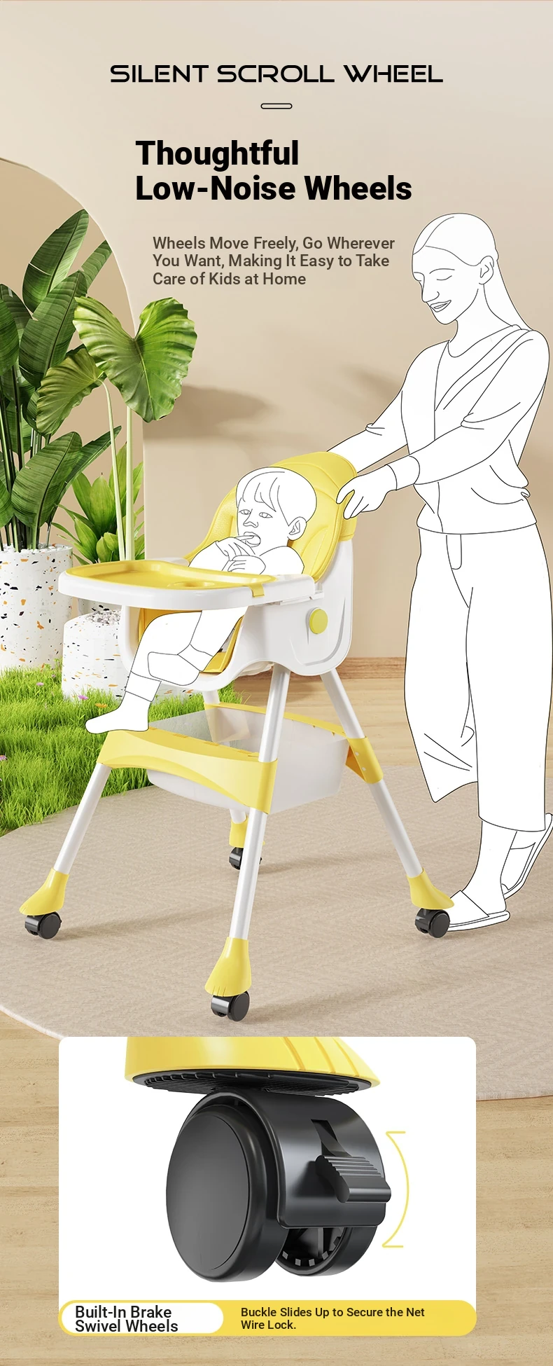 Lemon yellow [flagship with wheels] double dinner plate | Comfortable cushion | Storage basket